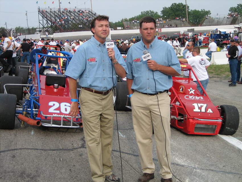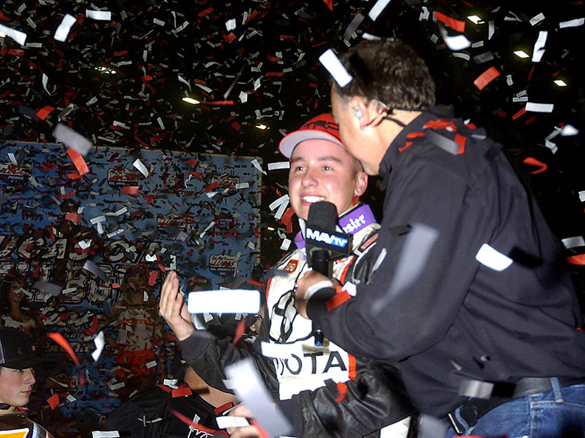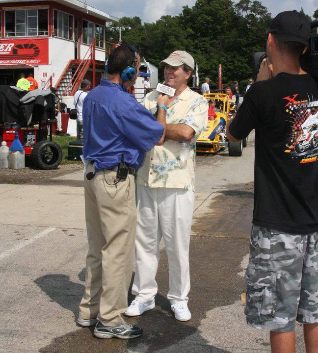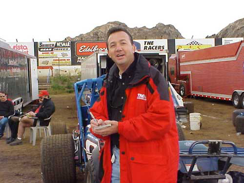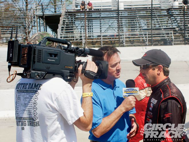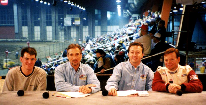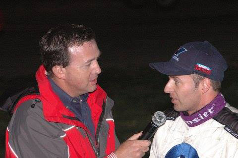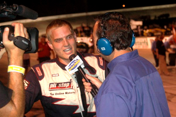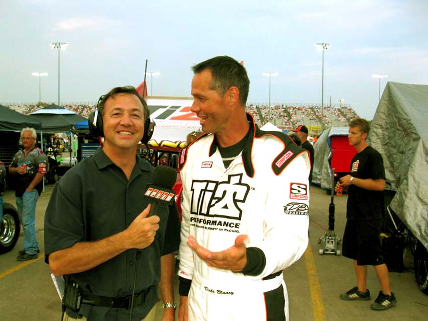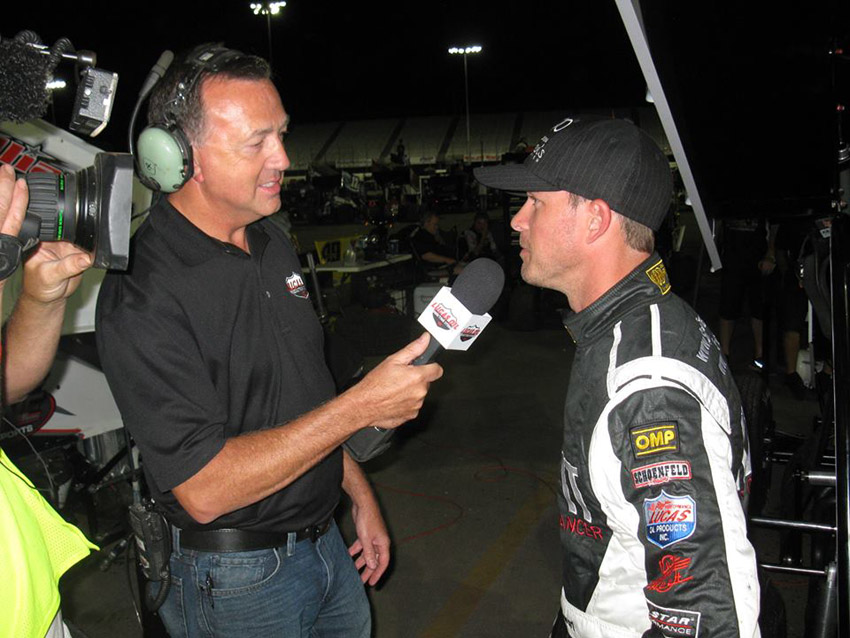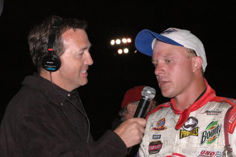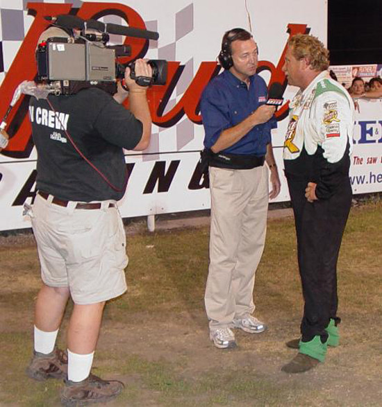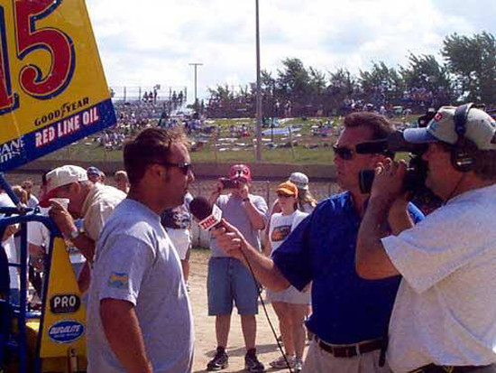 Dave interviewing Donny Schatz in 2000 at Eldora