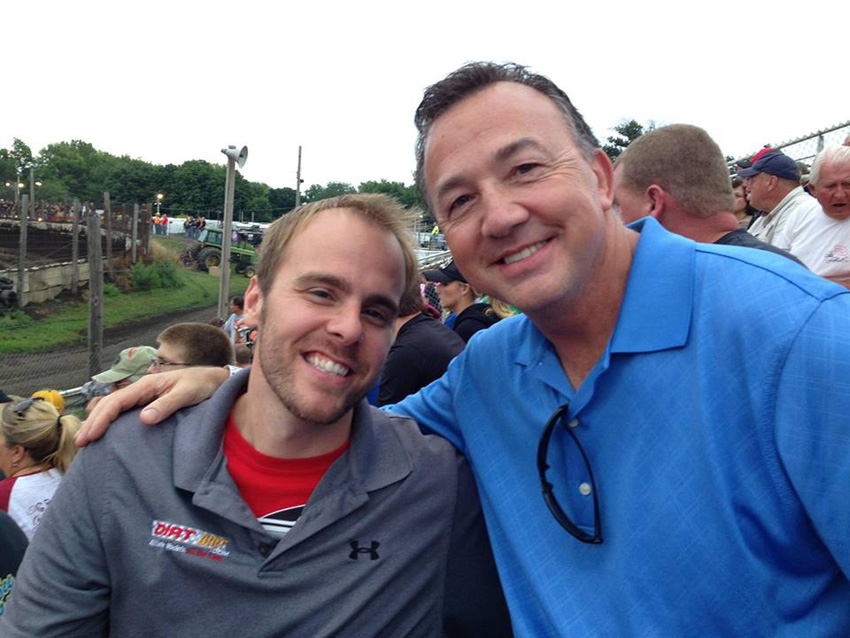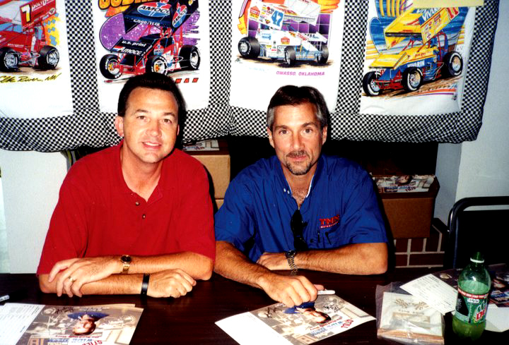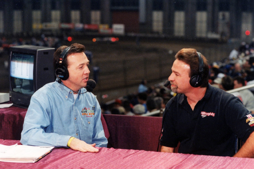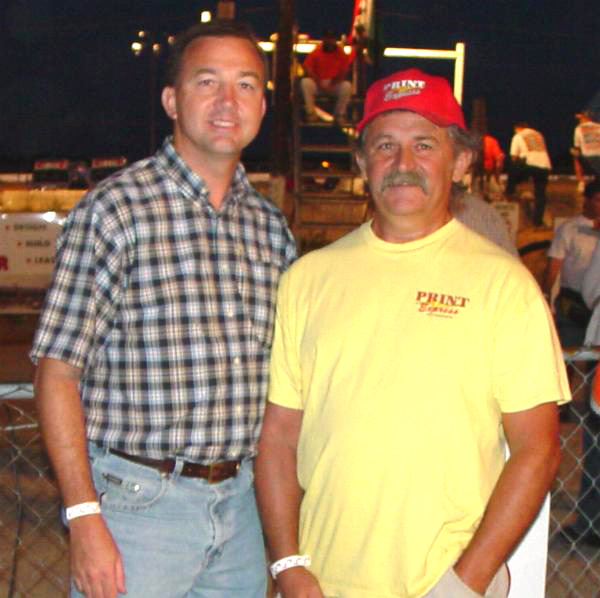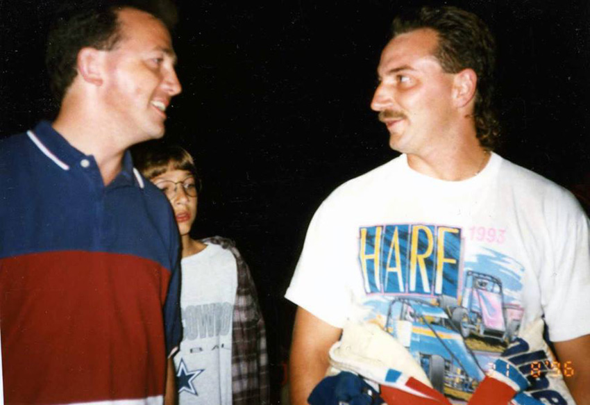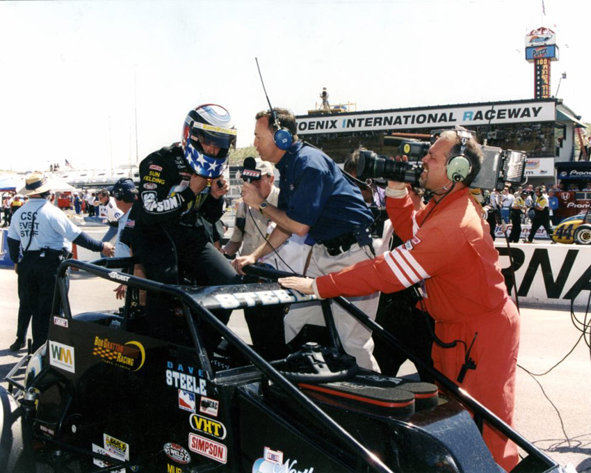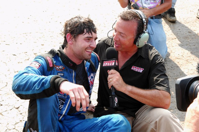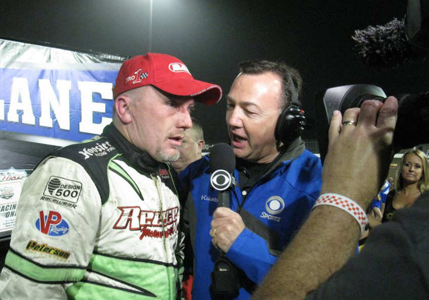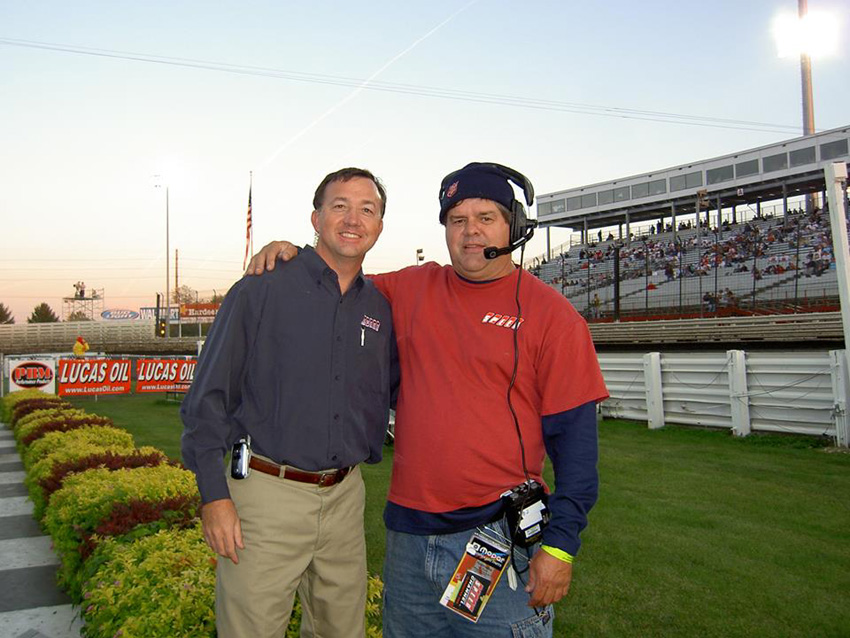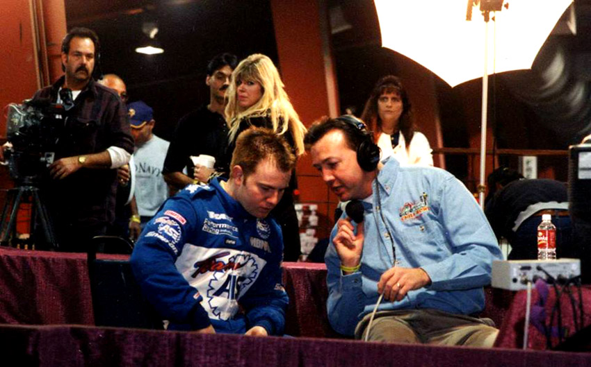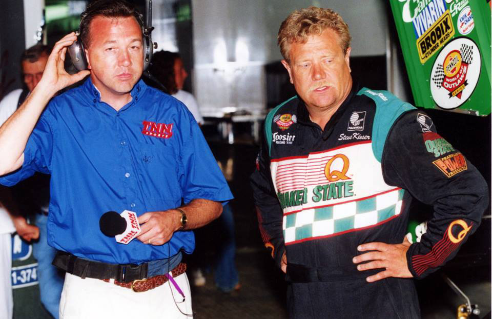 Dave interviewing Donny Schatz in 2000 at Eldora