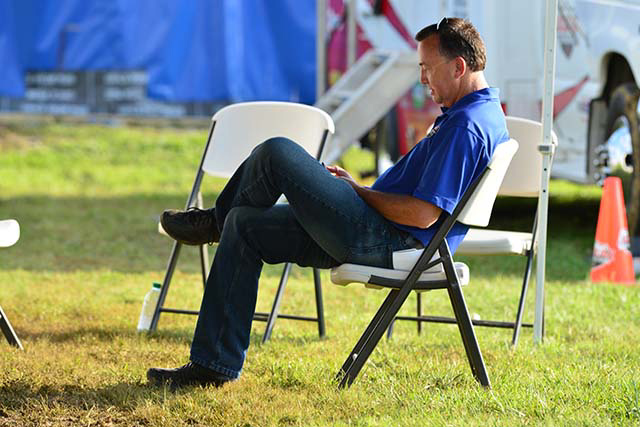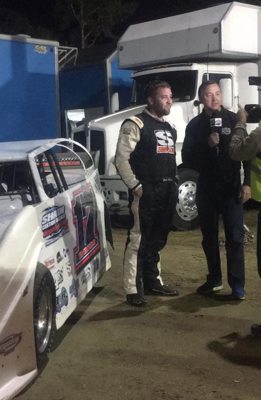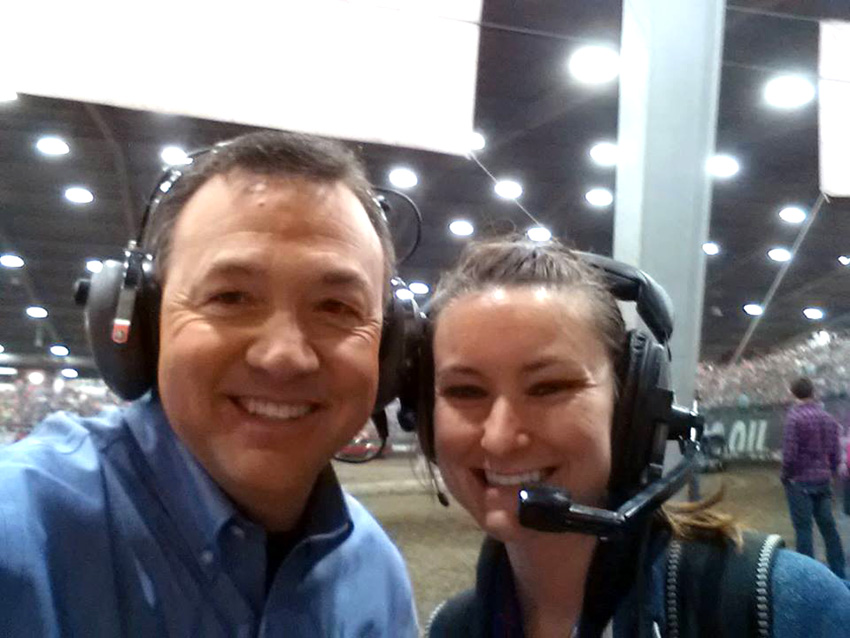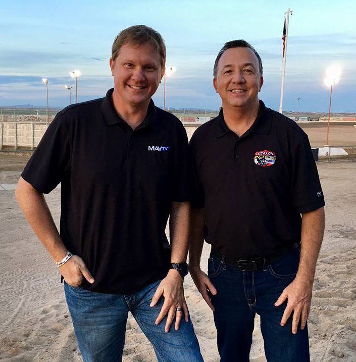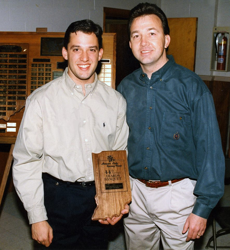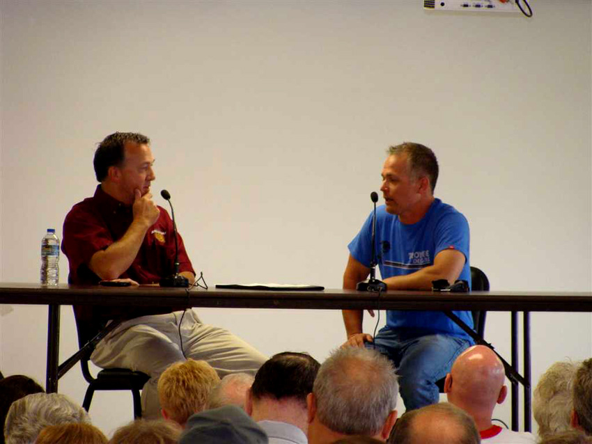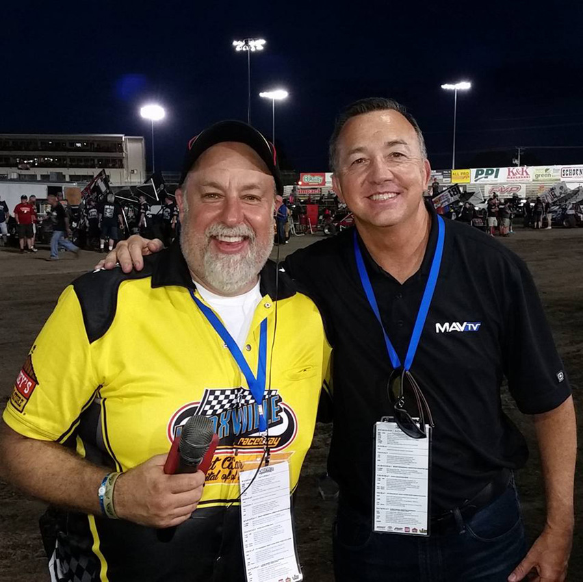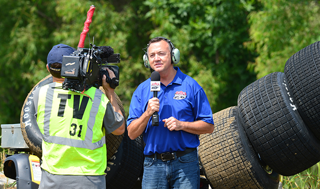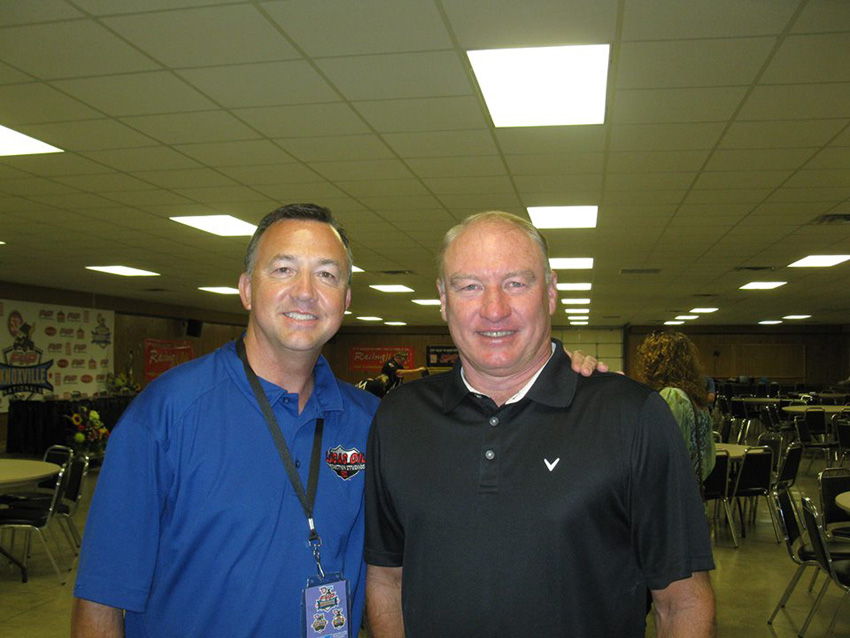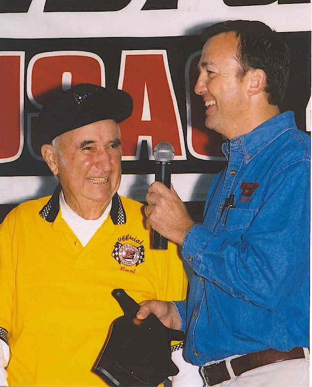 Dave interviewing Donny Schatz in 2000 at Eldora