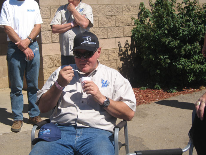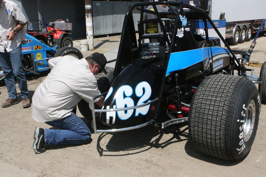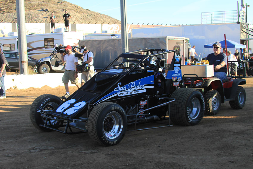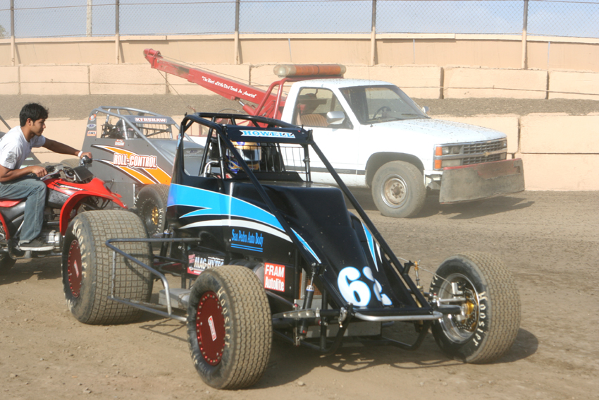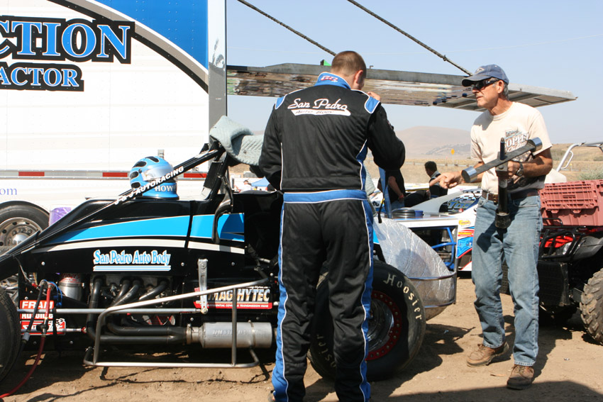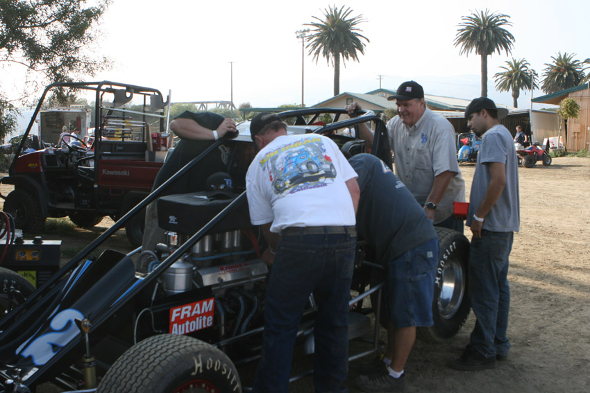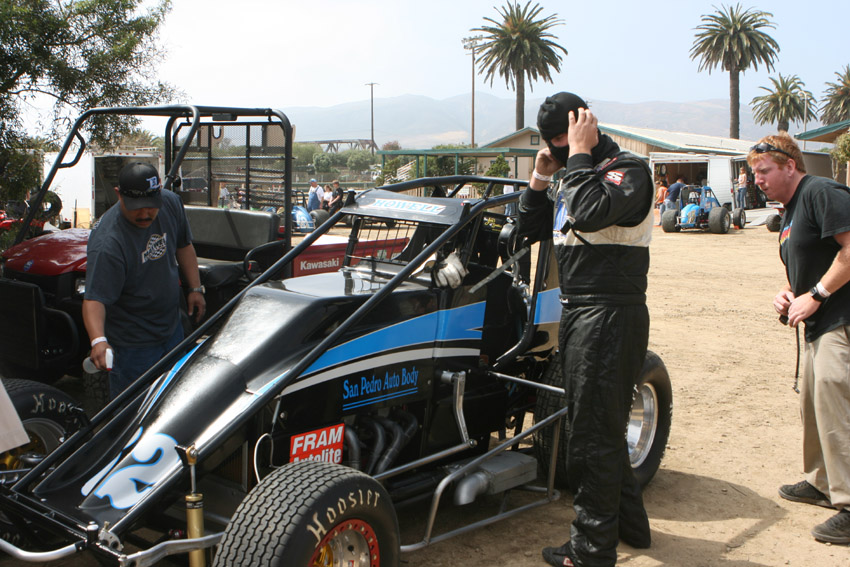 Dennis father, Dennis Sr, drove for a while at Ascot. He retired immediately when a close friend died racing. Dennis has a Fontana powered midget that he runs occasionly, but now it's mostly 360 stuff.