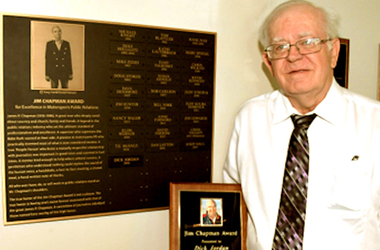 Jordan worked with the media and helped preserve USAC history. Jordan was recently honored with an Indiana Racing Memorial Association plaque to be erected at the USAC offices in Speedway. Tony Stewart, Pancho Carter, J.J.Yeley and Johnny Parsons — racers Jordan had helped to promote during his half a century of work with USAC — were in attendance, a testament to their appreciation and respect of his work with the sport.