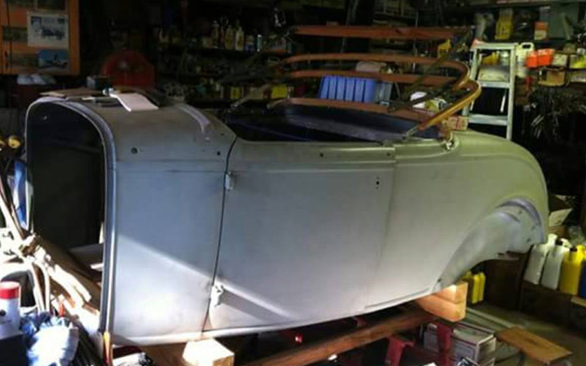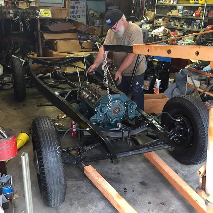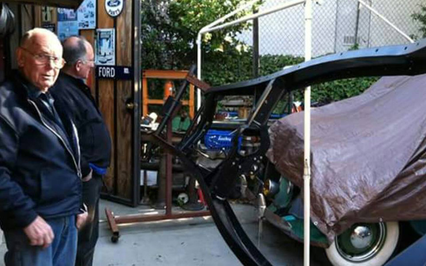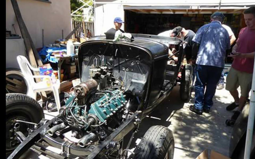 Don's Tromper friends assembling his car for him before he passed. They got it running for him to see