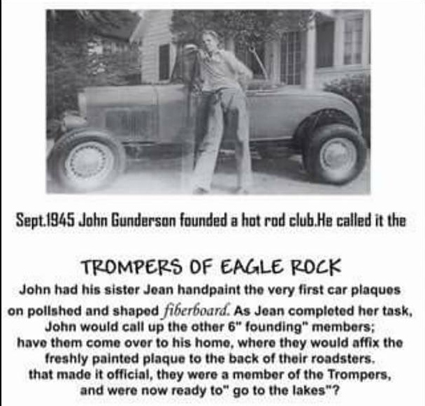 It was fun for a bunch of years, until life intervened and the club faded away.Then in 2003, a modern-day Eagle Rock car nut was flipping through an old hot-rod book and came across a reference to the Trompers. He asked around. Original members were found. They gave their blessing to the club's revival.