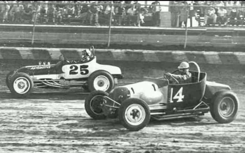 Thats Don in the # 14 car against Jack Gardner. This picture is in his hands in the frame above.