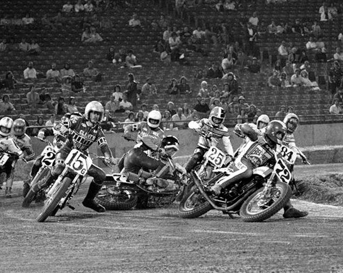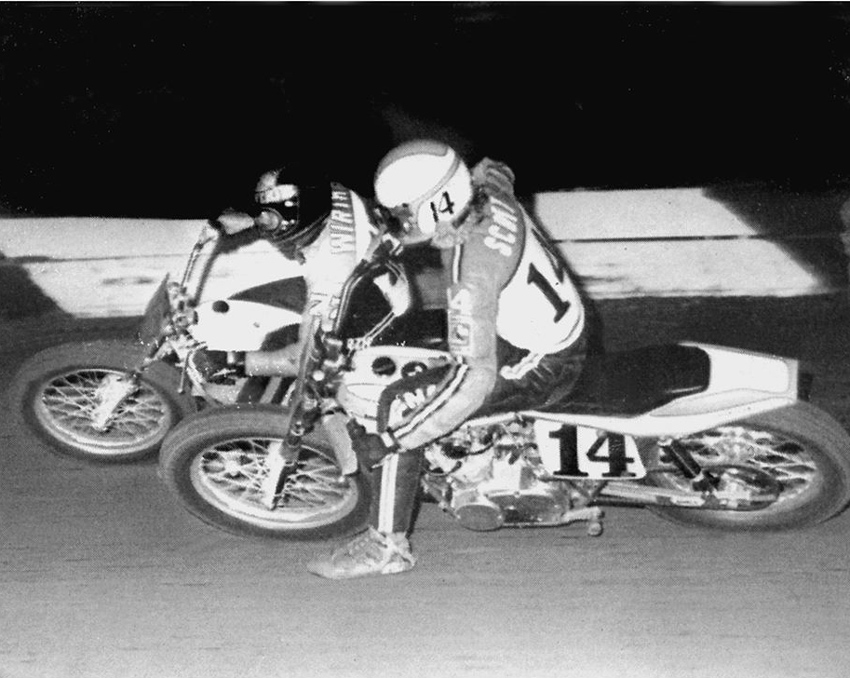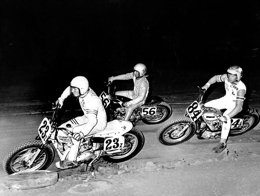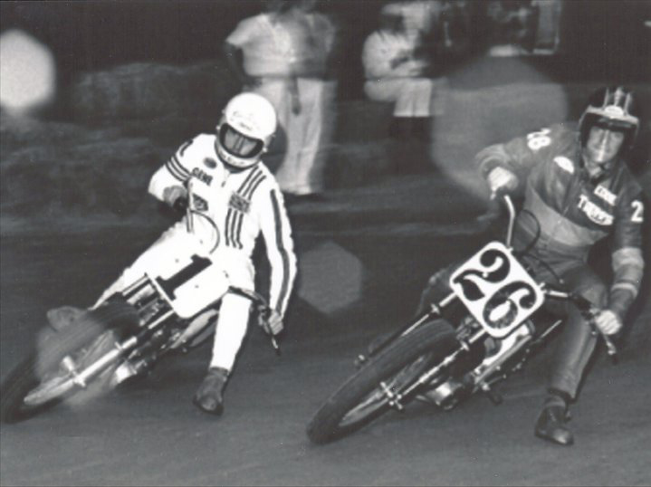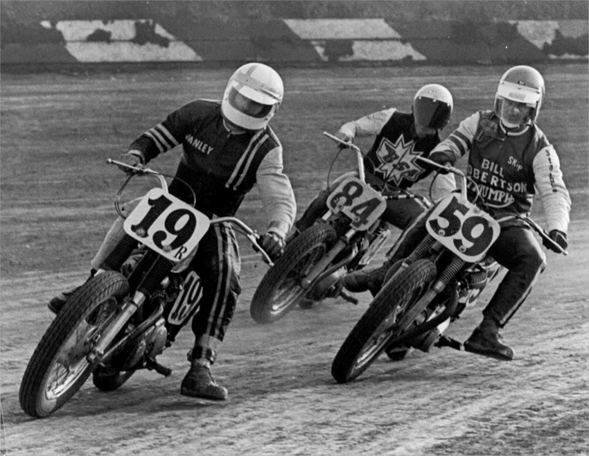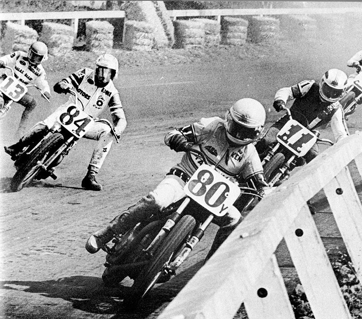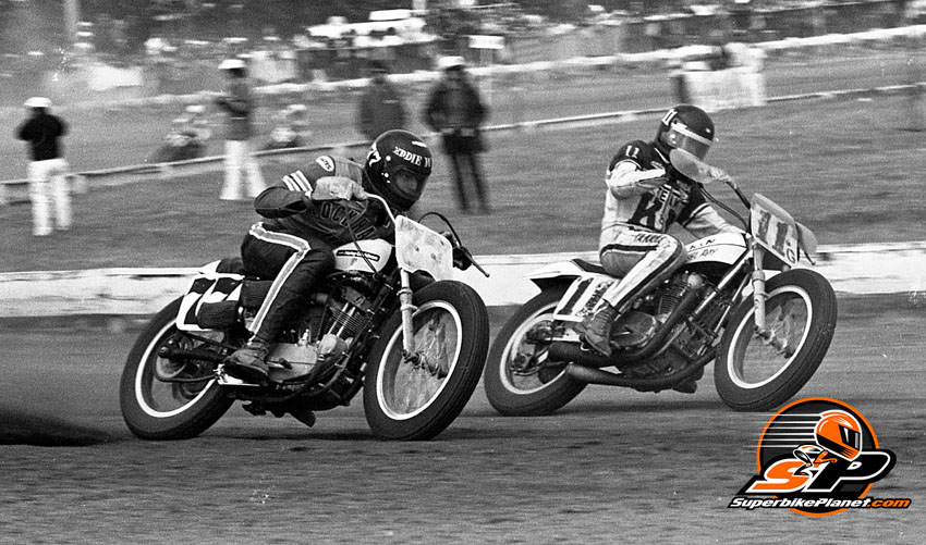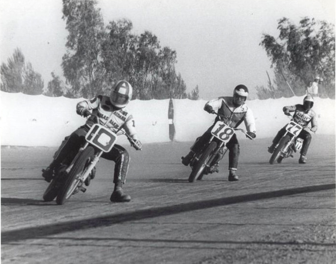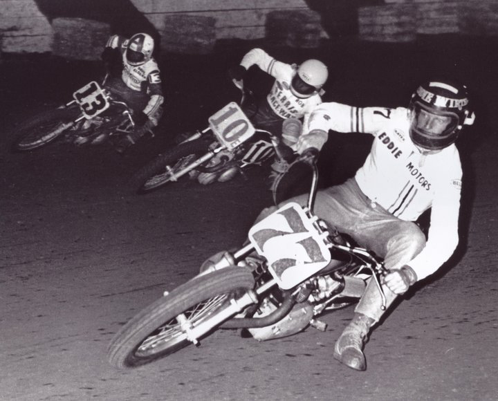 Eddie leading # 32 Dusty Coppage and # 20 Gene Romero at Sante Fe TT 1969