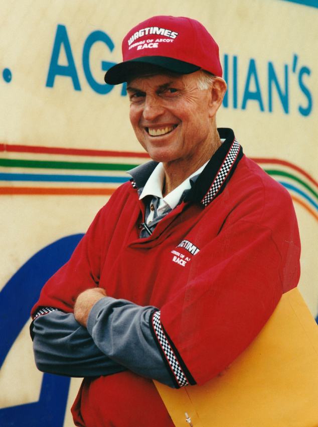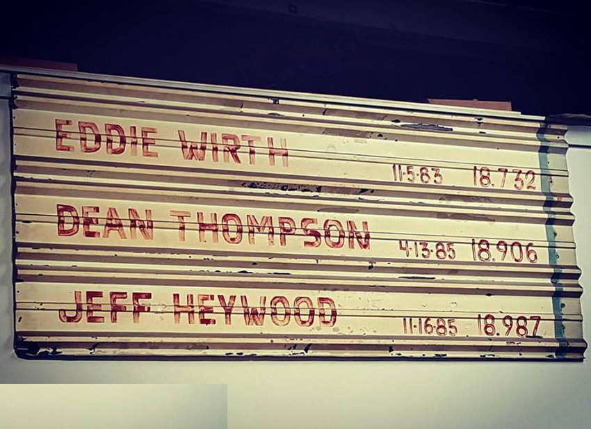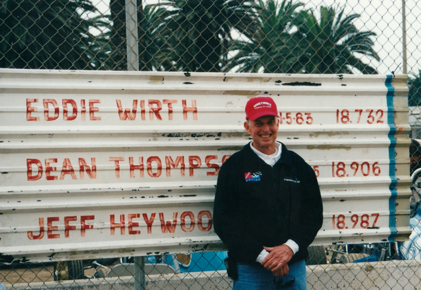 Eddie by the Ascot wall dipicting his quick time record for the time