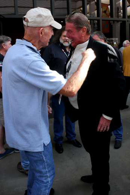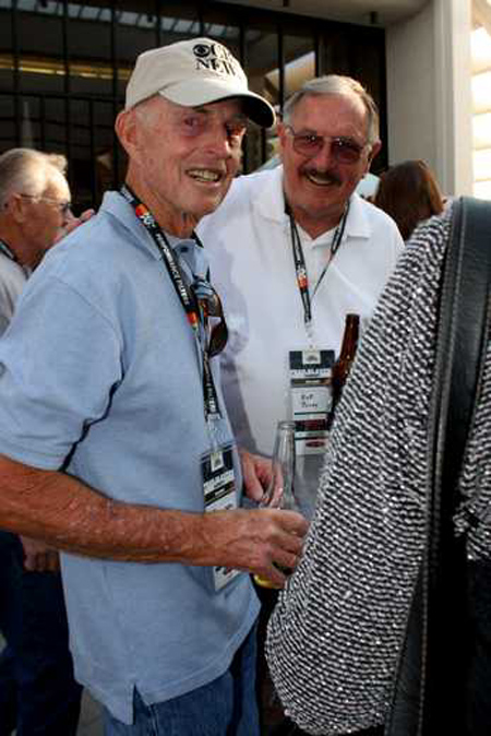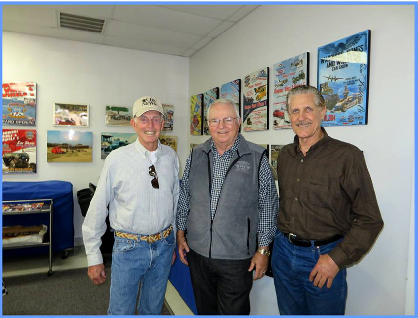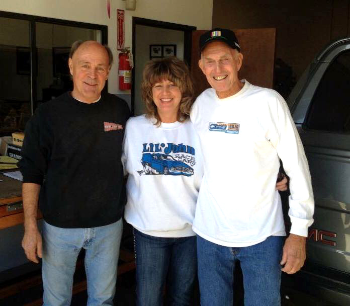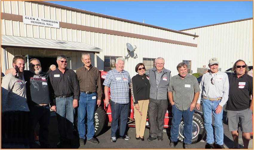 At Woodland Auto Display. Celebration of life for Bruce Bromme Jr. Left to right: Mike Spencer, Ron Chaffin, Richard Griffin, Jimmy Oskie, John Redican, Claudia Woodland, Dick Woodland, Rip Williams, Eddie Wirth and Mike Sweeney