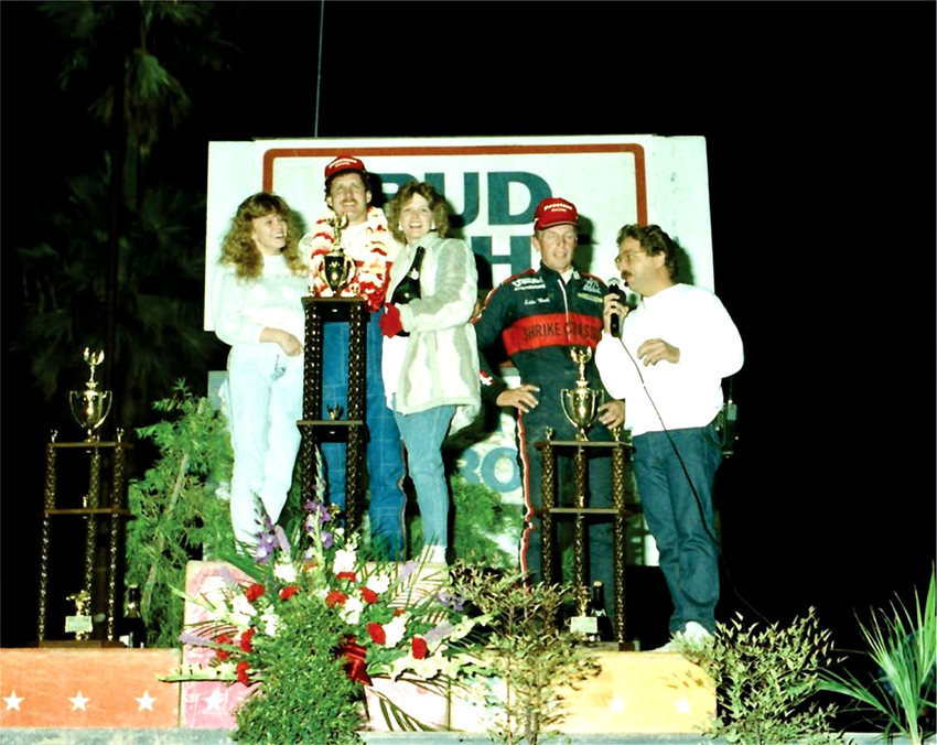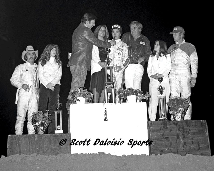 Eddie on the podium at Ascot with Bubby Jones and winner Sammy Swindell