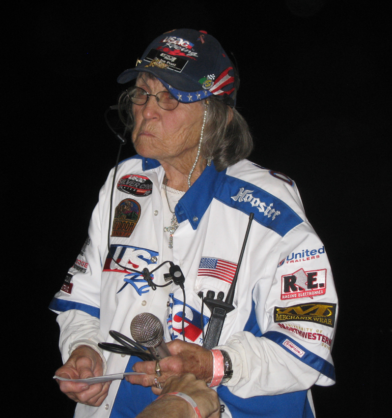Evelyn had a very long history with racing as she and her Husband Bill had a wrecker and they worked the races. Before long she was an official and was the lady with a bullhorn until she retired. They owned the # 12 that Steve Ostling drove forever until Bill died. She was revered in her dedication and untiring ability to run the pits until she moved to Texas in the fall of her life. She received many awards that were well earned over the years, but always had racing on her mind. She will be missed in the CRA world forever.