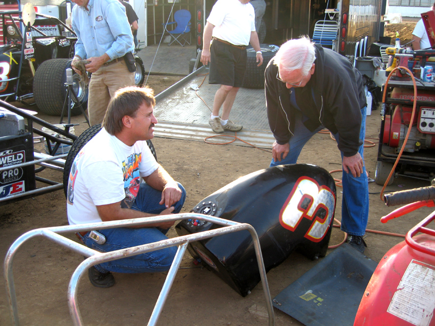 Gale with Billy and dick Woodland at the Mopar Million at Eldora
