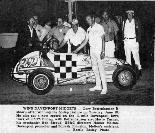 Bettenhausen began as a midget car driver. He finished third in the midget car national points in 1967. He won the first leg of the Astro Grand Prix in 1969, which was held in the Astrodome. He won the 1967 and 1970 Turkey Night Grand Prix, the 1972 Astro Grand Prix, and the 1976 Hut Hundred, on his way to a total of 27 career wins in USAC midget car competition.