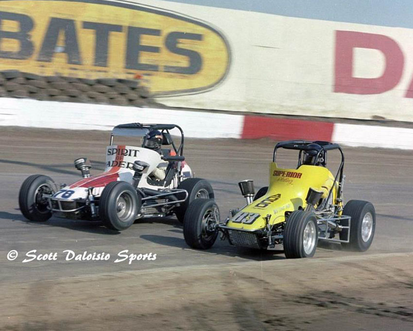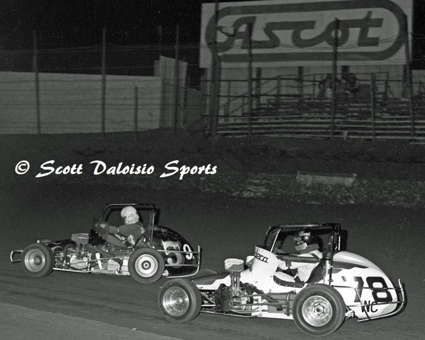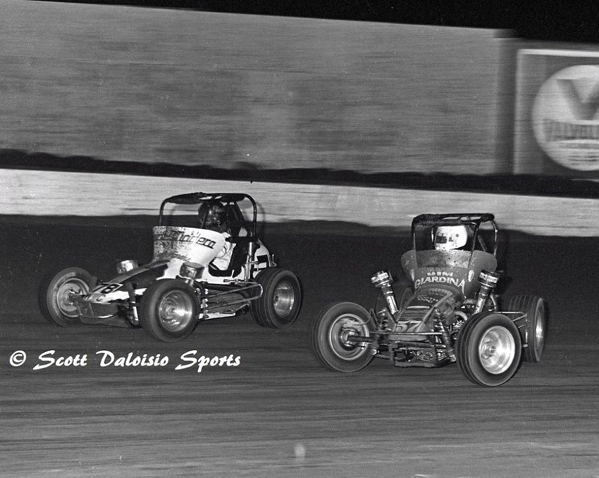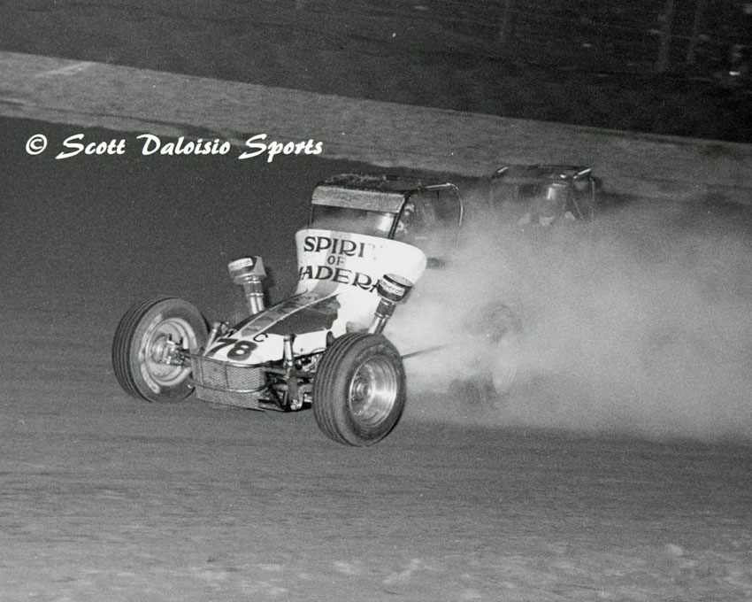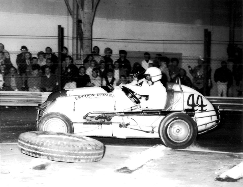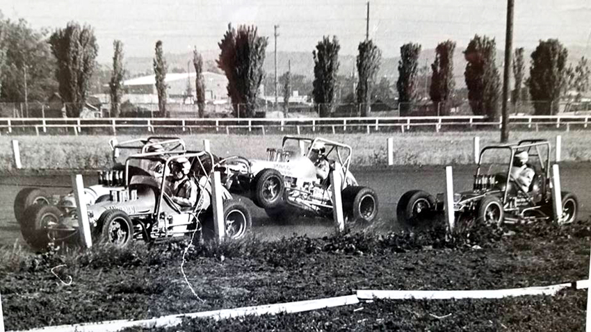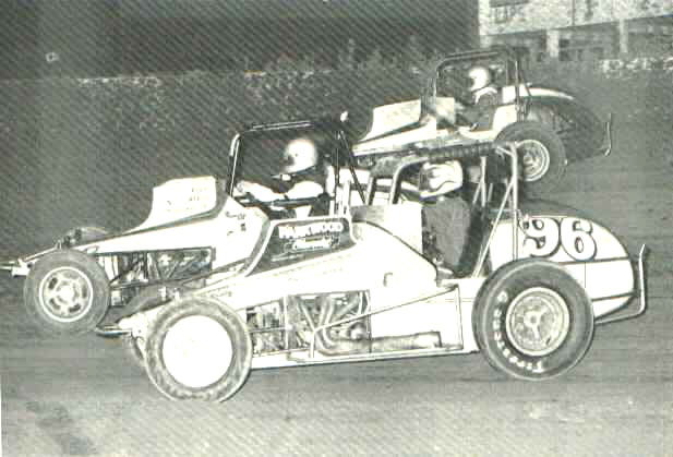 Hank with his wheels up behind Steve Chassey who finished 5th. Look at those 4 x 4 posts, dangerous much?