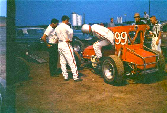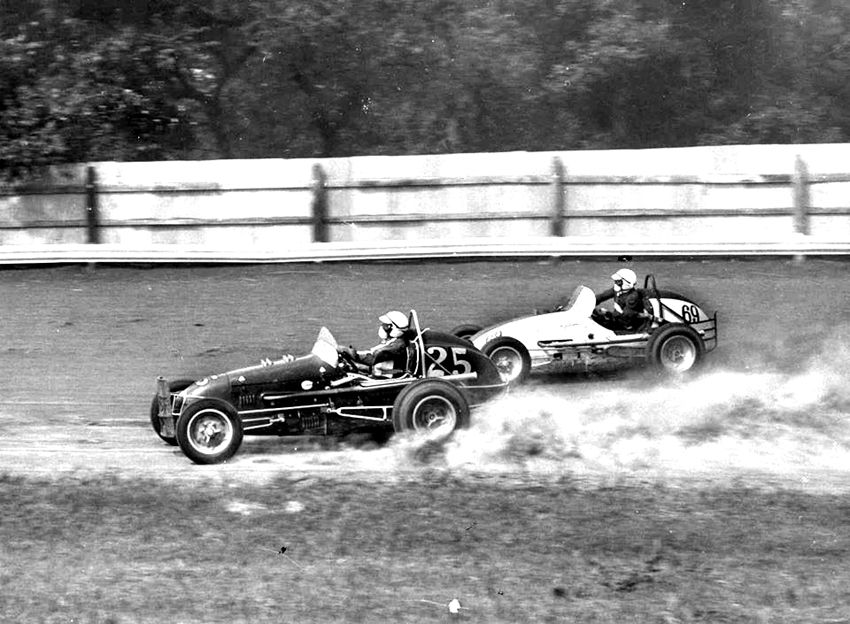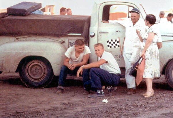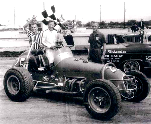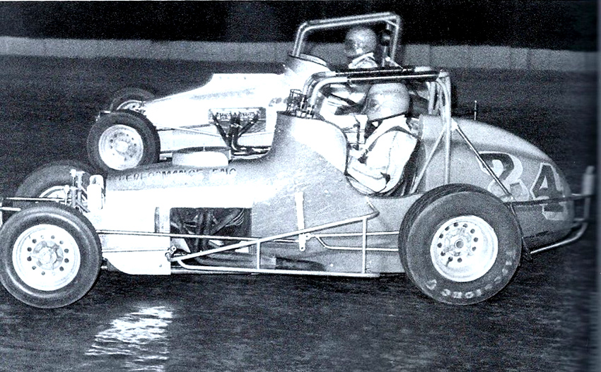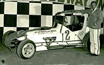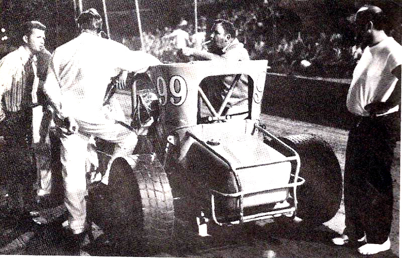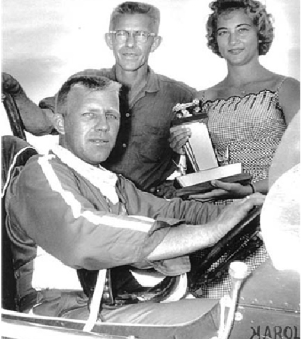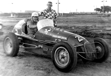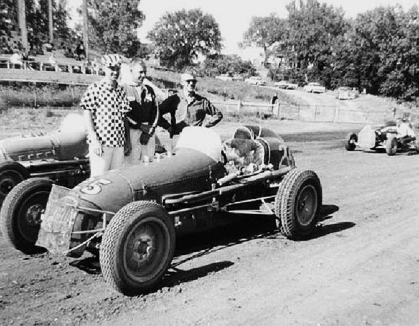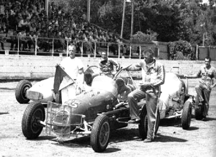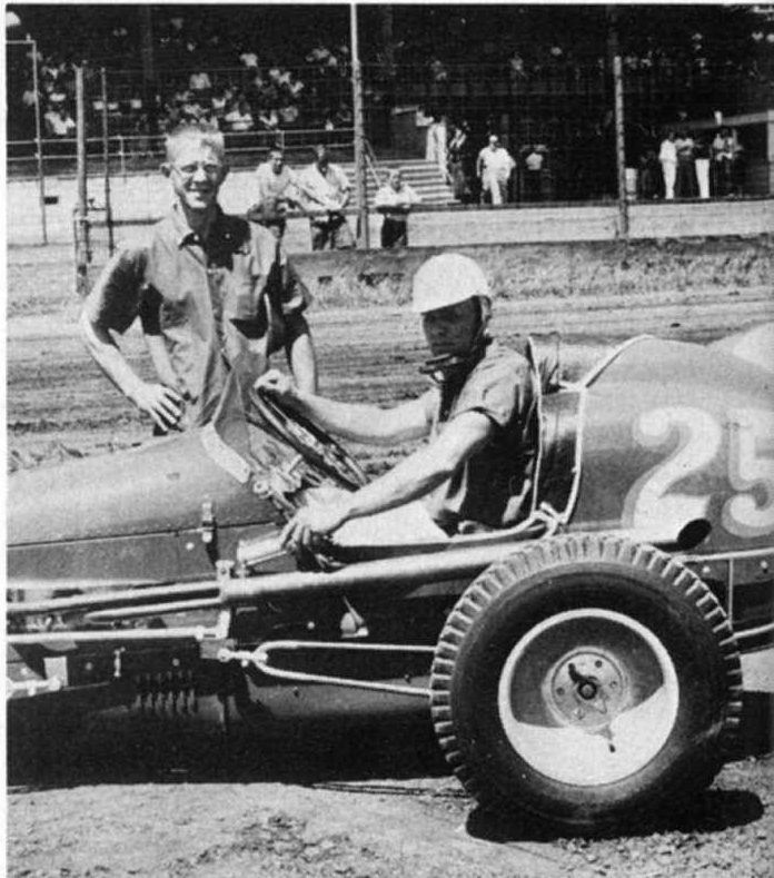 Harold in # 25 with Car builder Chet Wilson in 1957