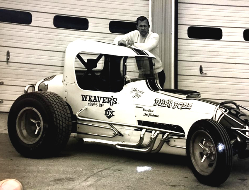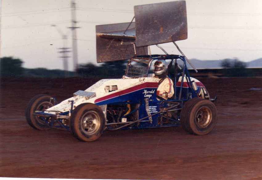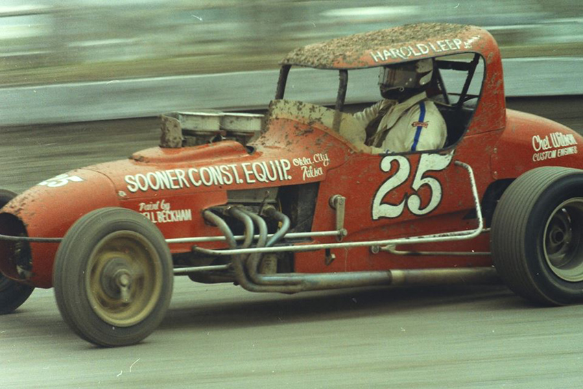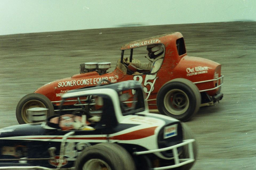 When Leep returned from the military, (he was still under age at the time), he found his family had moved to Wichita. In 1950 Harold helped a friend finish his jalopy stocker, in exchange for the opportunity to drive it. Leep crashed the car the first time he drove it and was promptly fired. Fortunately for race fans everywhere, Harold was not deterred and raced for 35 years before his retirement.