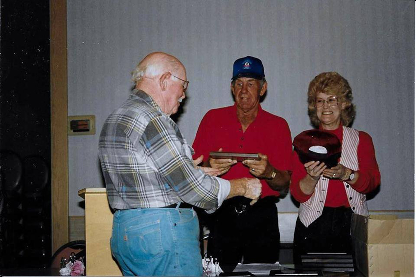 Harold accepts the trophy from Al Sweeney
