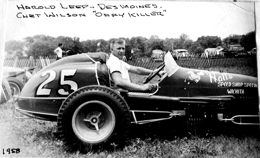 Like many drivers of that era from Wichita, Harold developed his racing skills in the jalopies at places like Cee Jay Stadium in Wichita. There Leep raced against the best that included, Dale REED. Walt McWhorter, Frankie Lies and Billy Mears (Rick Mears dad) among others. In 1955 Harold raced in his first sprint car race. In 1957 Leep heard that Chet Wilson had built a brand new sprint car for his 283 cubic-inch Chevy, fuel injected custom engine. An engine that at the time was revolutionary in its design, in an era when Offy’s ruled the sprint car land scape. Wilson hired Leep (after much pestering from Harold) and one of the best sprint car teams of the era was born. Over the next several years the red Chevy sprint car dubbed the “Offy Killer” would win numerous races with Leep behind the wheel.