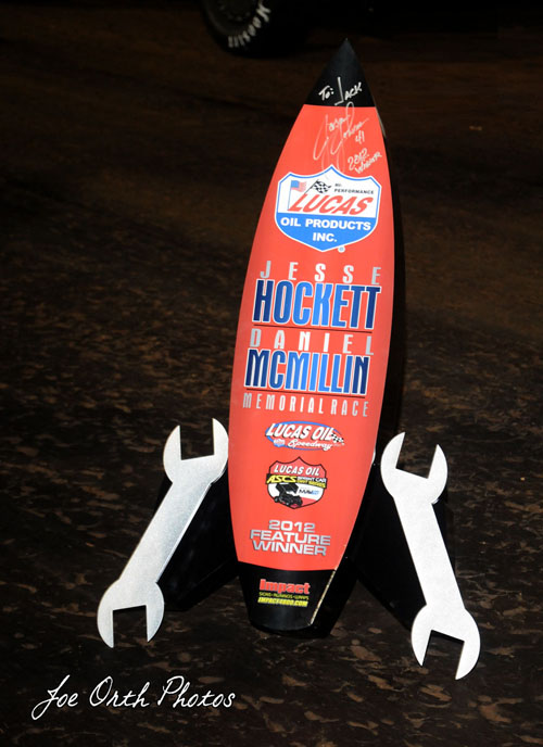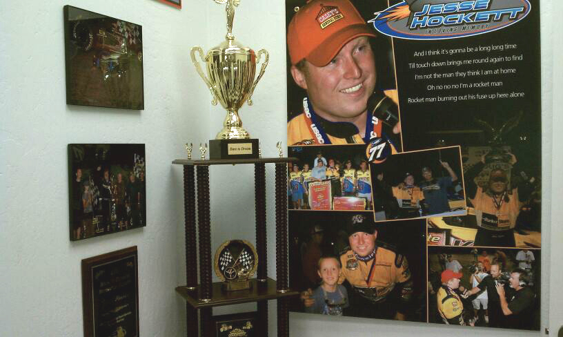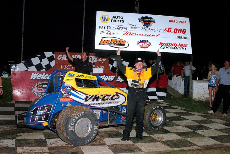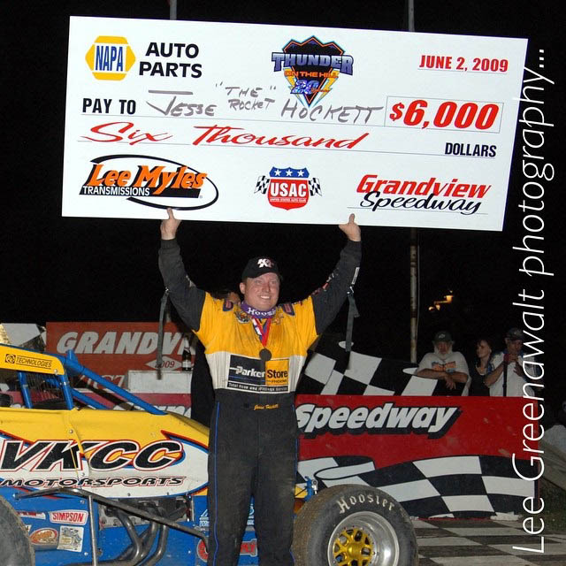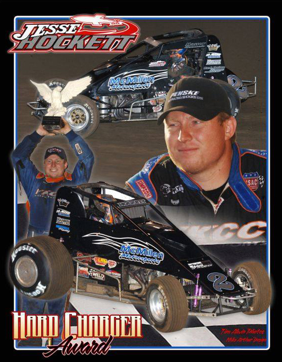 Jesse "The Rocket" Hockett (September 7, 1983 – May 26, 2010) was an American sprint car racer. He made his debut in 1998 and went on to win numerous events in the course of his career. In 2006, he became the O'Reilly Sprint Bandits TNT Midwest Swing Champion. He also competed in the World of Outlaws sprint car tour, having made his debut in the series in 2003.