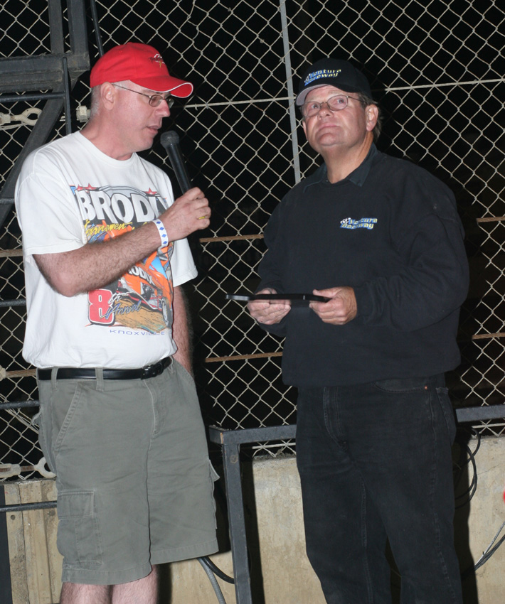 “They didn’t do play by play. Even though I was not the right person for the job, I decided I could do that, and I took it over. Same with working on the track – the guy I had running the motor grader didn’t know how to build a track. So, I had to learn that. You do what you have to do. I have to build the website, I create the souvenir program every week, and I do the trophies.”