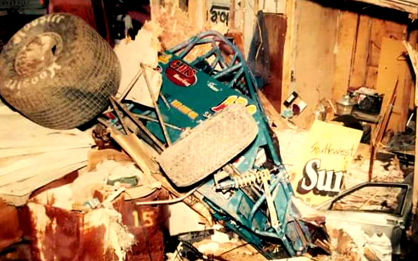 J J jumps over the turn three wall at Manzy into the junkyard!