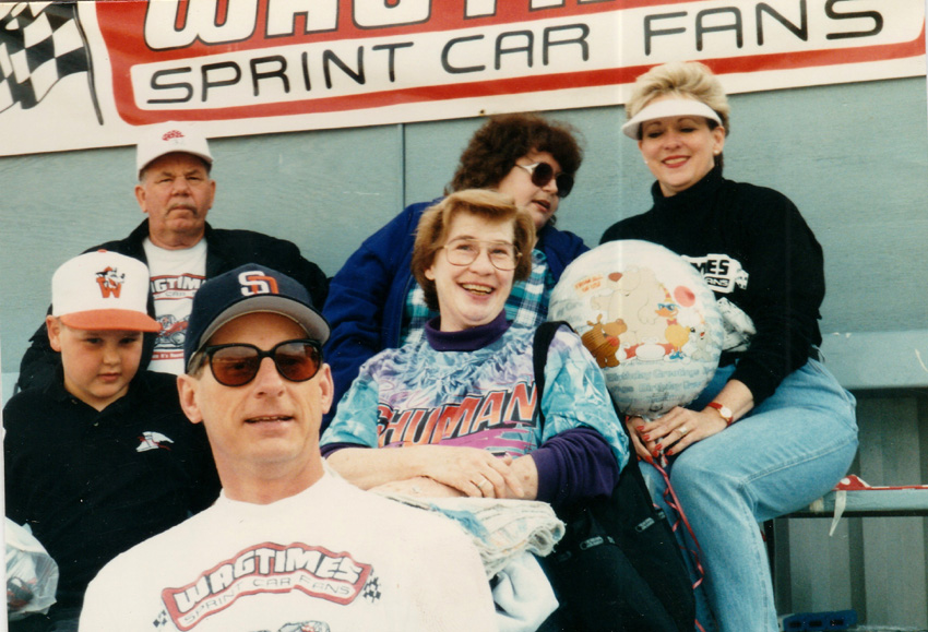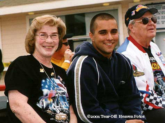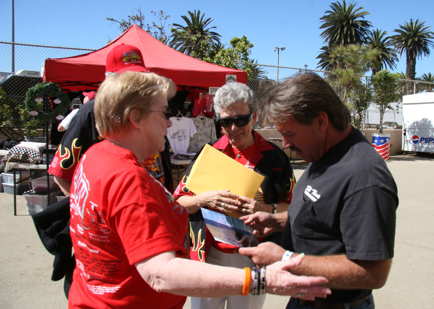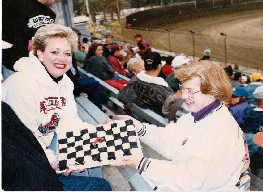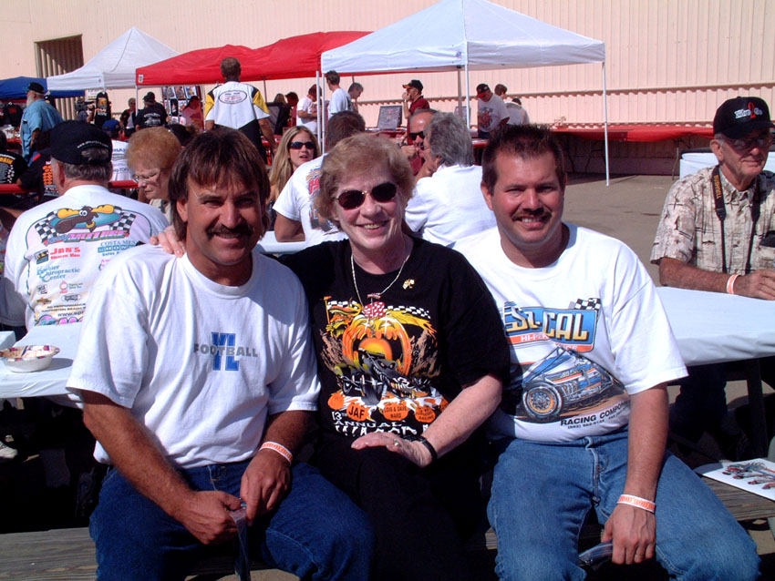 Joy with Joe and Ellen Ellis on a cool night in Ventura Joy is a special person as she has involved in racing and her many friends for many years.