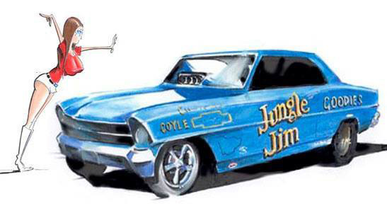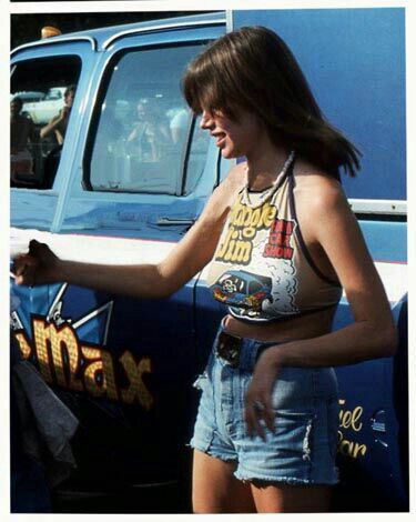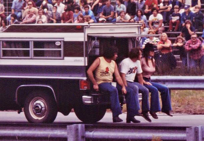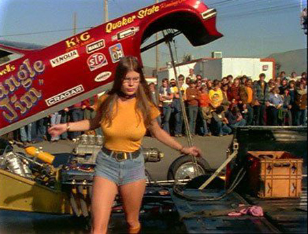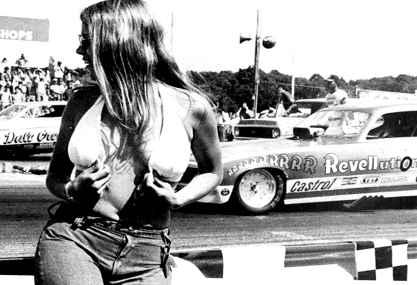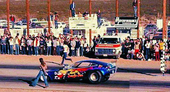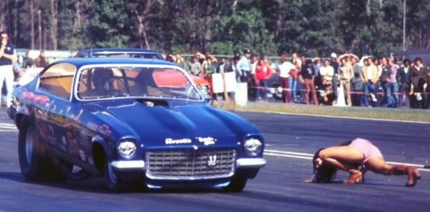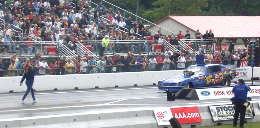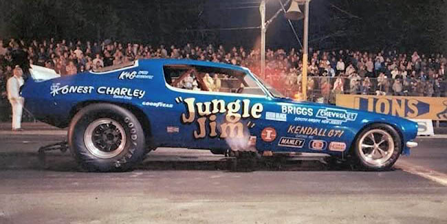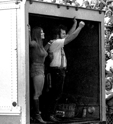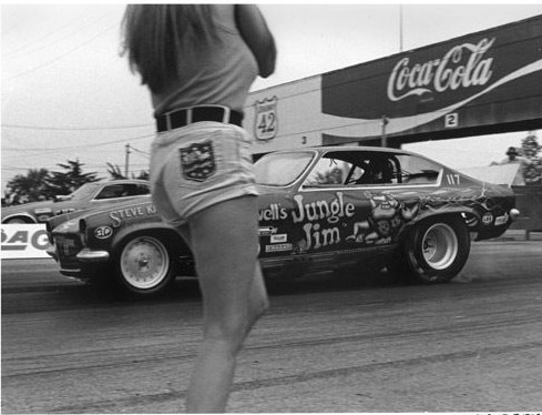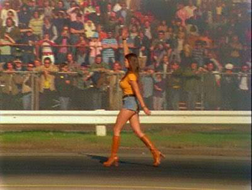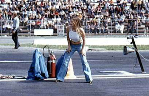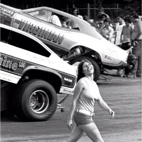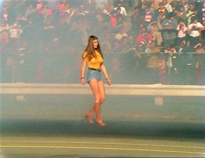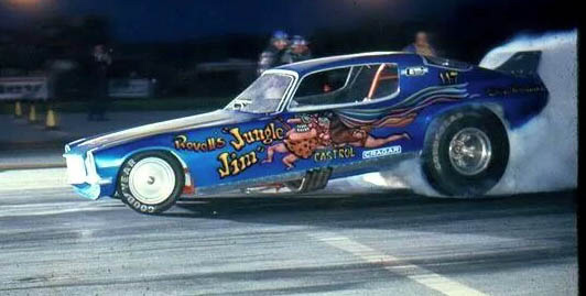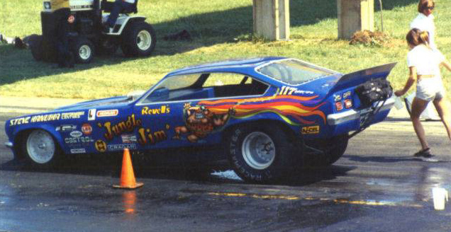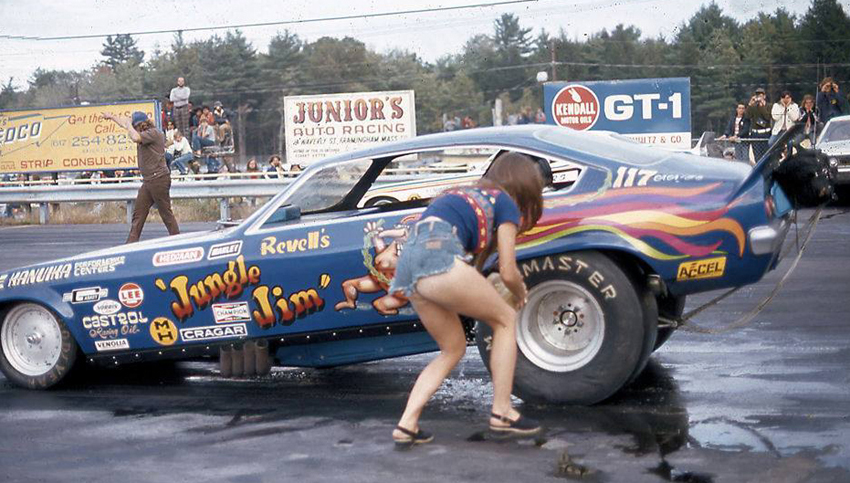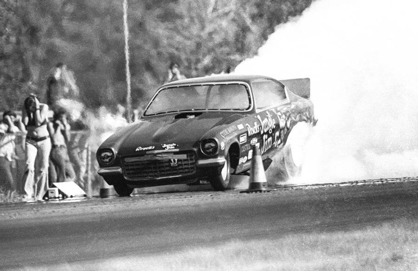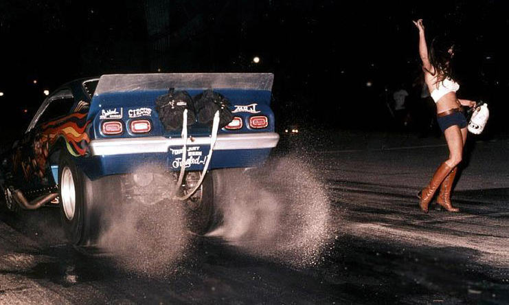 Jungle Jim doing burnout as Pam cheers