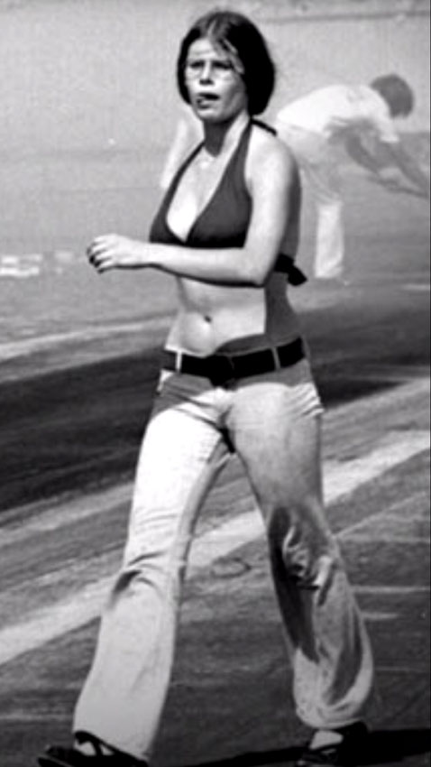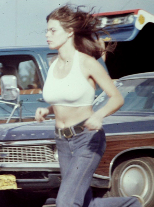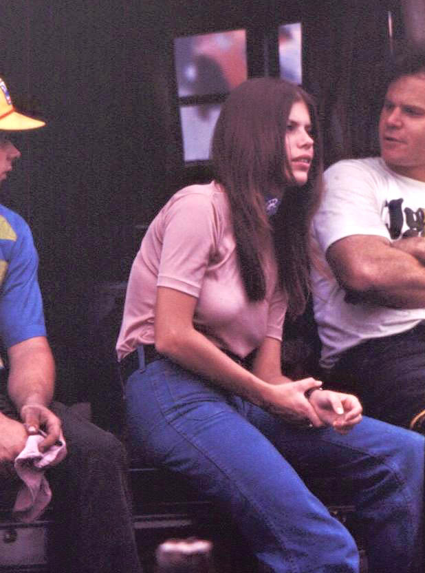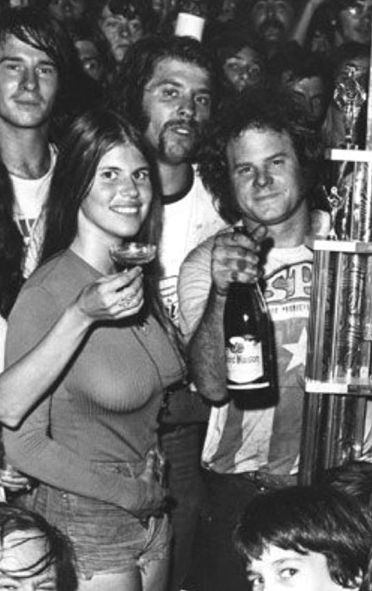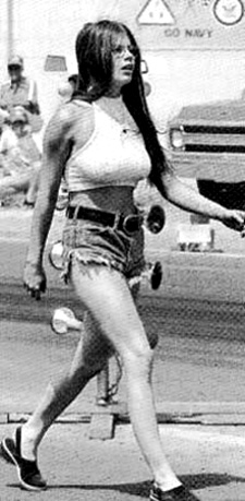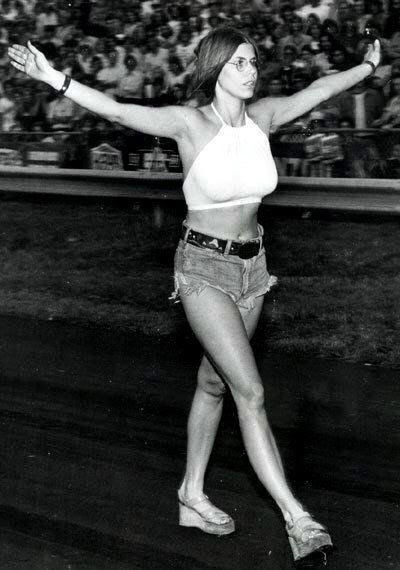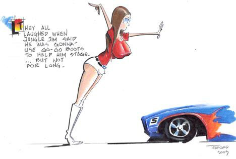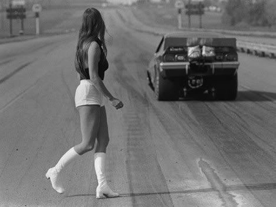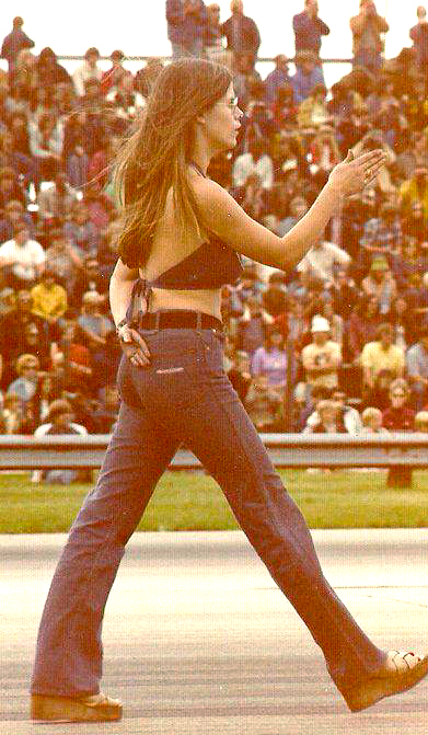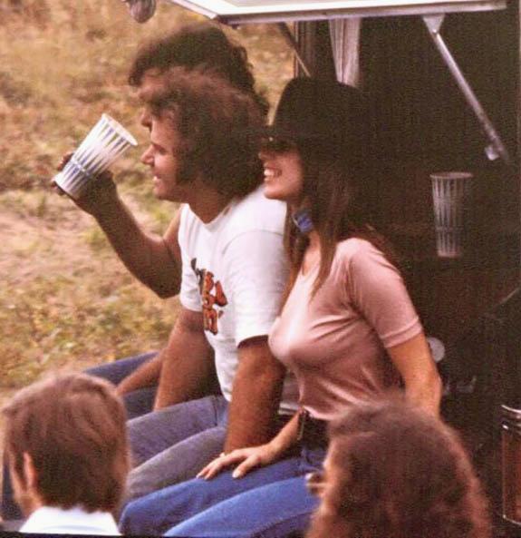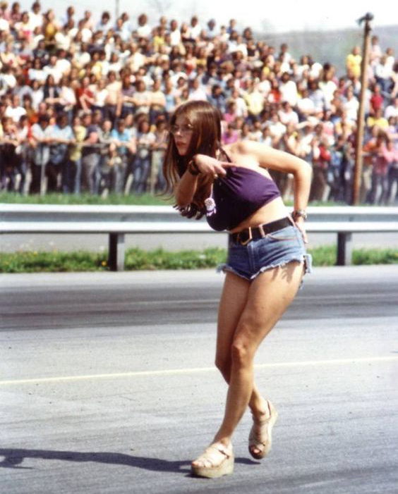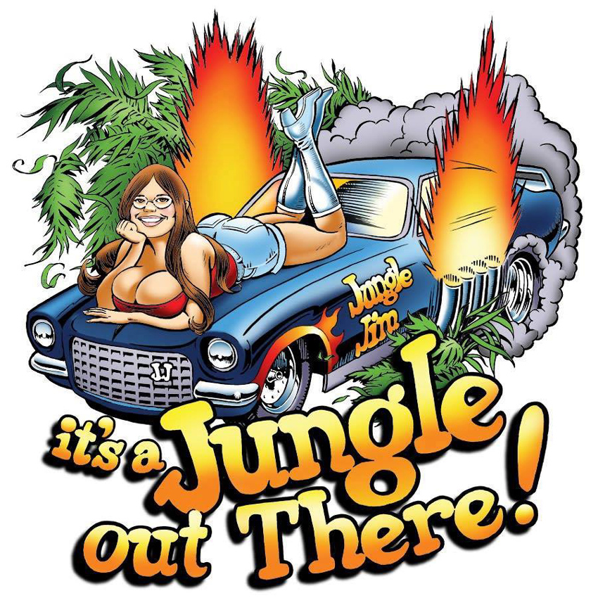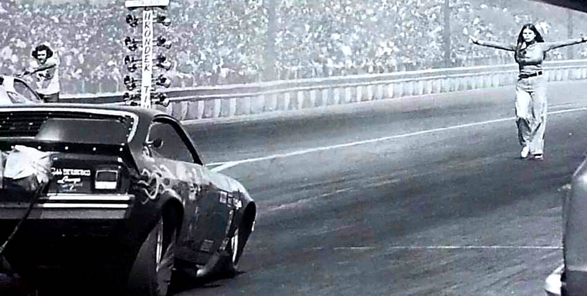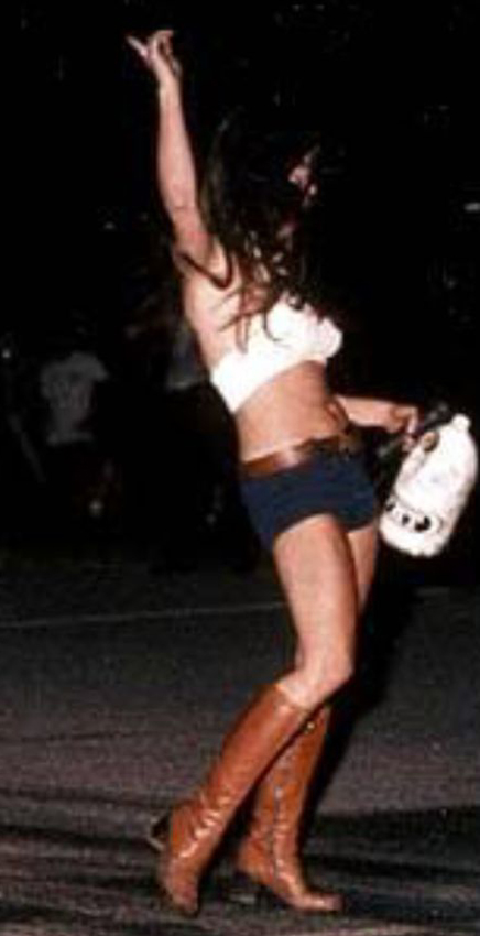 Jungle Jim doing burnout as Pam cheers