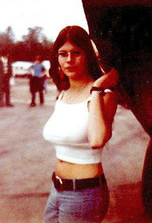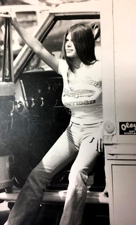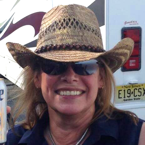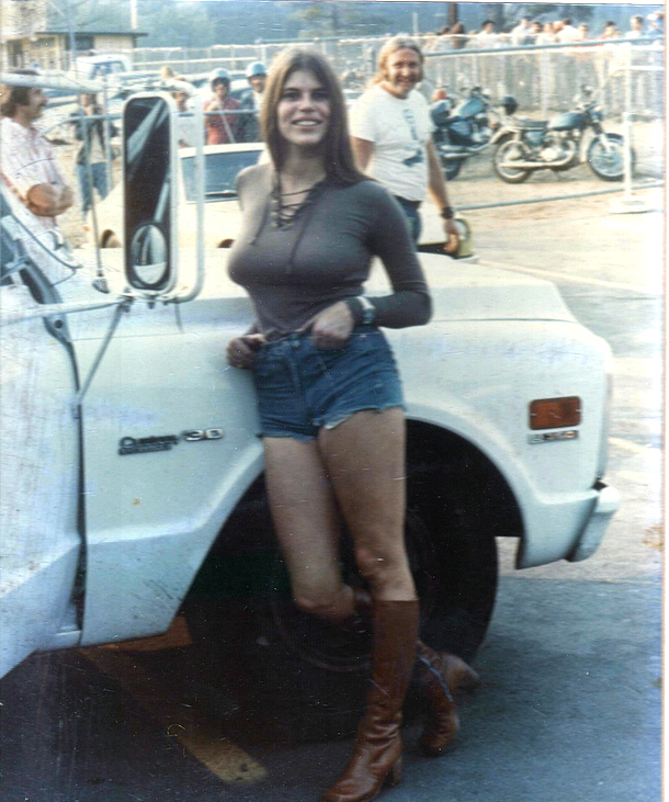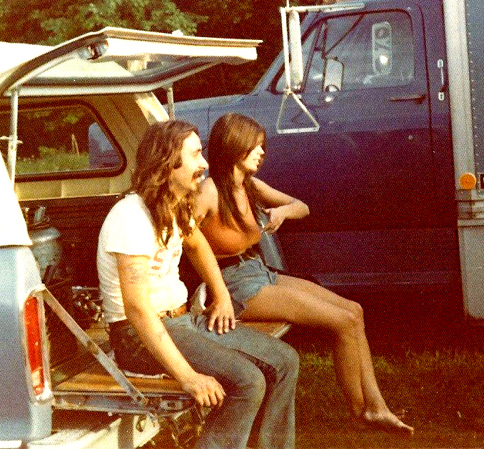 Pam relaxing on a tailgate