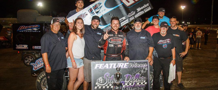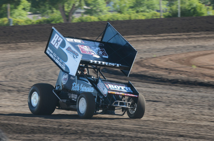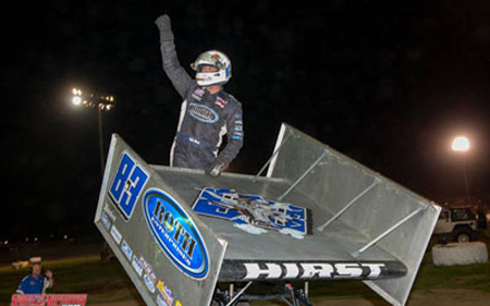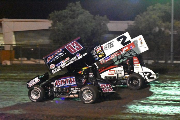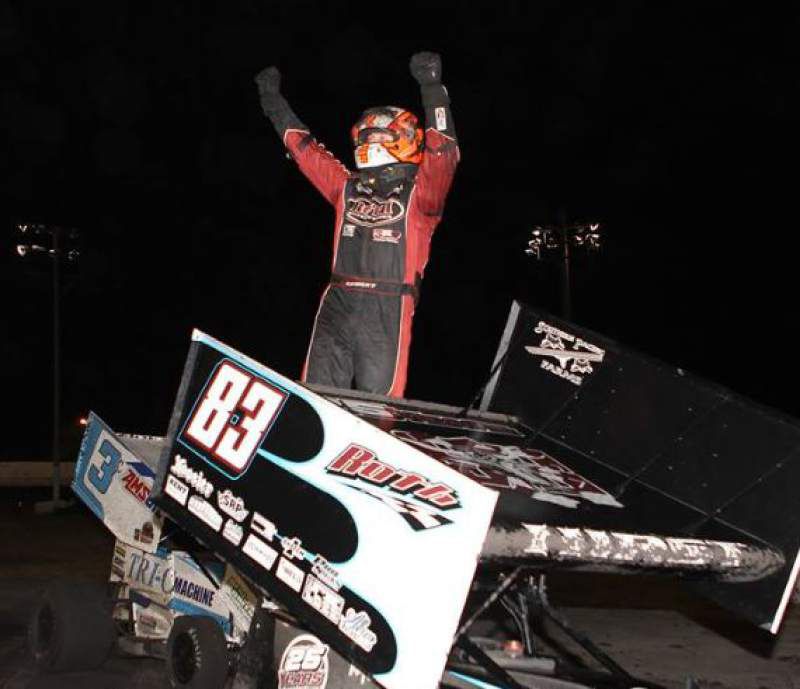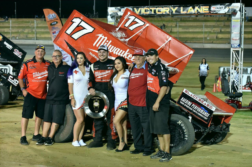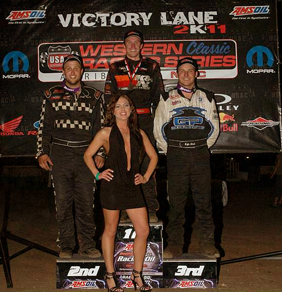 Kyle on the podium with winner Kody Swanson at the USAC Western race