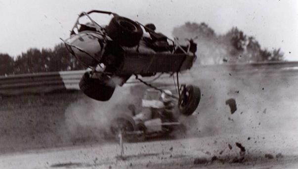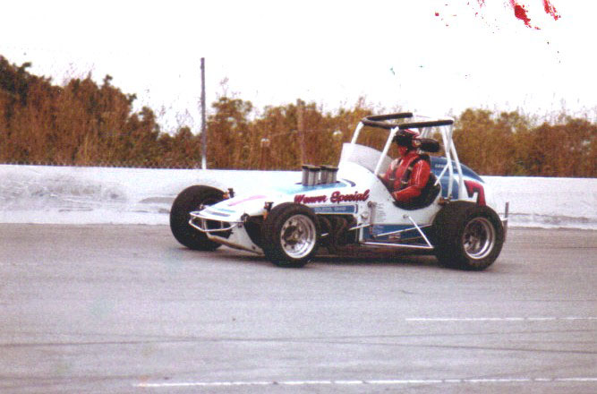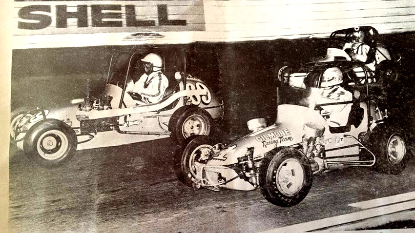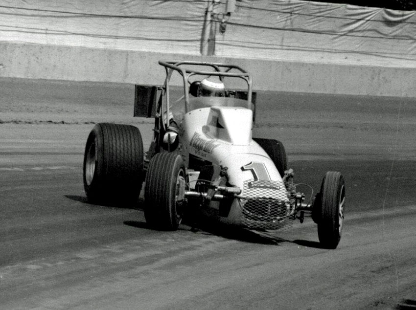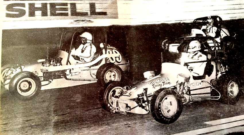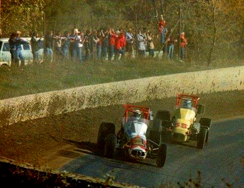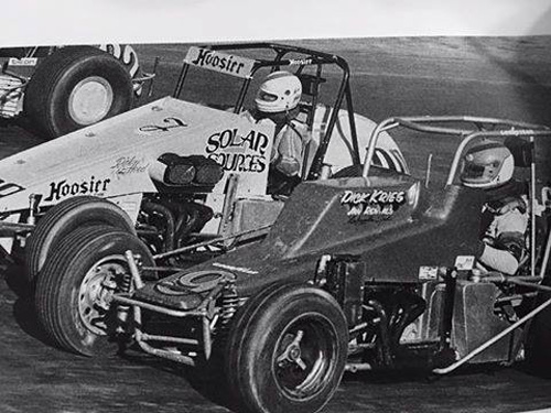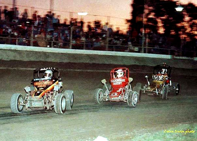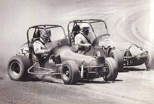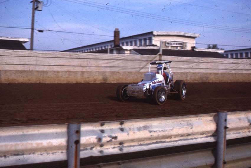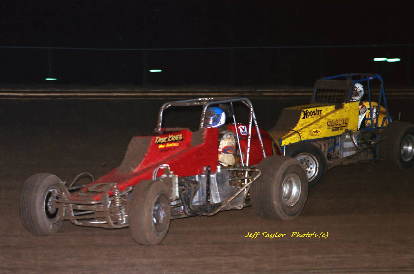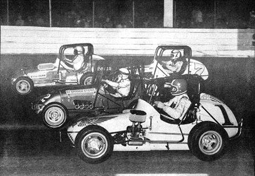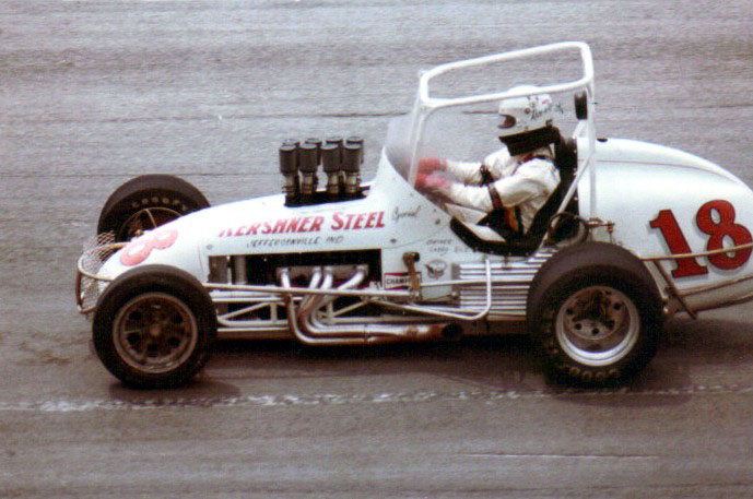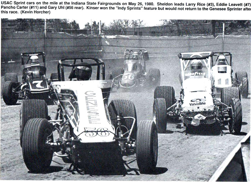 Larry right behind Sheldon Kinser with Eddie Levett, Pauncho Carter and Gary Uhl on the mile at Indiana St Fairgrounds