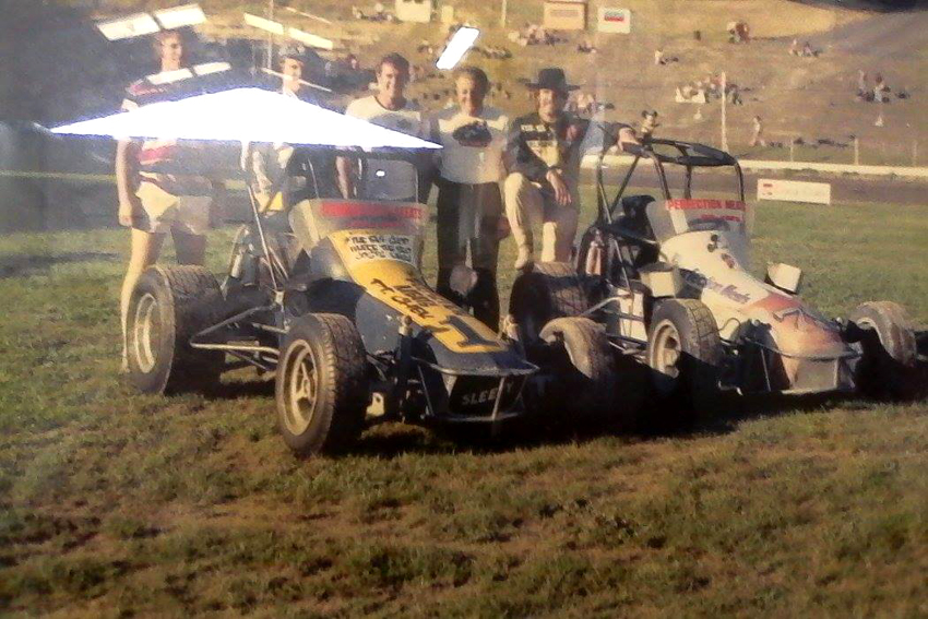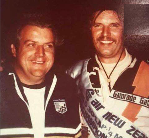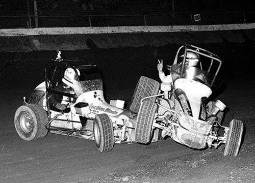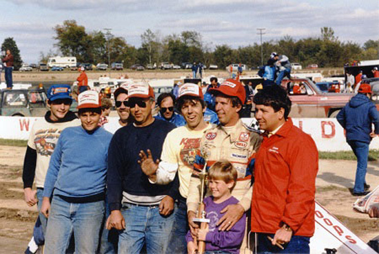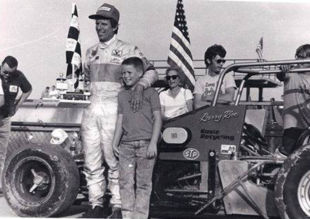 Larry and his son pose after he won the 1987 Champ Dirt Car portion of the 4 Crown at Eldora