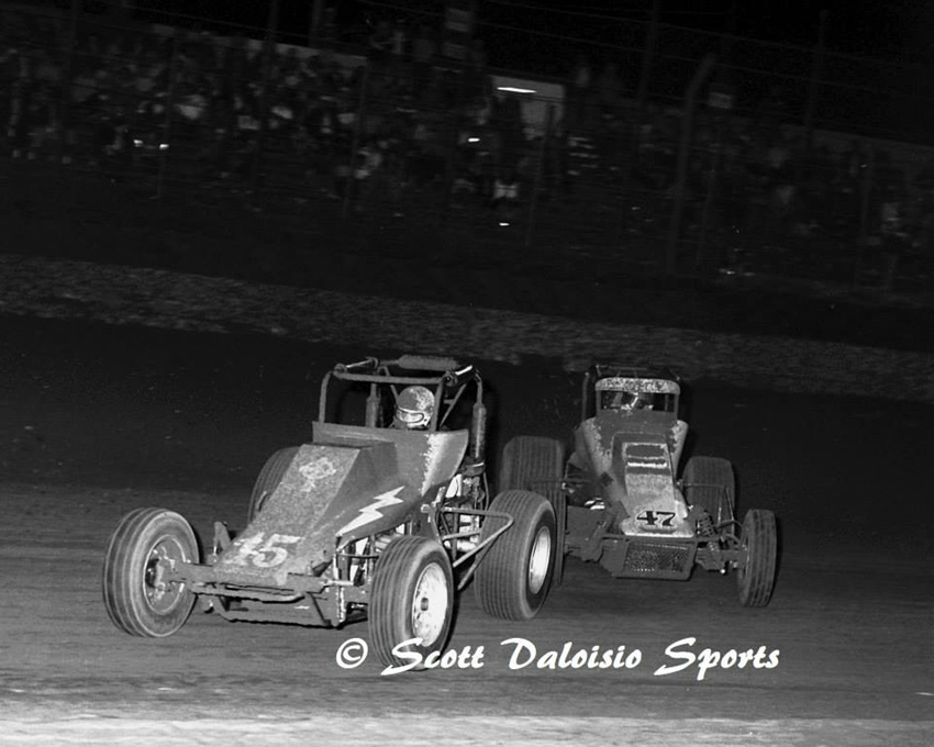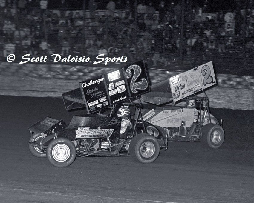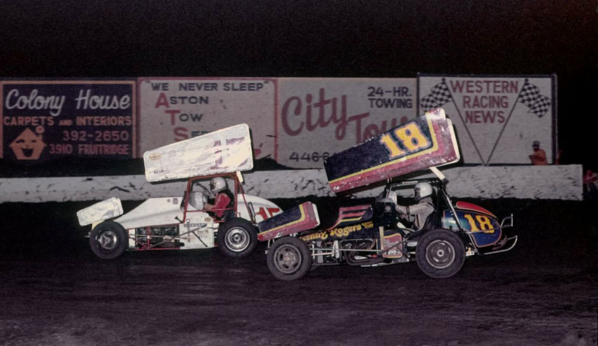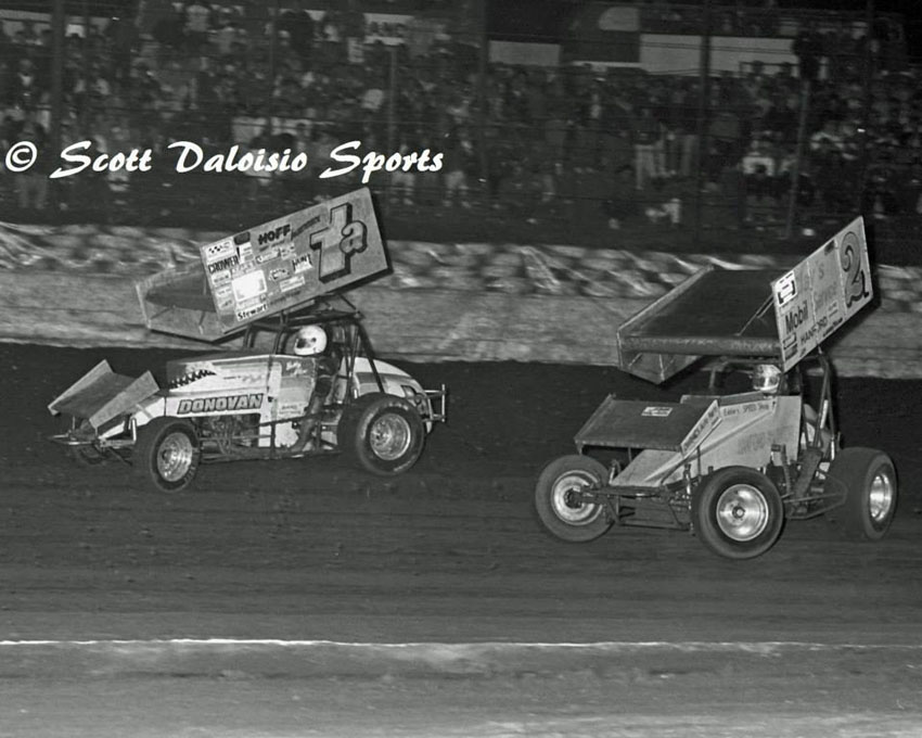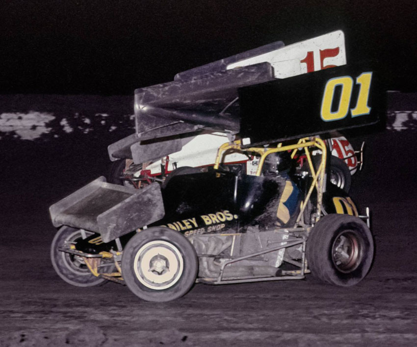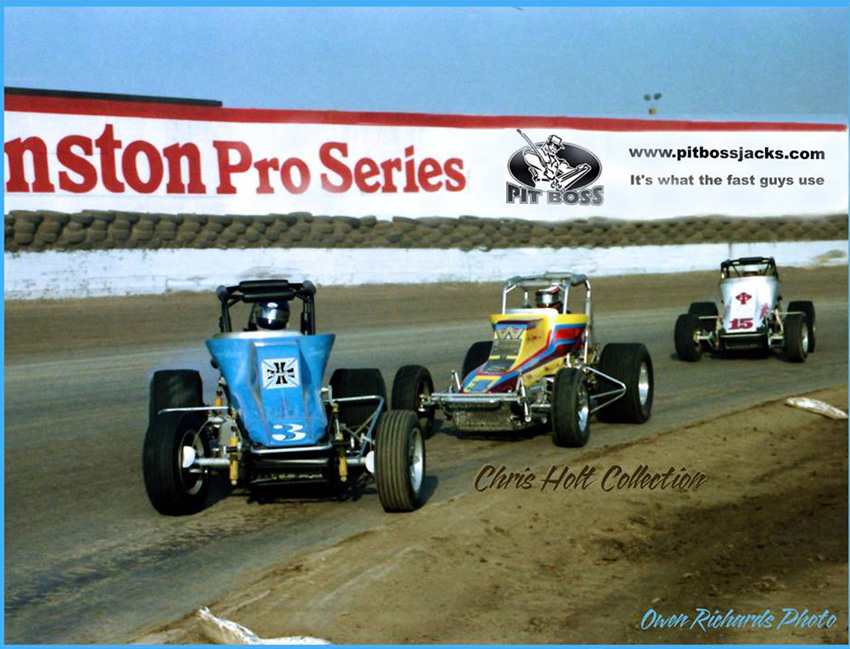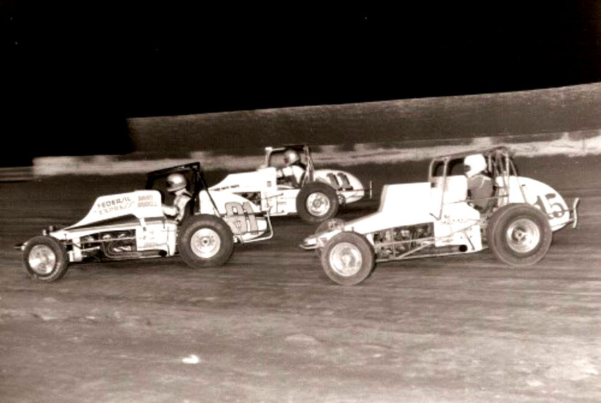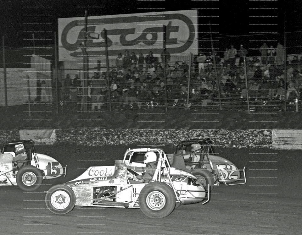 # 15 chasing # 11 Steve Kinser and # 91 Sammy Swindell