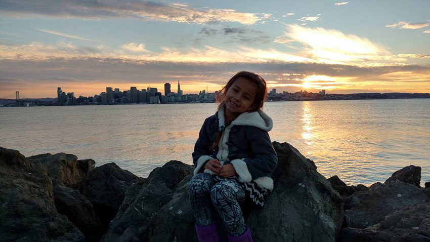 Hope with a background of San Francisco