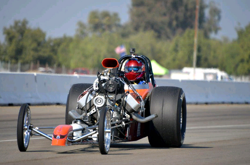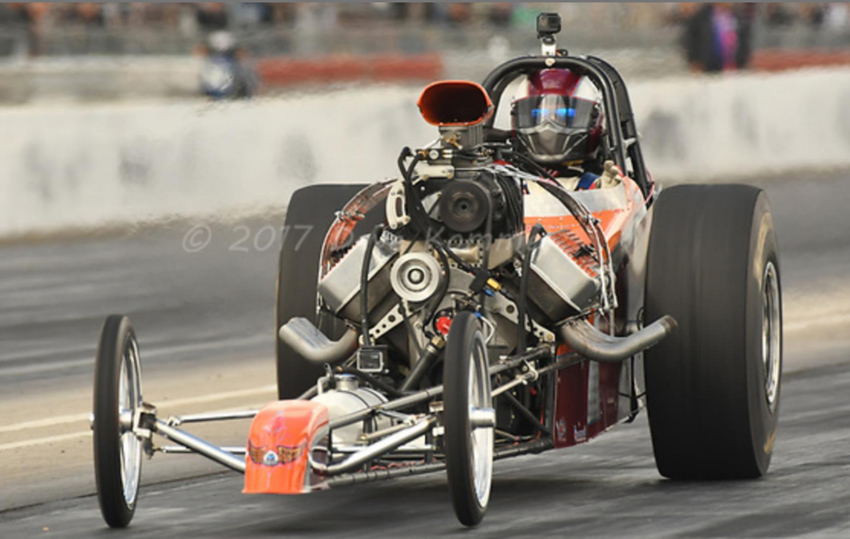Lynn in a dragster