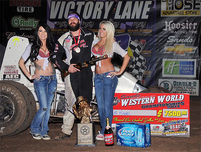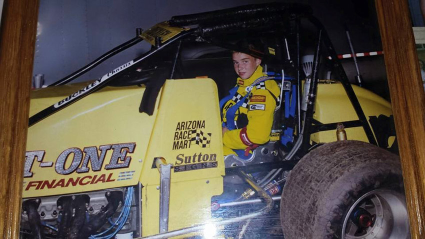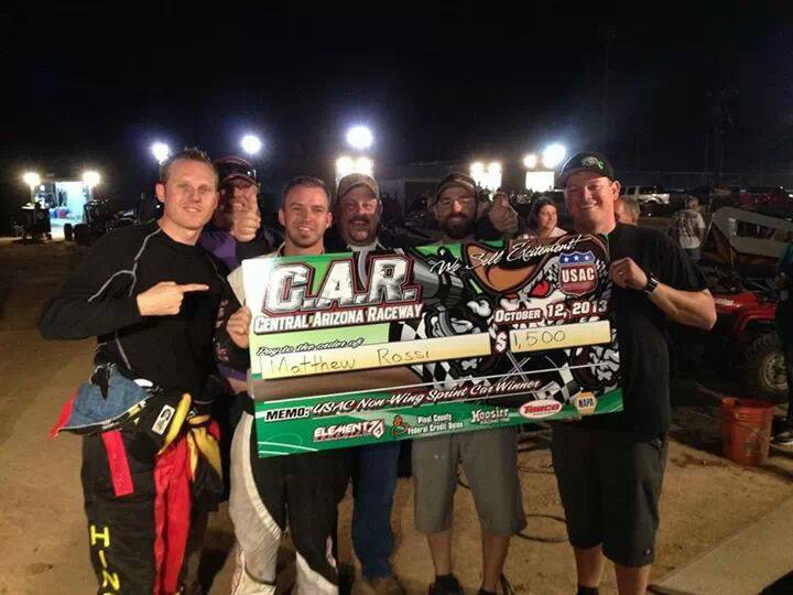 Matthew winning a USAC race