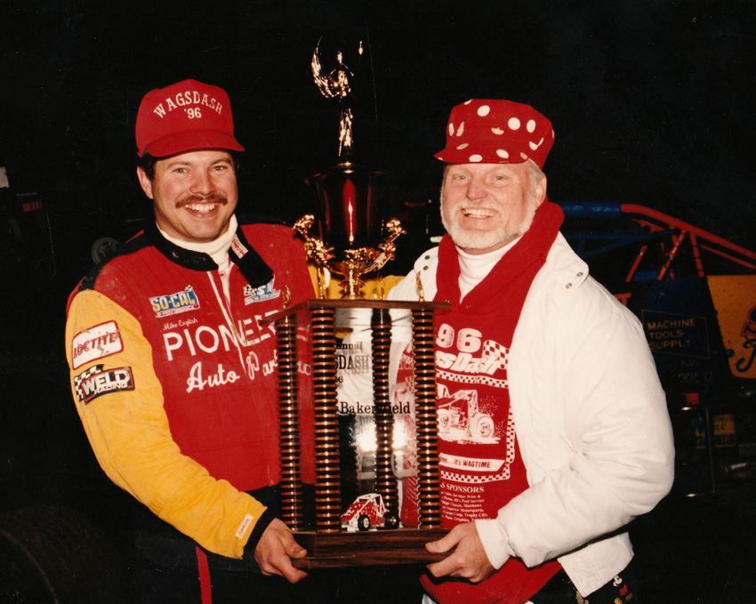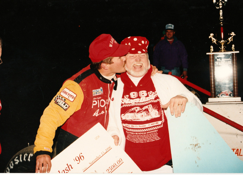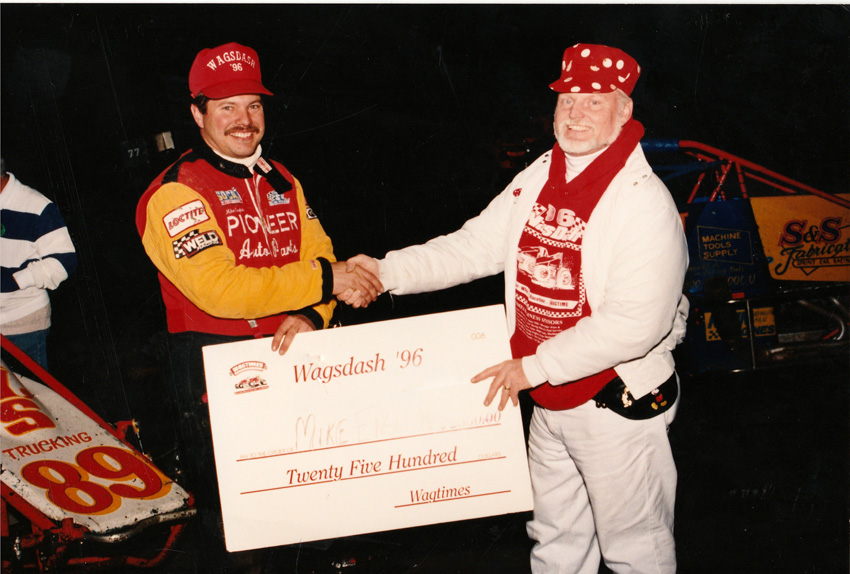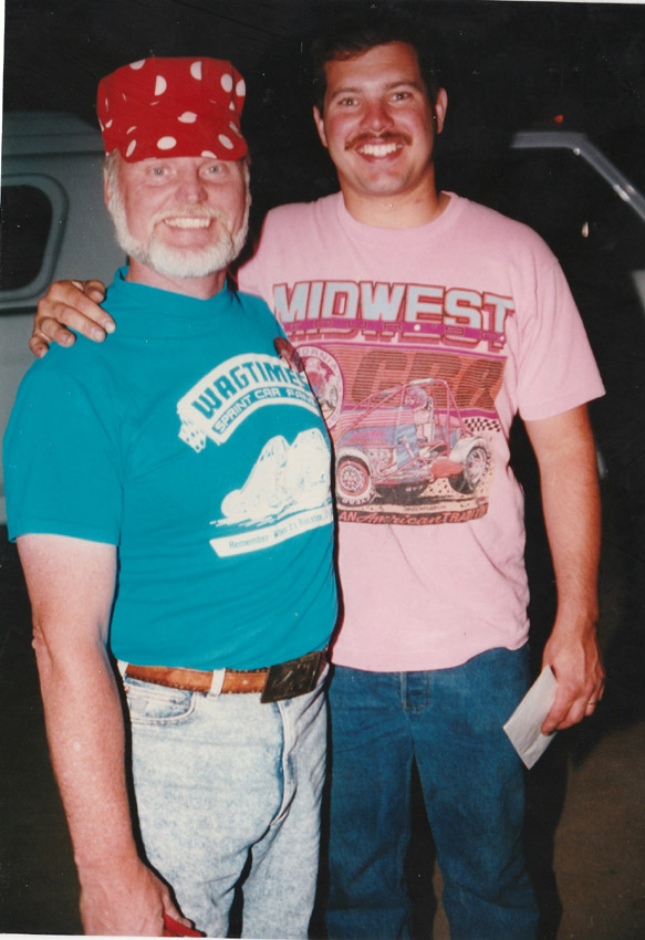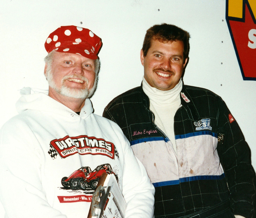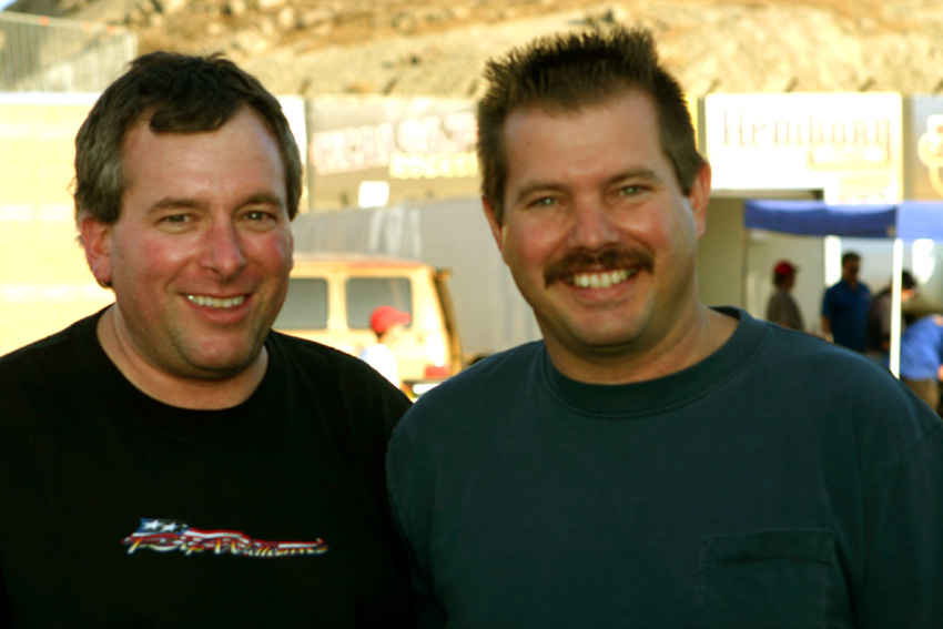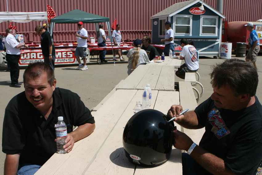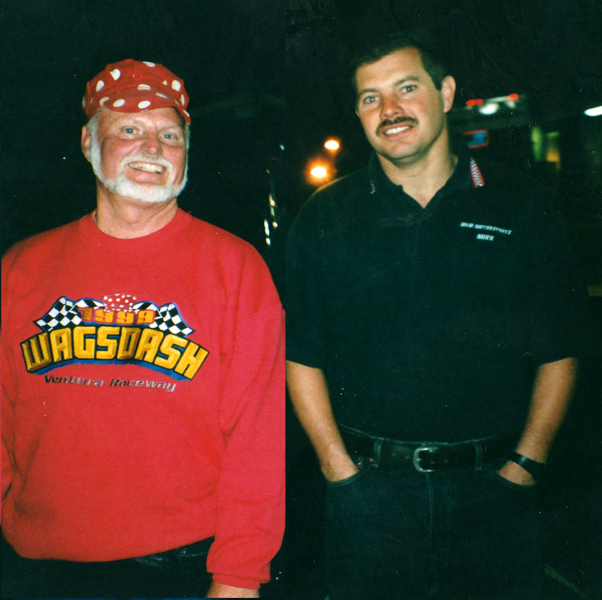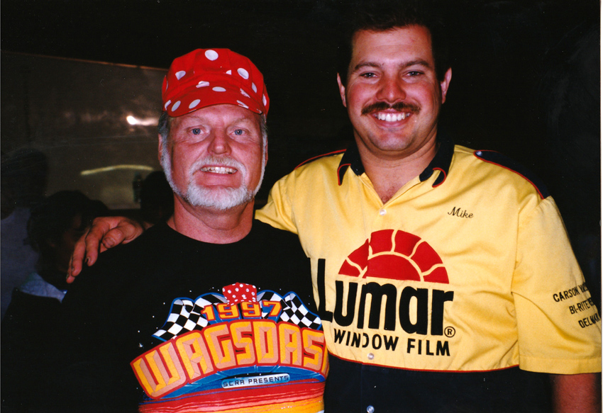 Mike with Rip Williams at a Wagsdash. Rip's signing a helmet that wasa auctioned off that night