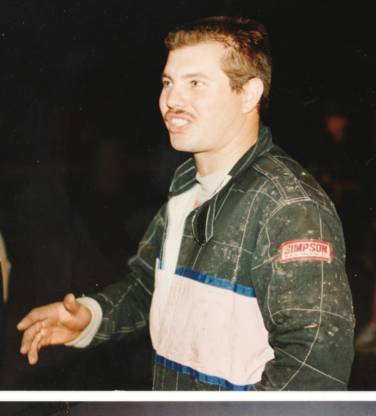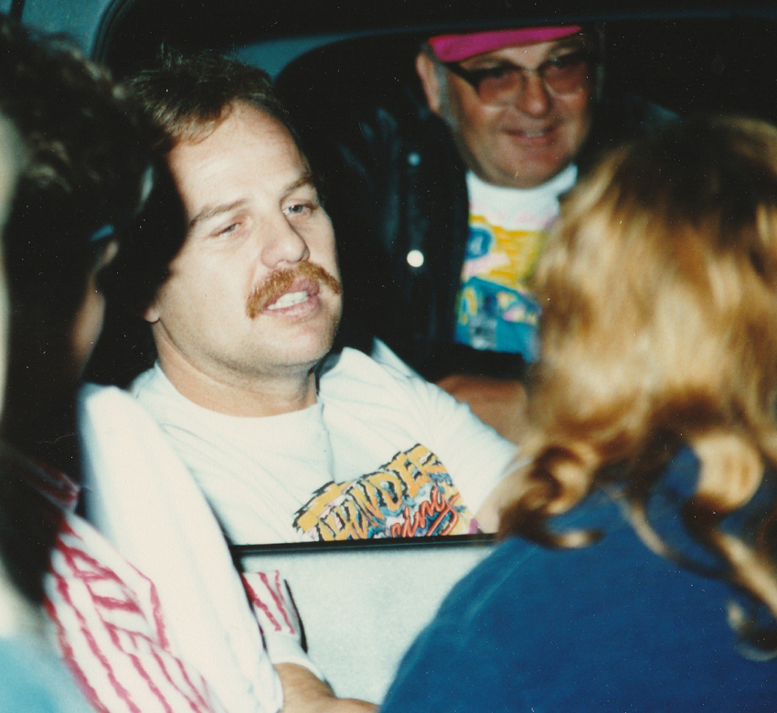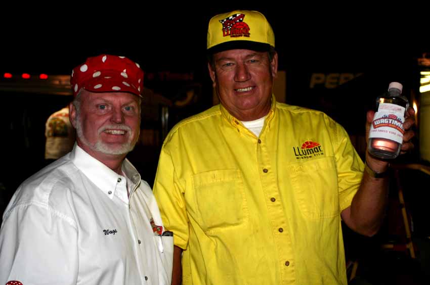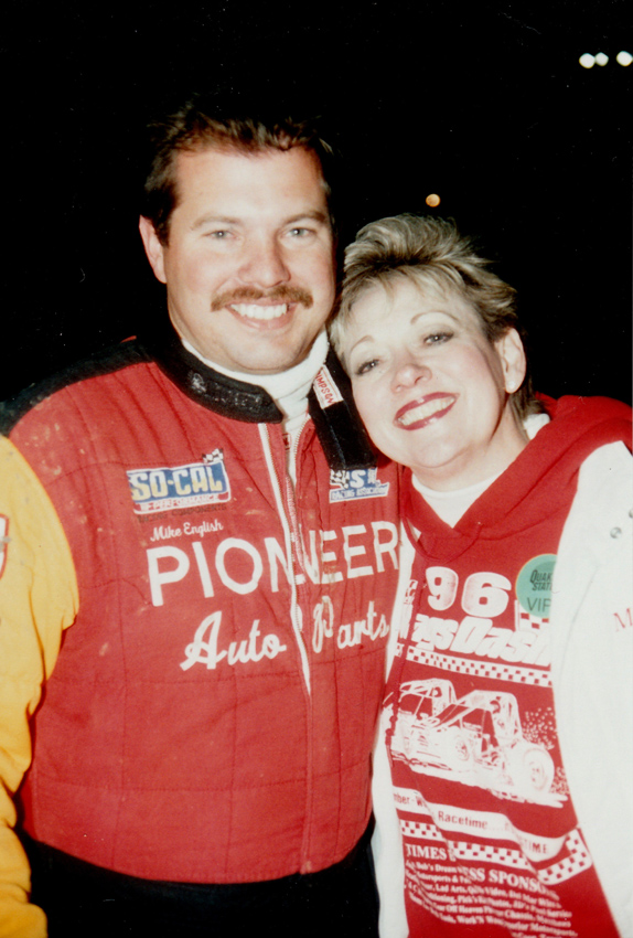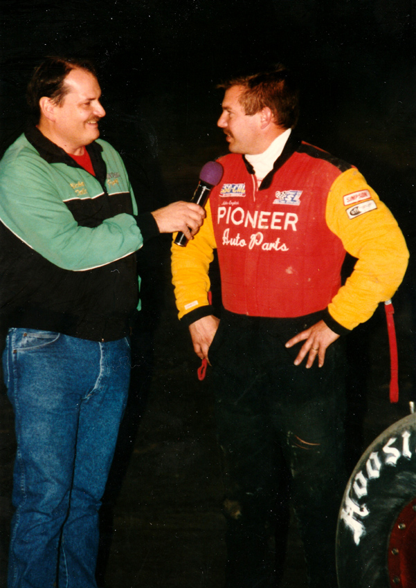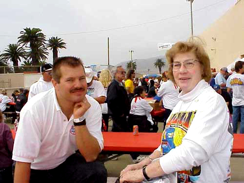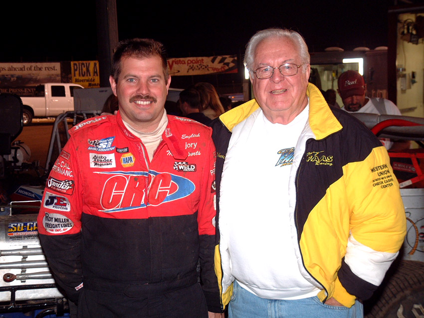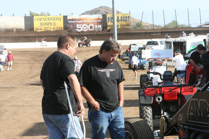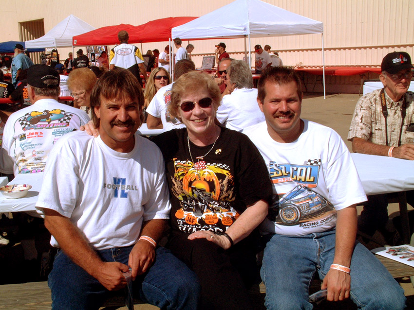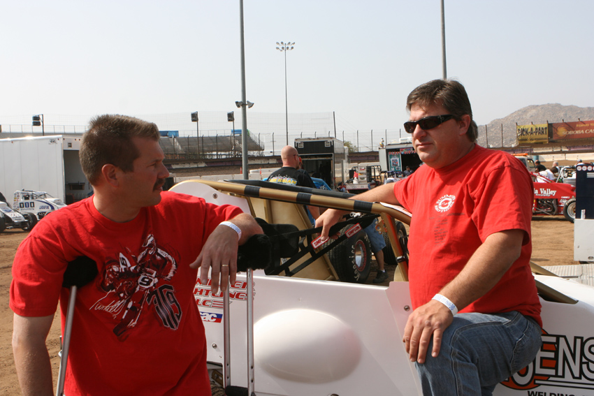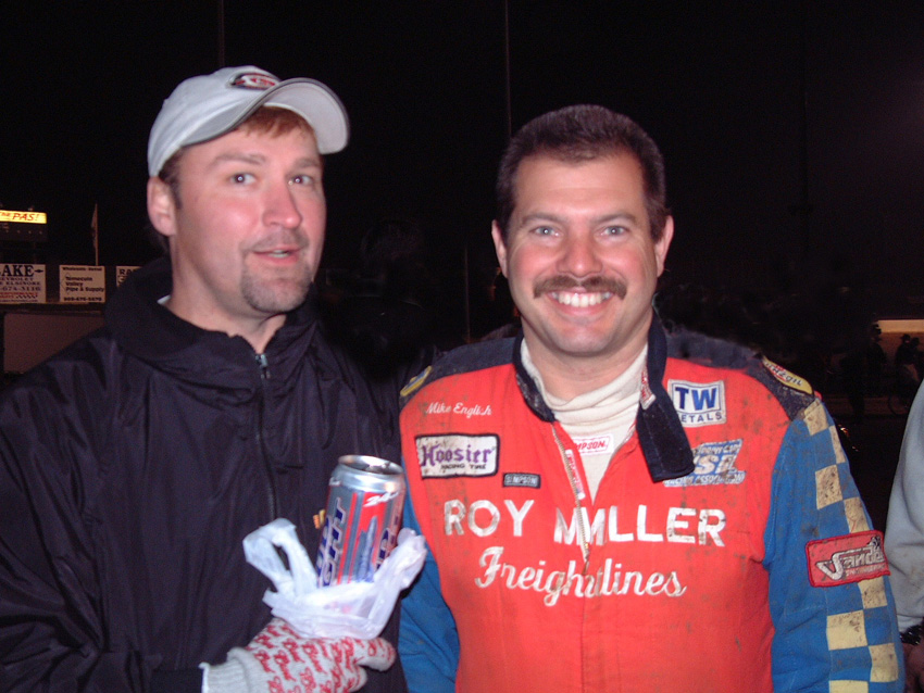 Mike with Rip Williams at a Wagsdash. Rip's signing a helmet that wasa auctioned off that night