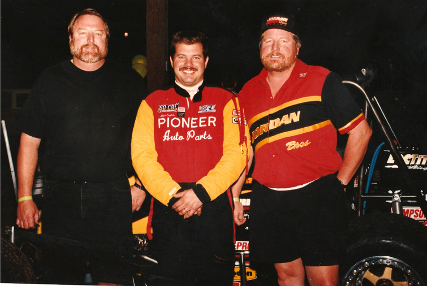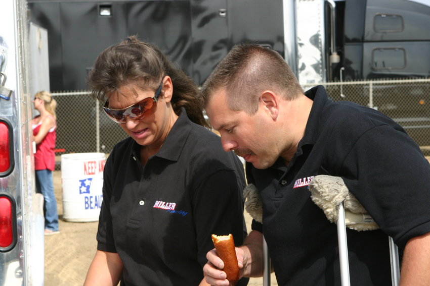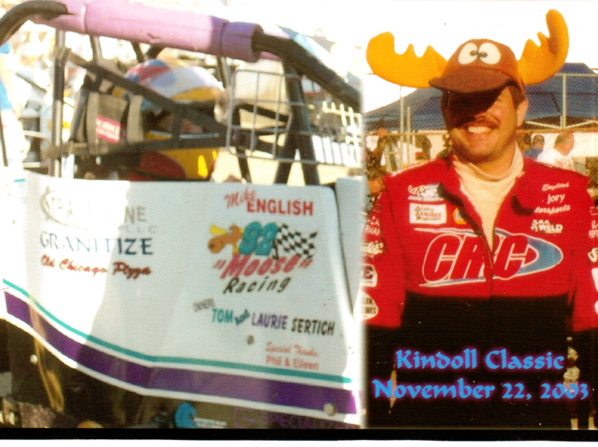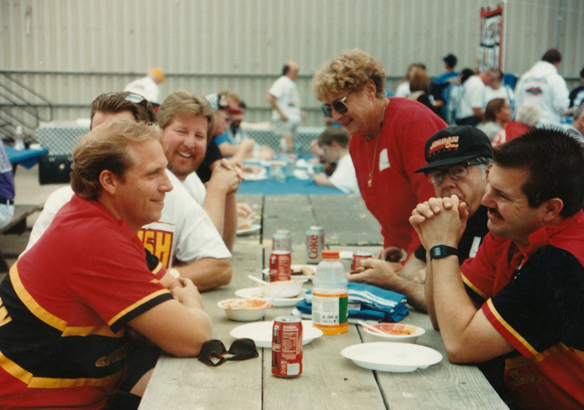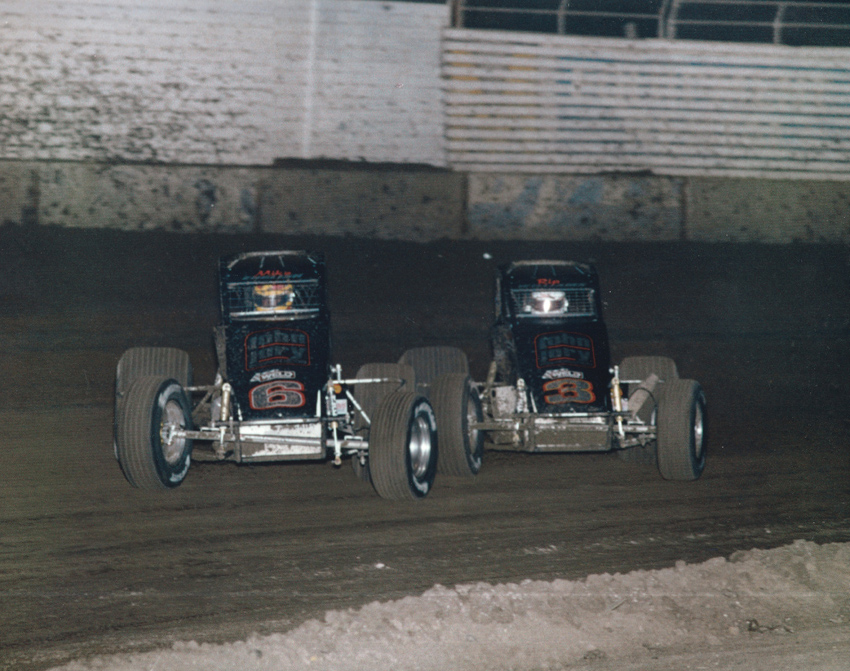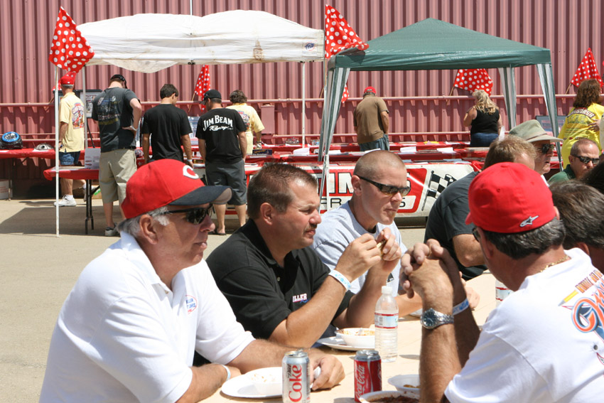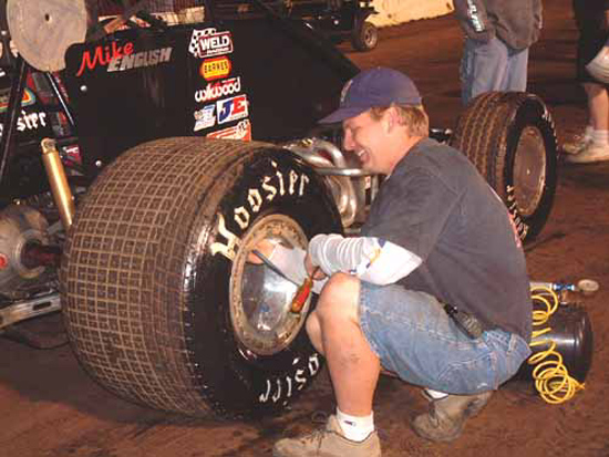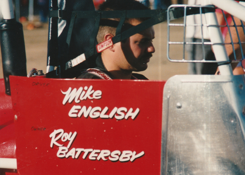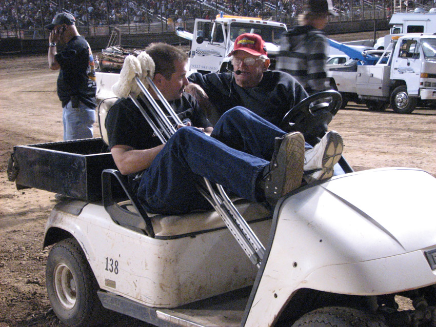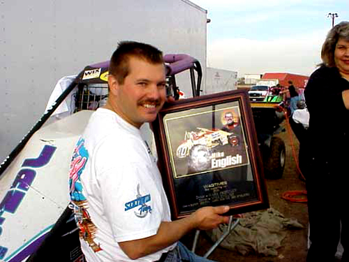 Mike with Rip Williams at a Wagsdash. Rip's signing a helmet that wasa auctioned off that night