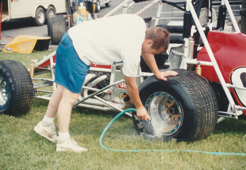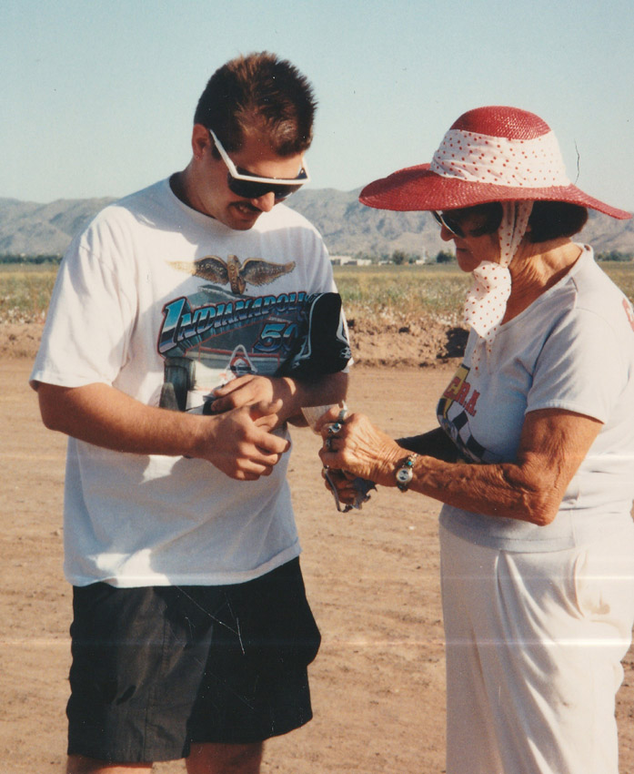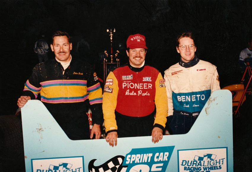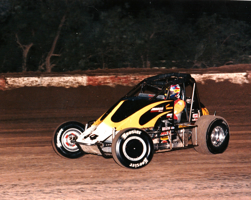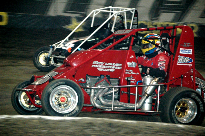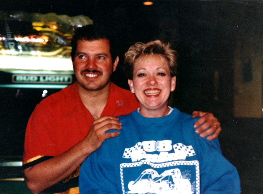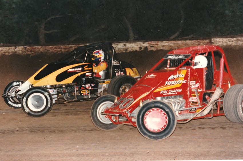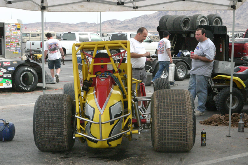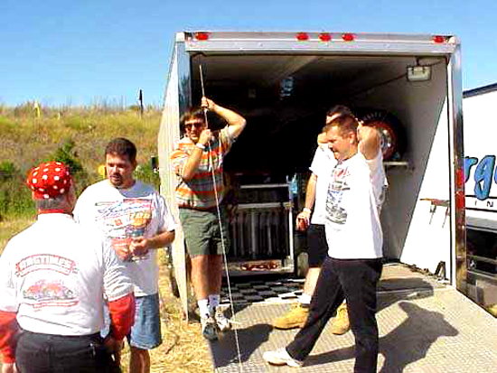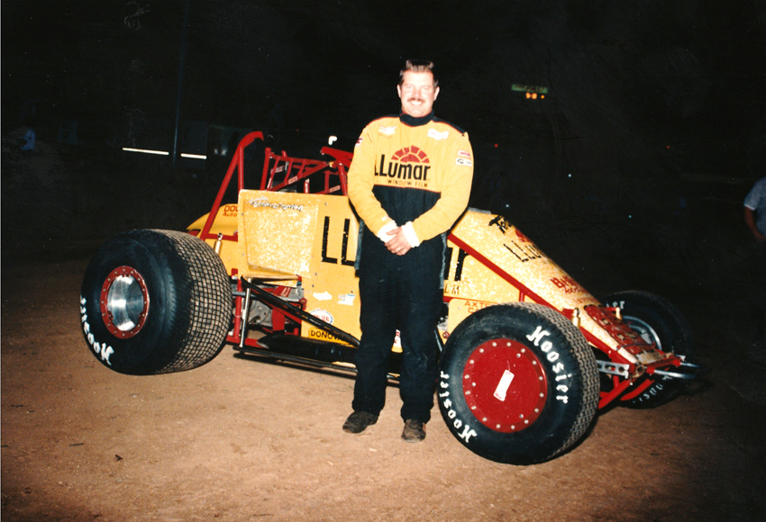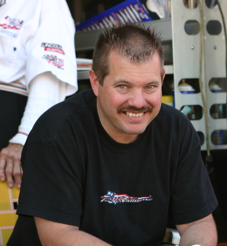 Mike with Rip Williams at a Wagsdash. Rip's signing a helmet that wasa auctioned off that night
