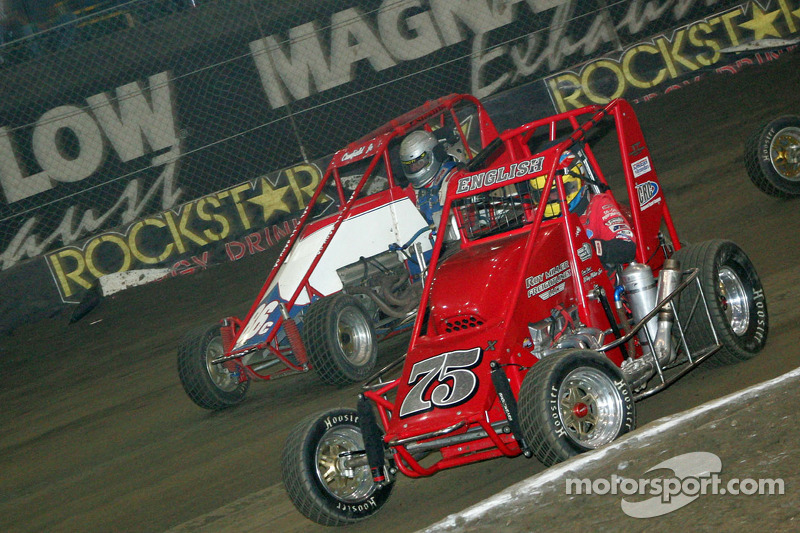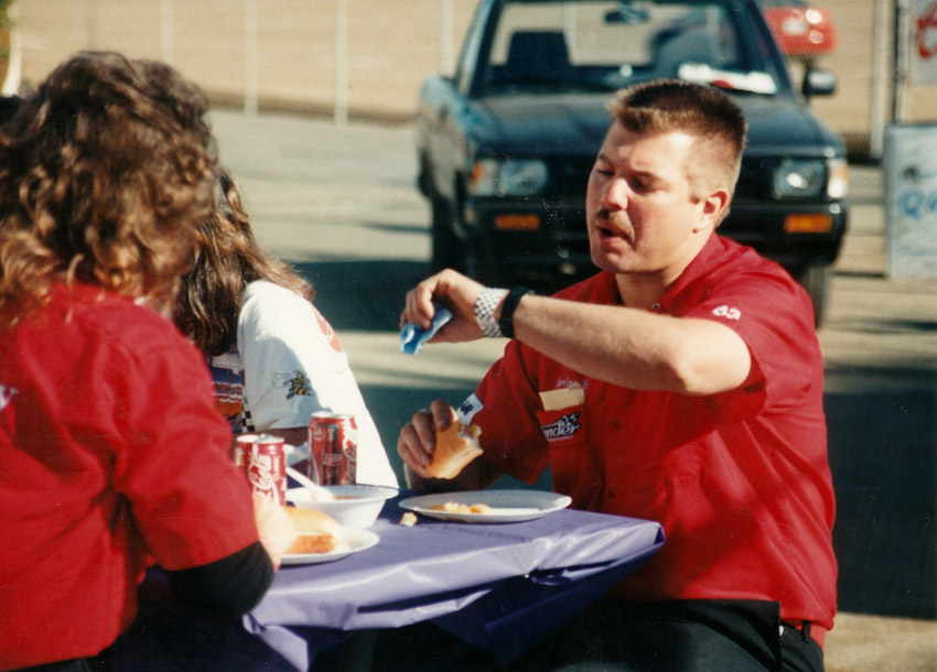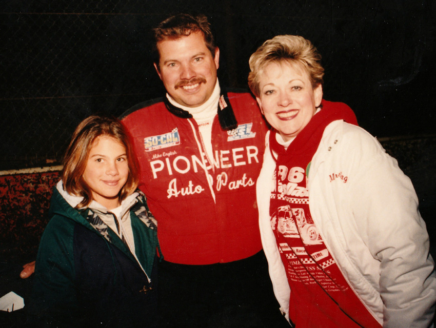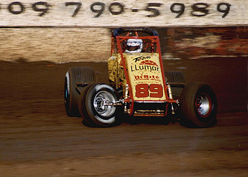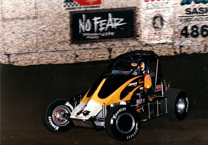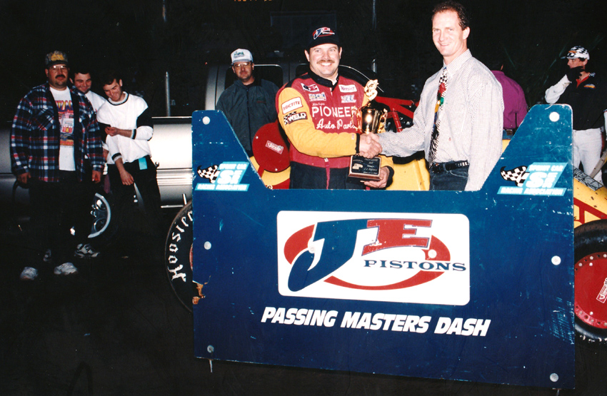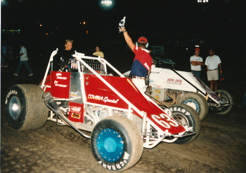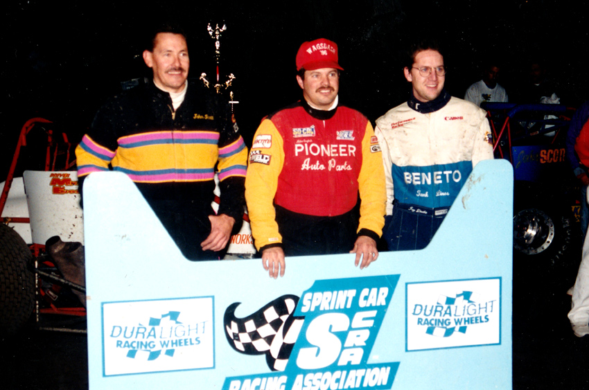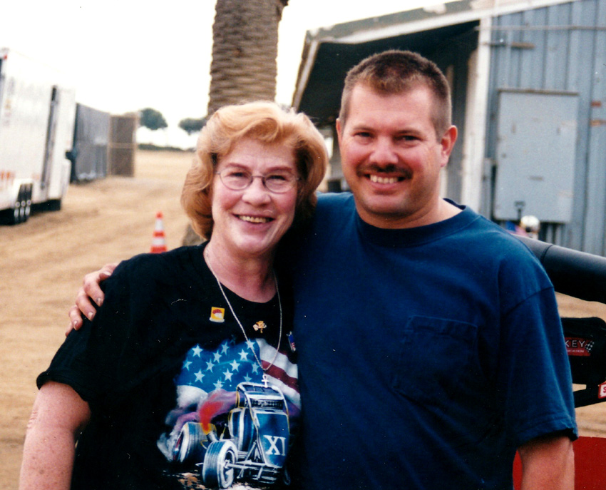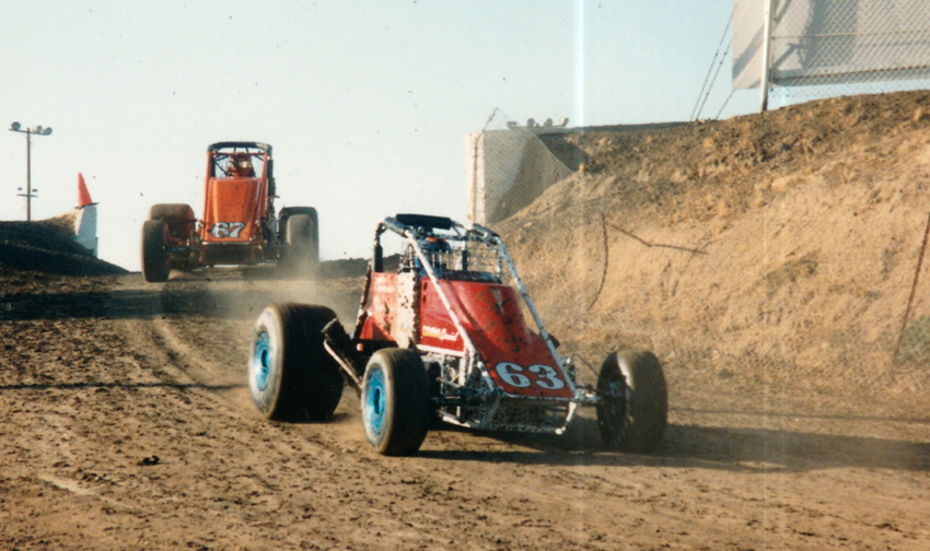 Mike with Rip Williams at a Wagsdash. Rip's signing a helmet that wasa auctioned off that night