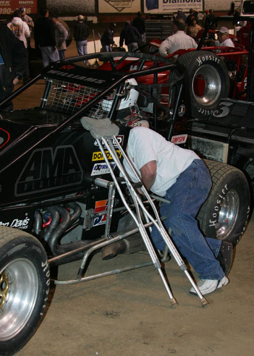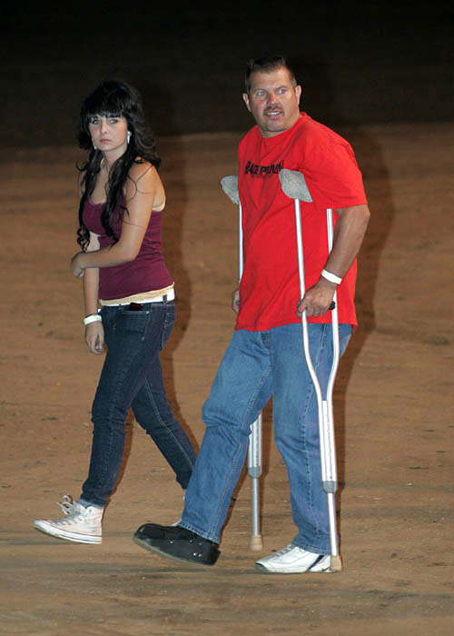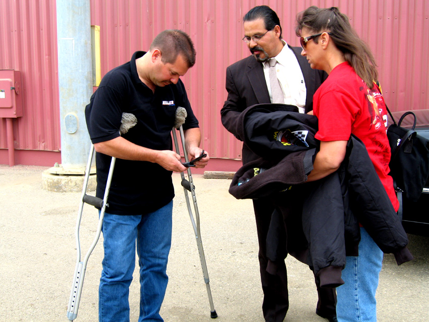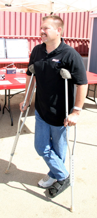 Mike on crutches after a very nasty motorcycle crash. Healing took a while