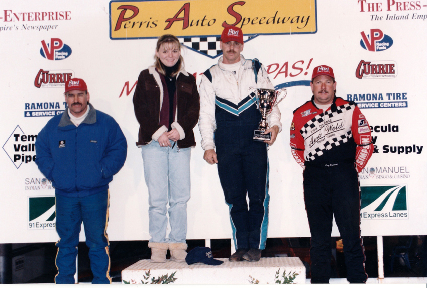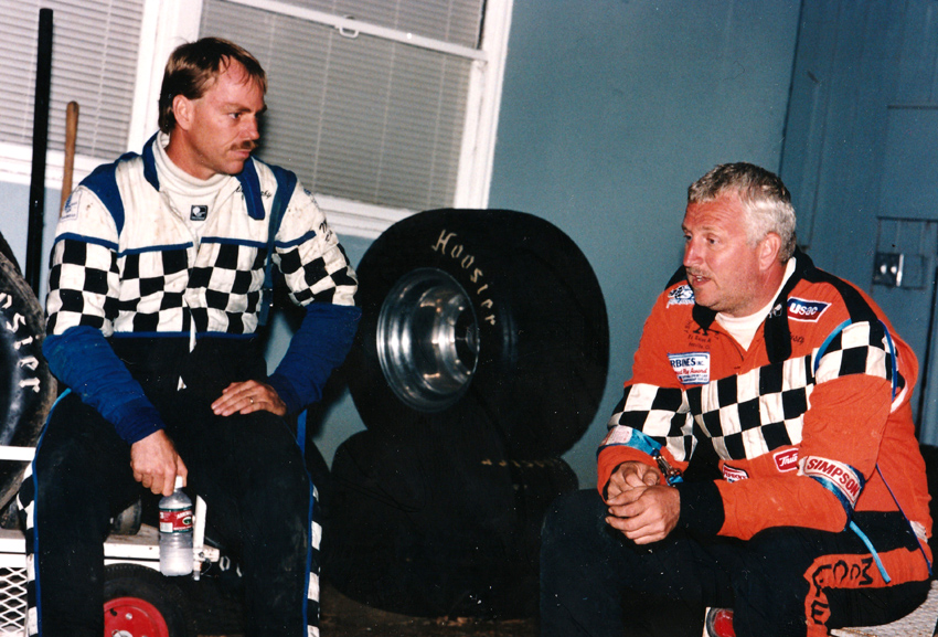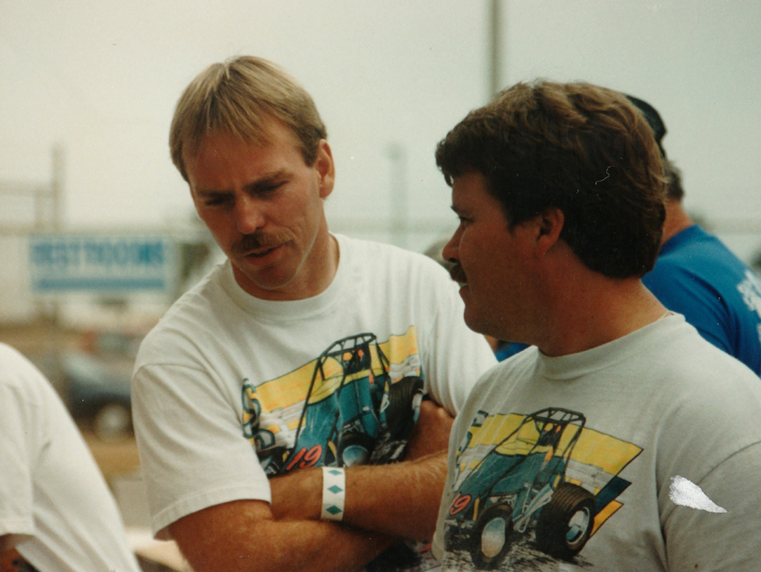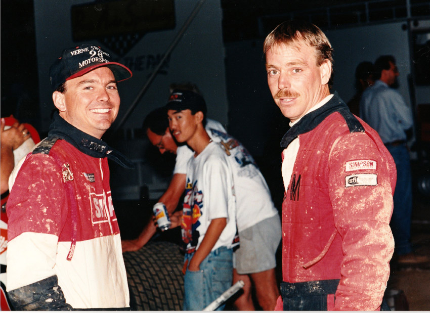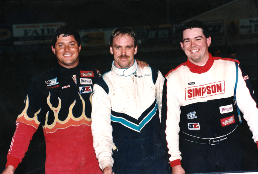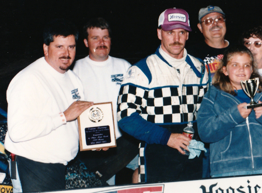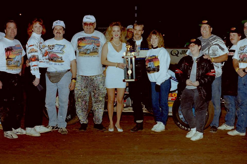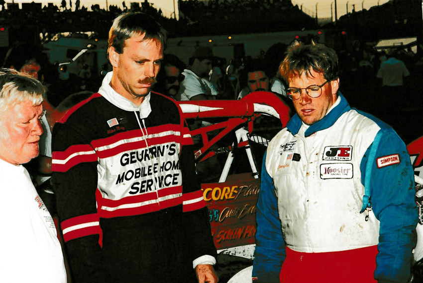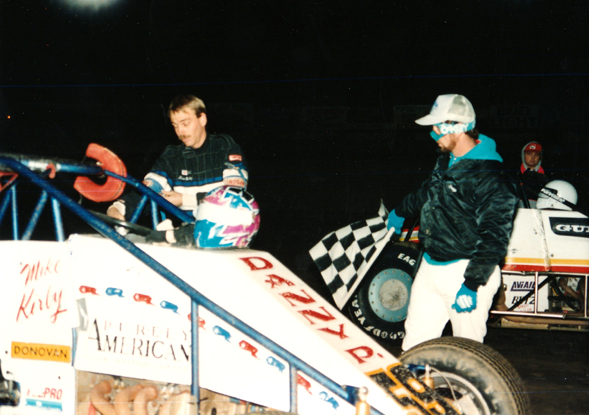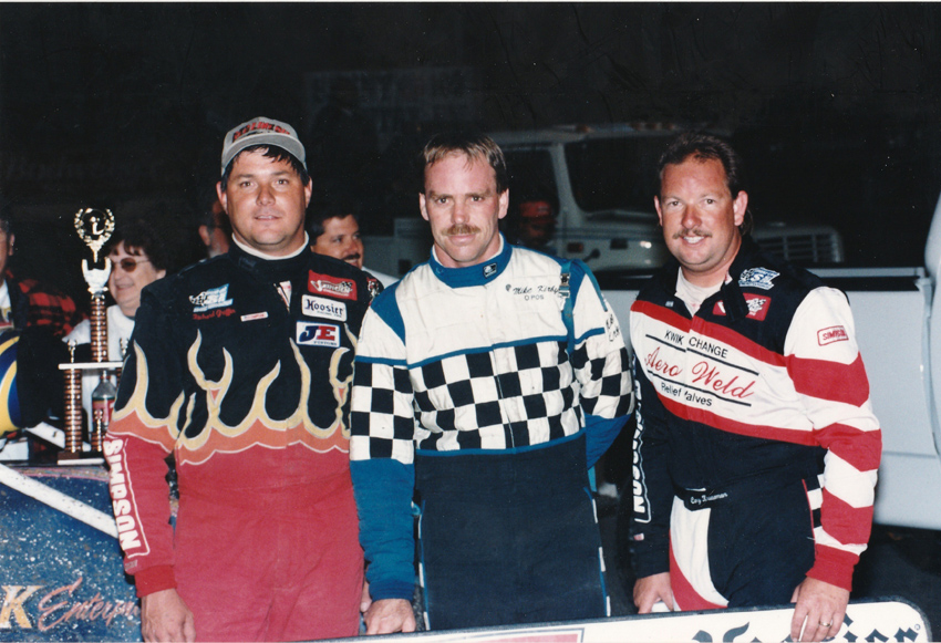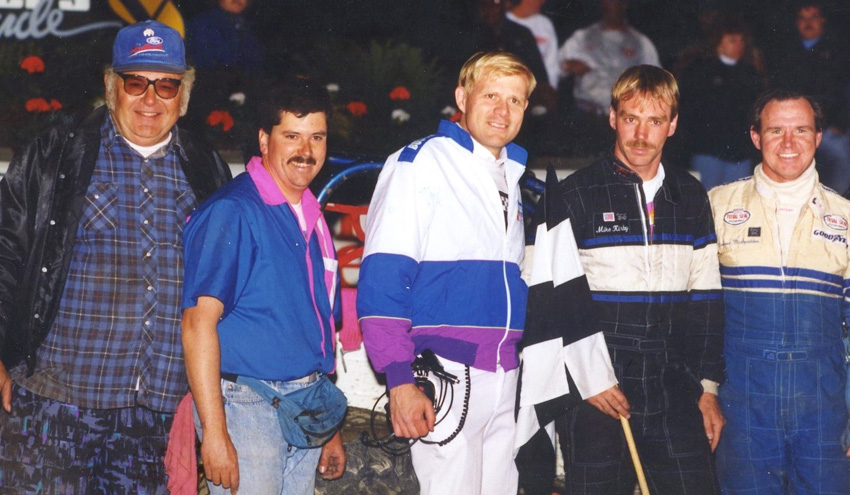 Mike with Danny Pivoverof, Brett Roa, promoter Bob Miller and Lealand McSpadden at Grandview Speedway in PA 1992