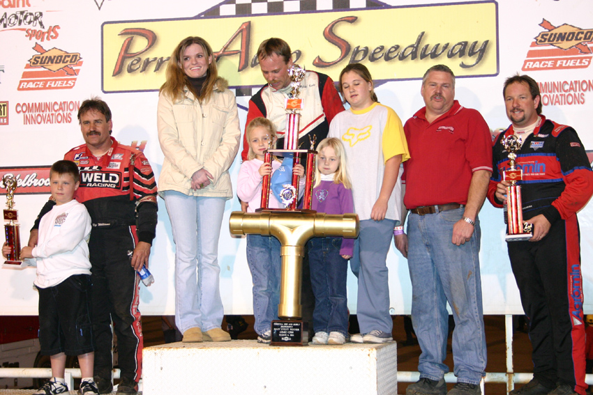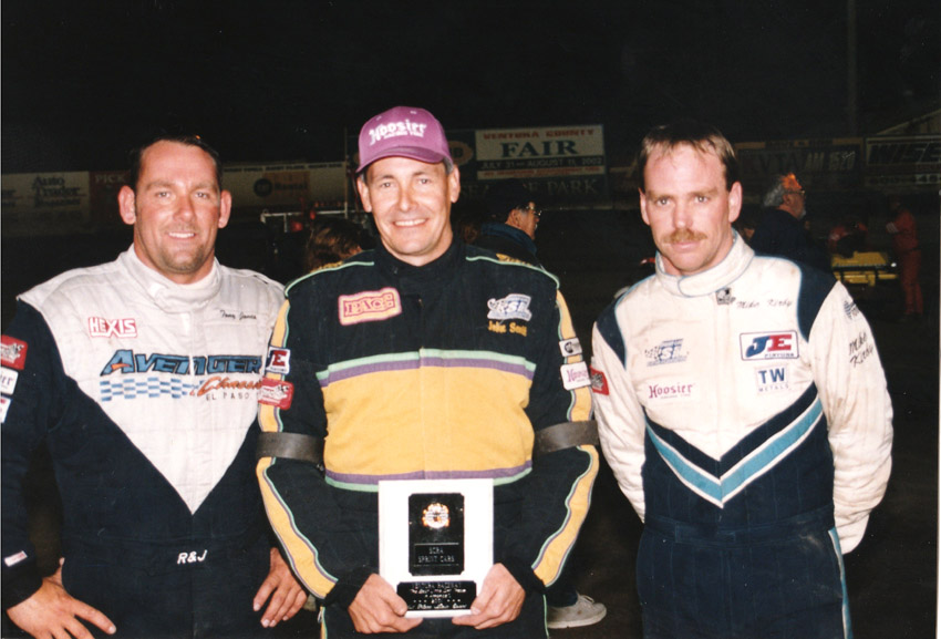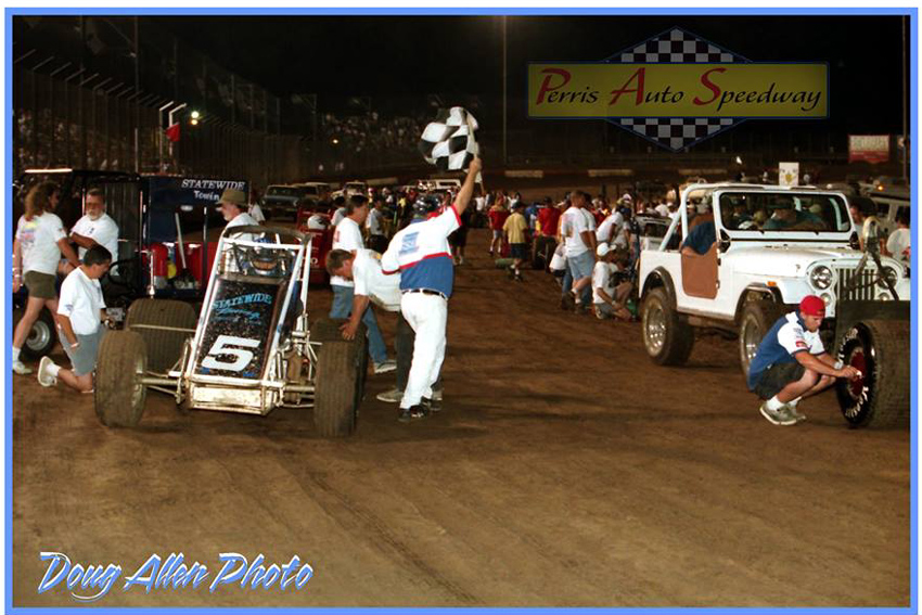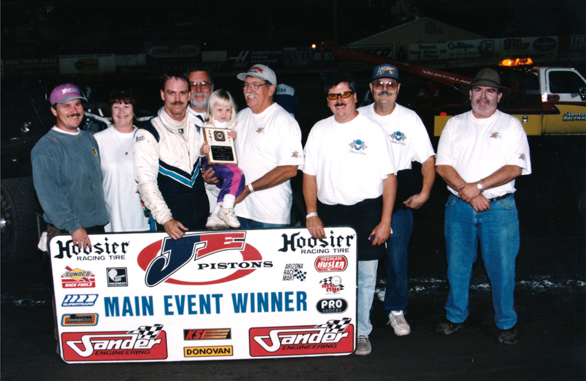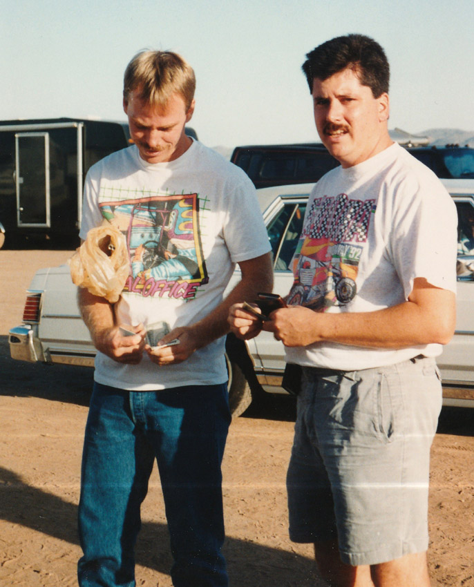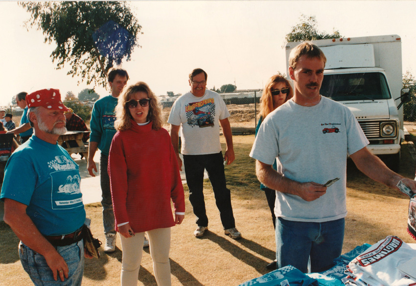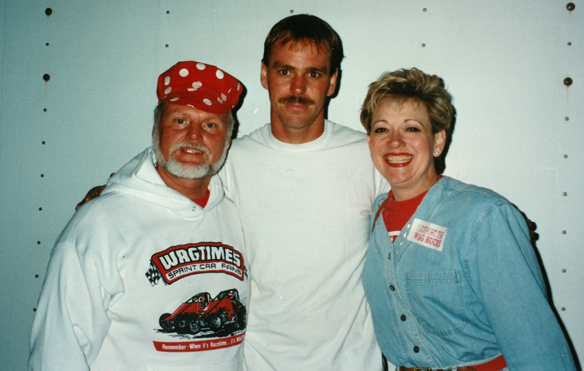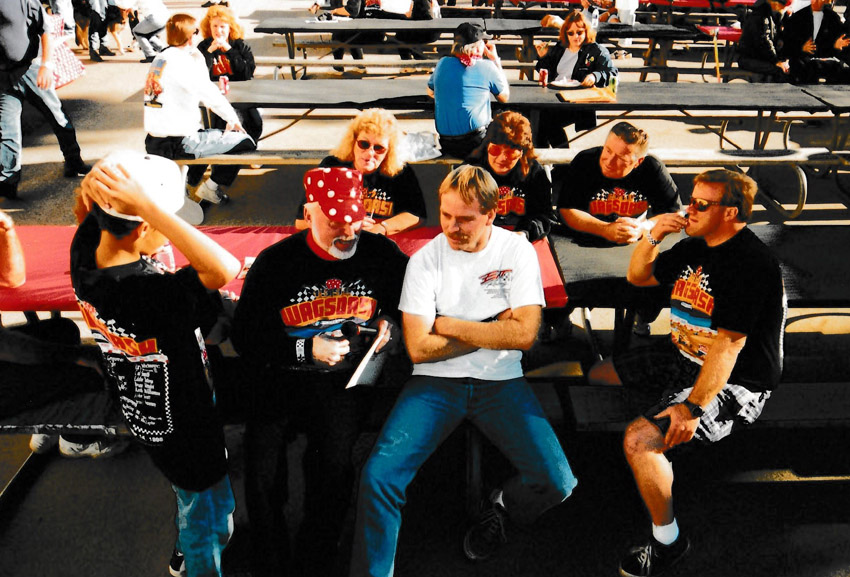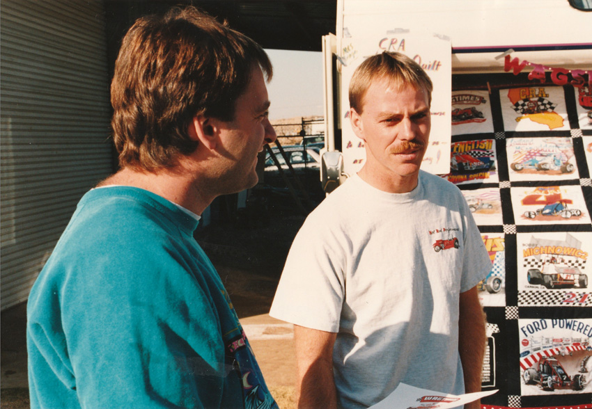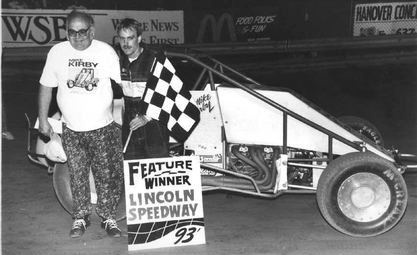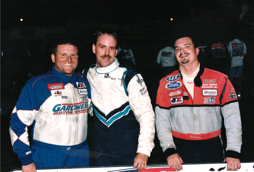 Mike with Danny Pivoverof, Brett Roa, promoter Bob Miller and Lealand McSpadden at Grandview Speedway in PA 1992