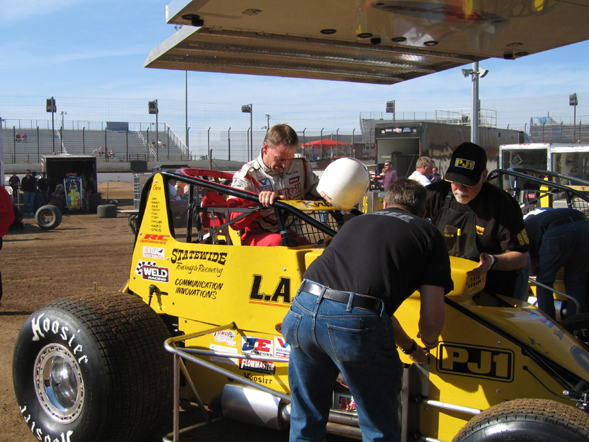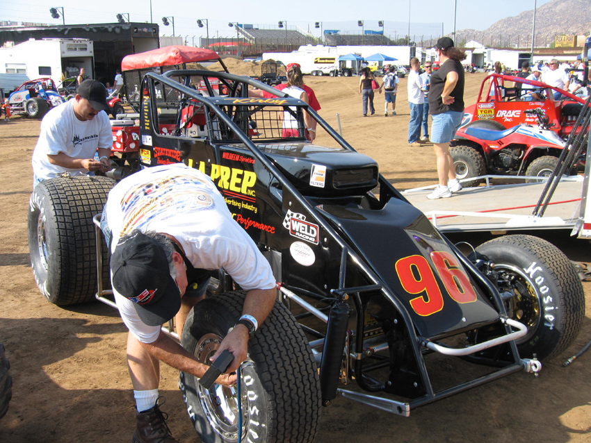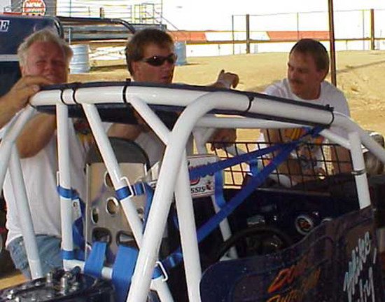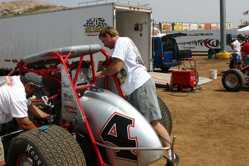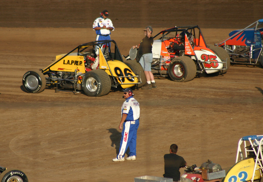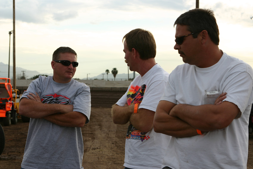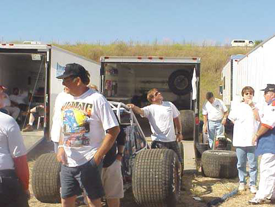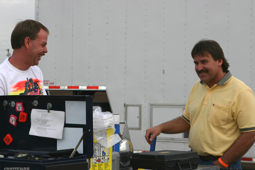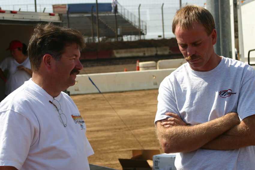 Mike and Charles Davis Jr hanging out in the Manzy pits
