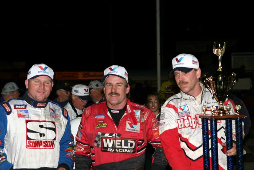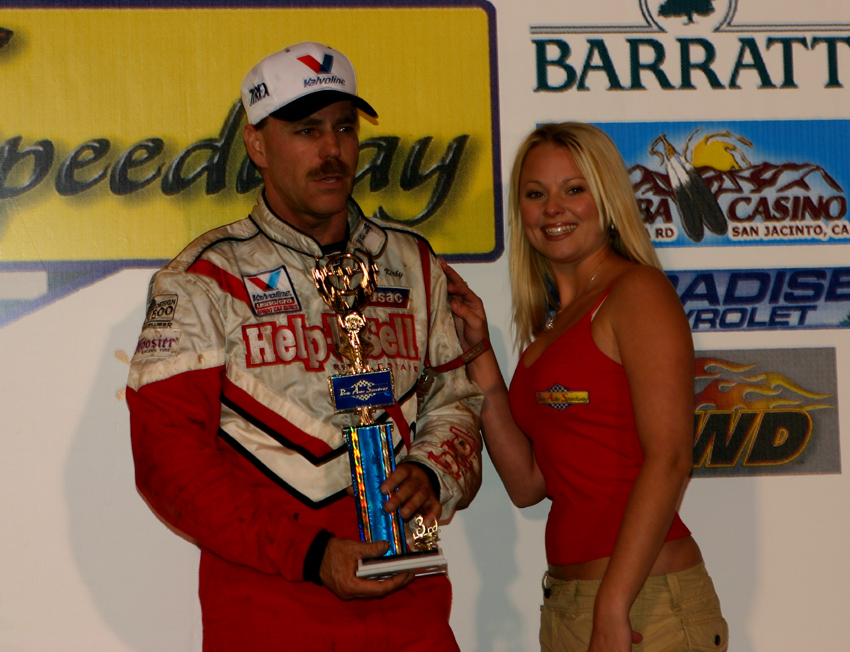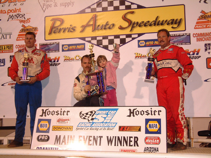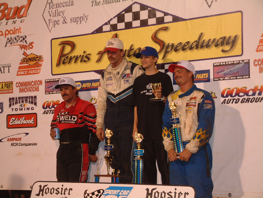 Mik on Perris podium with Troy Rutherford and Cory Kruseman
