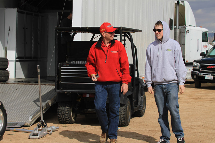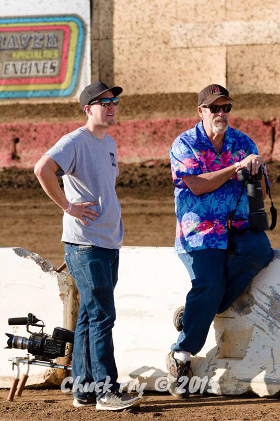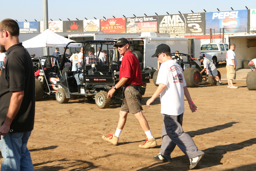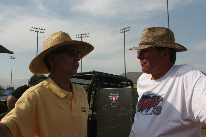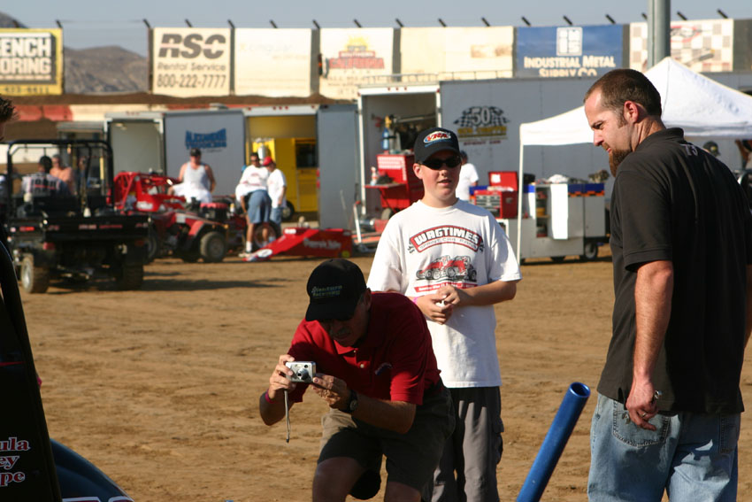 Mike filming the pit meeting at Perris with R J Johnson and Tpony Everhart