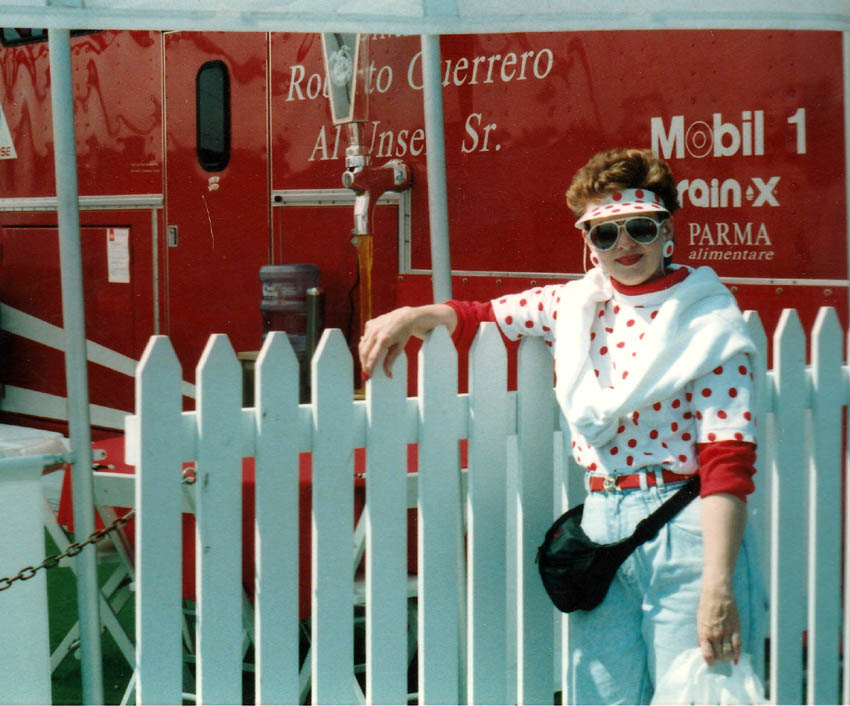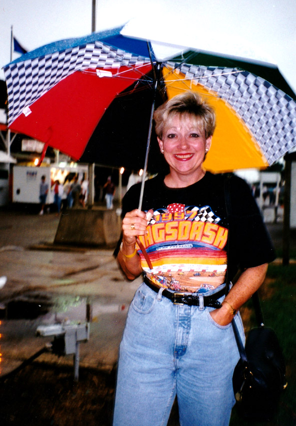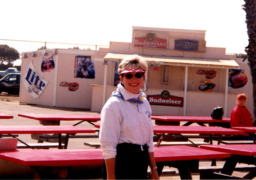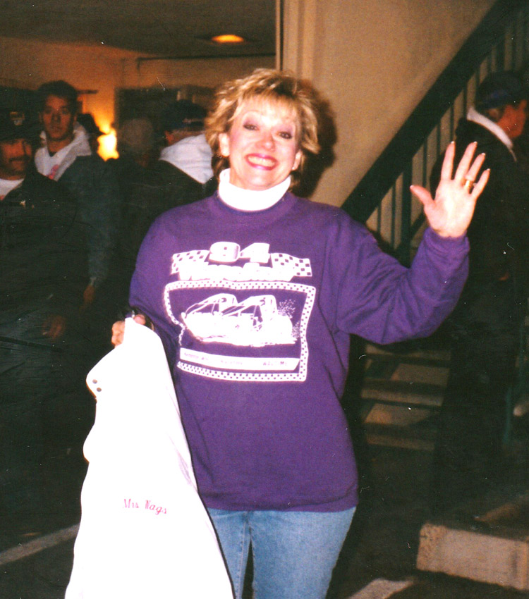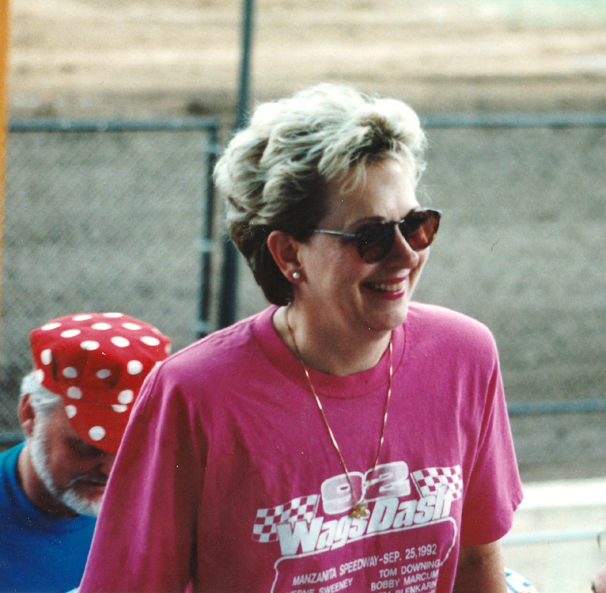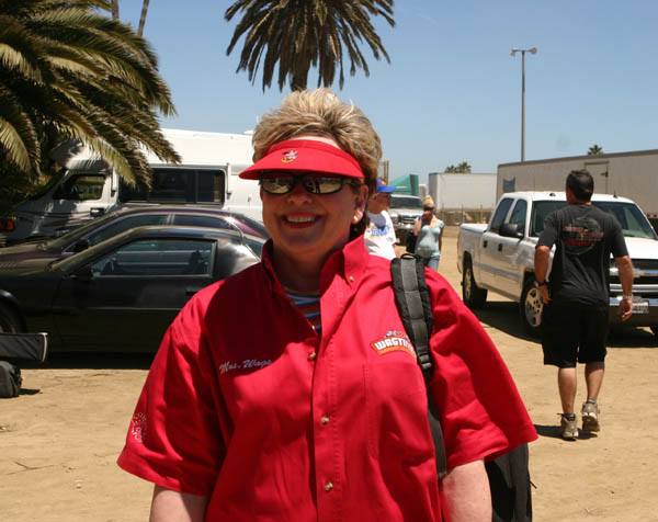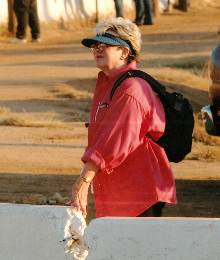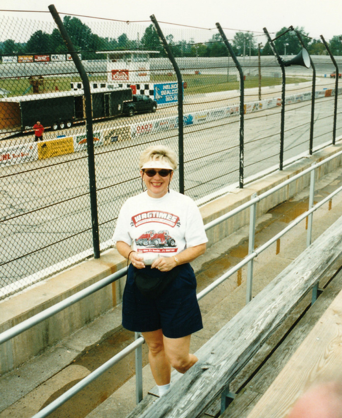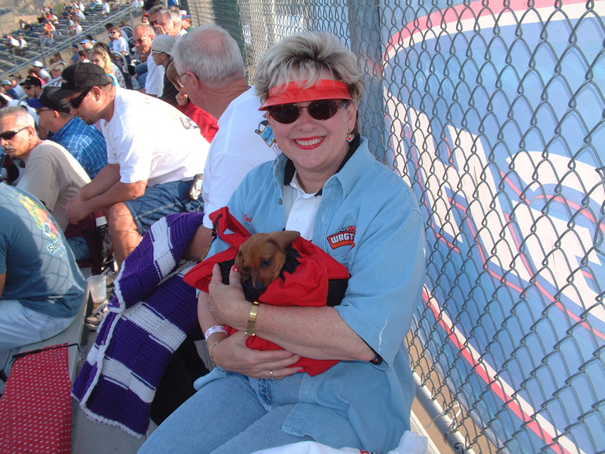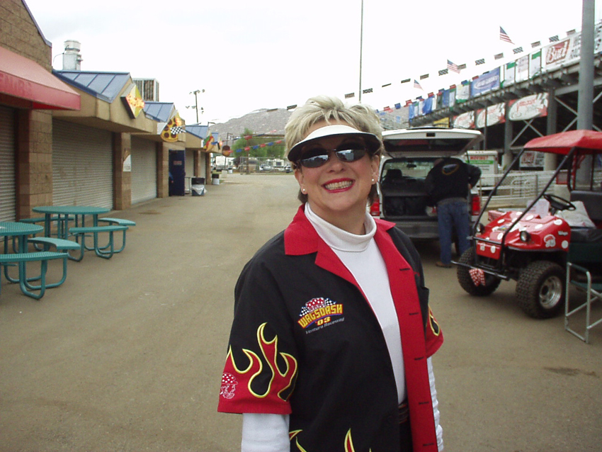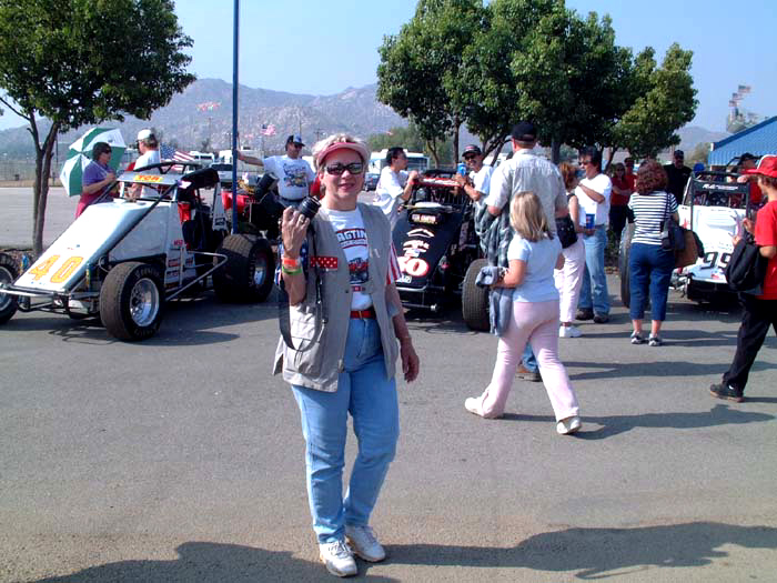 Mrs Wags in the Winchester grandstands when we went to visit the promoter.