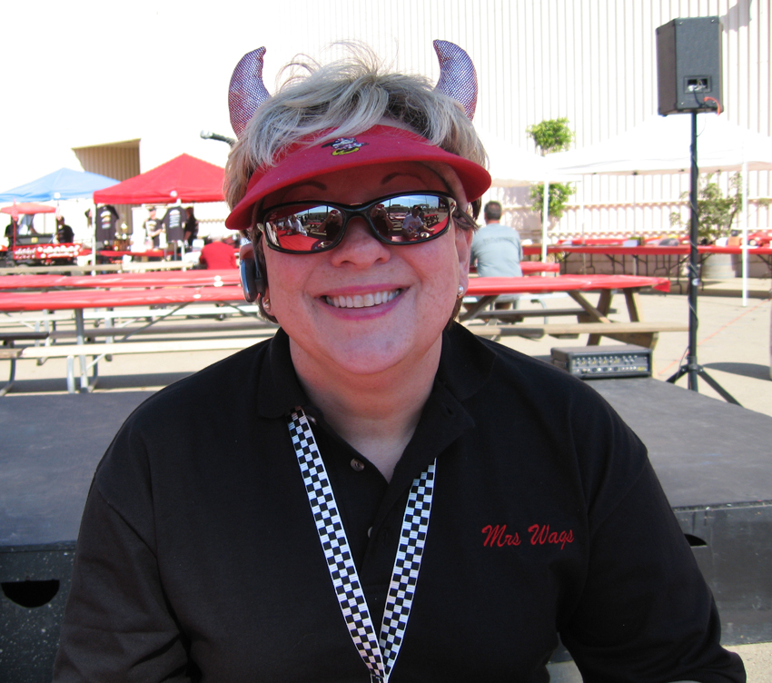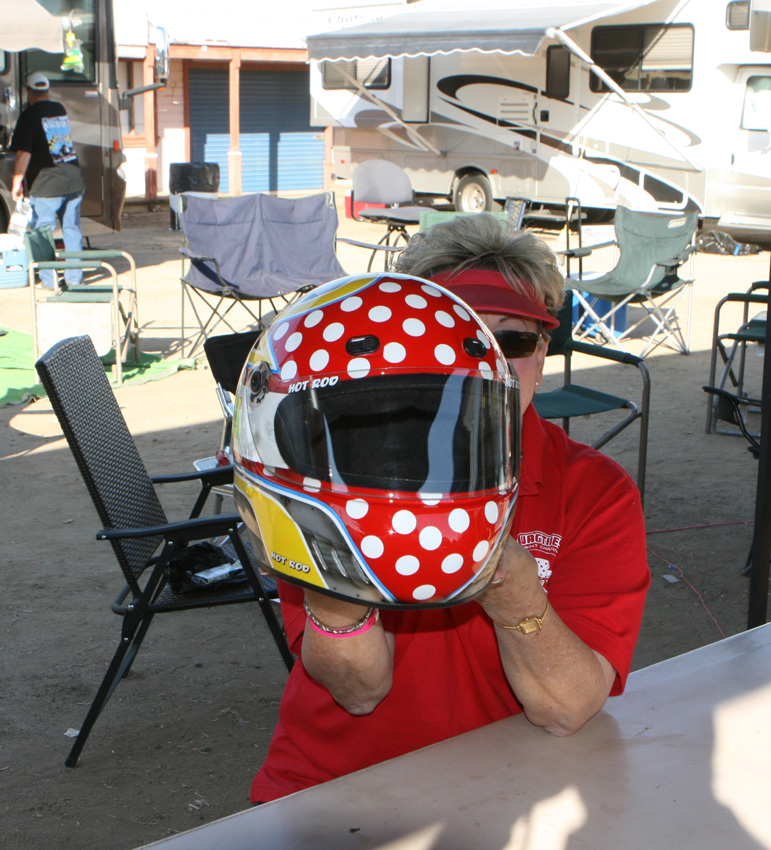 Mrs Wags with the Wagtimes helmet by Hot Rod Anderson
