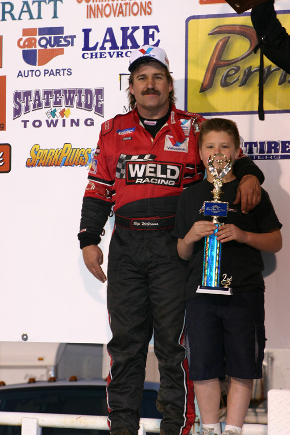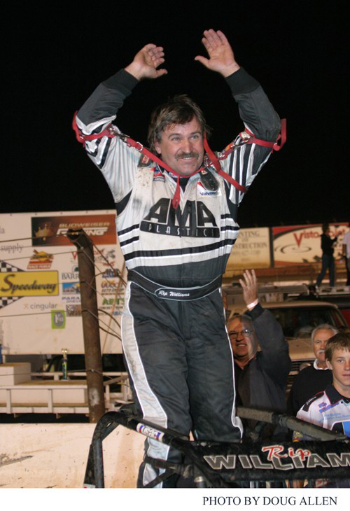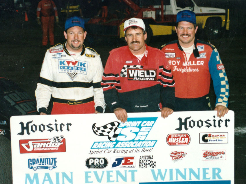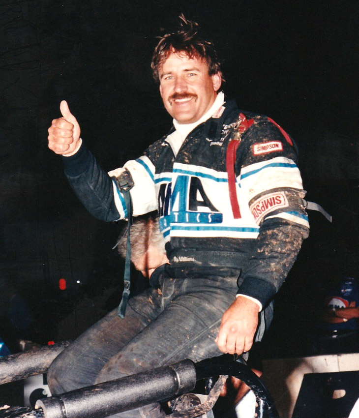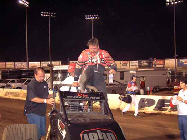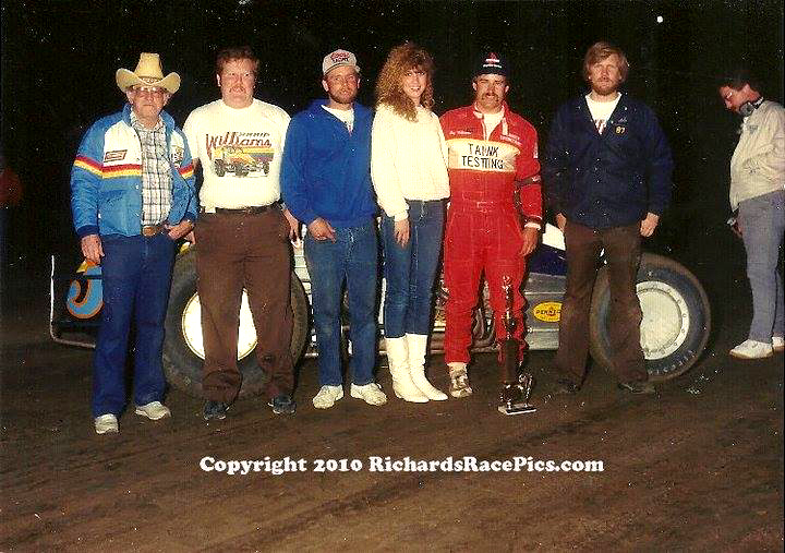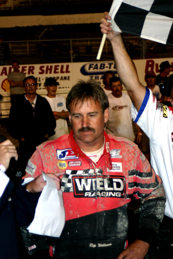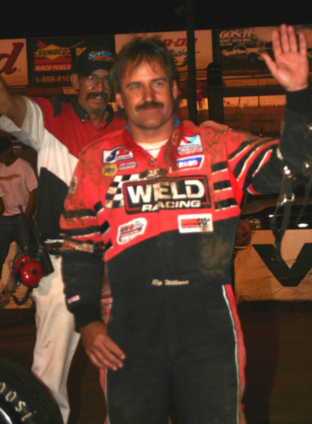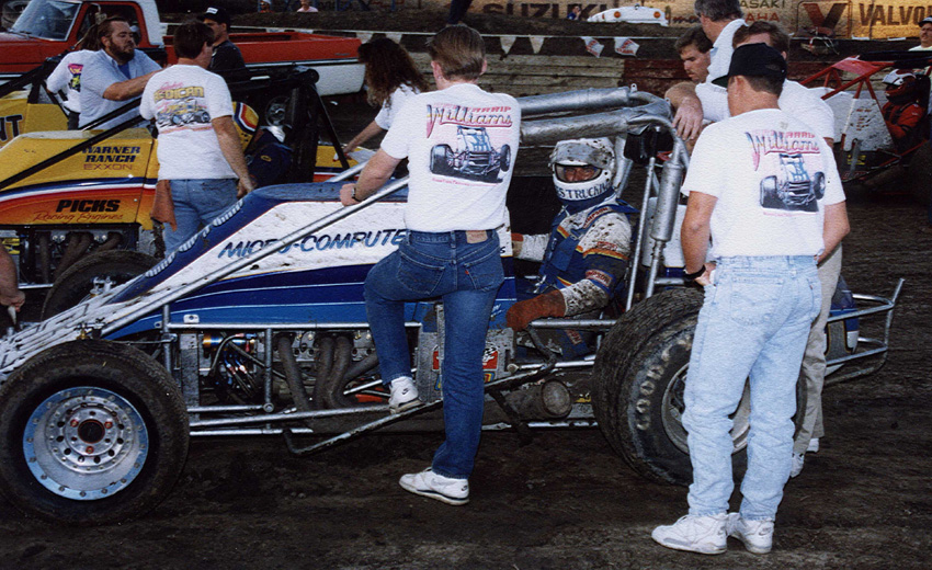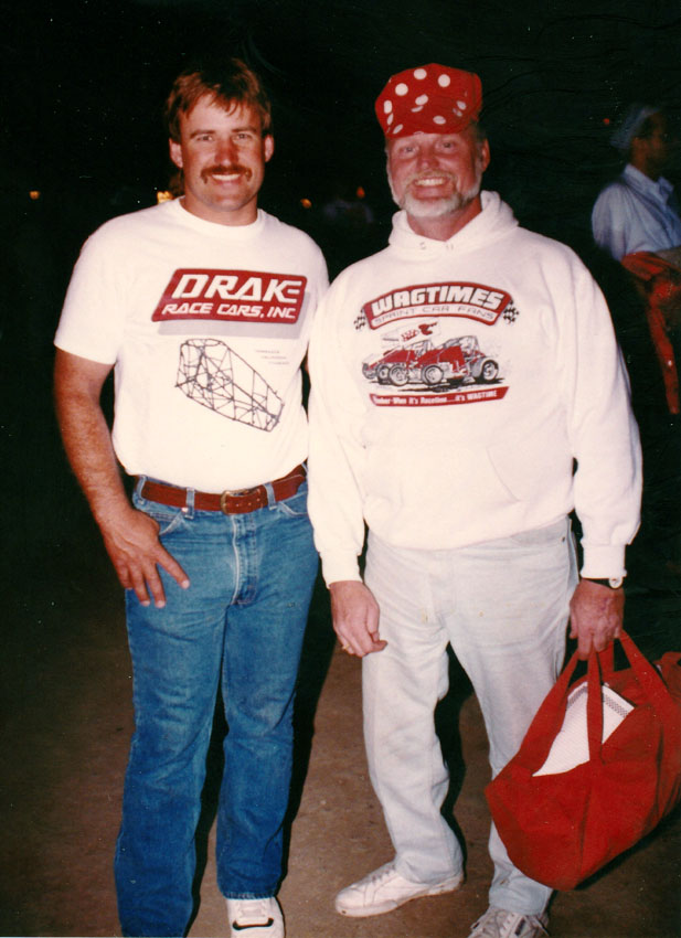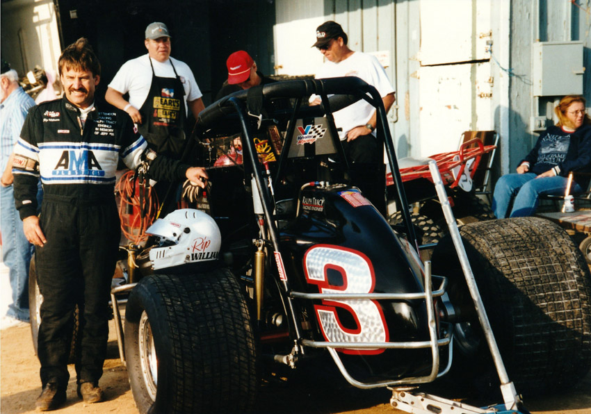 Rip is 2nd all time on the list of CRA wins only one behind Dean Thompson. With 104 it's hard to imagine how many more he could have won if the boys hadn't started racing sprints. He looks proud of the boys and their success and leads them forward. He won more races than Dean because in addition to 104 CRA wins, he also won a number of unsanctioned 410 events, but no one seems to have the data on that. He was the Wagtimes most popular driver in 2002. He is in the Sprint Car Hall of Fame and deservingly so! I respect him and his accomplishments more than most, because he never gave up and always drove his hardest. He was very consistant and determined to win. He had one appearance in the 1992 Wagsdash, but dropped out after leading when a muffler fell off the car.