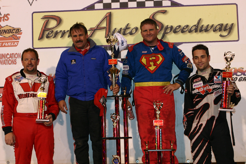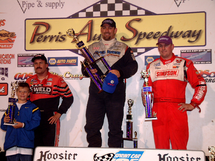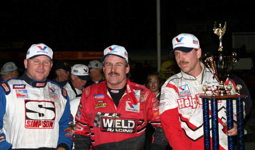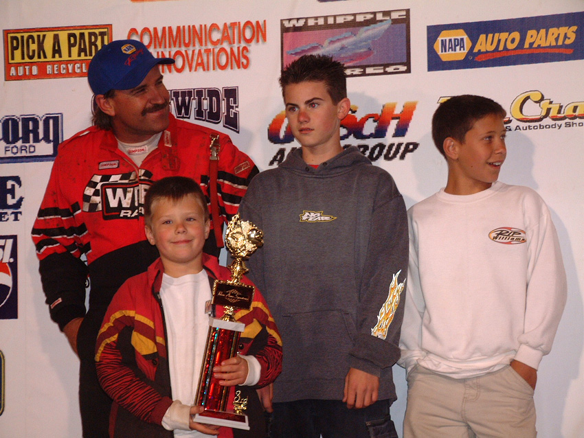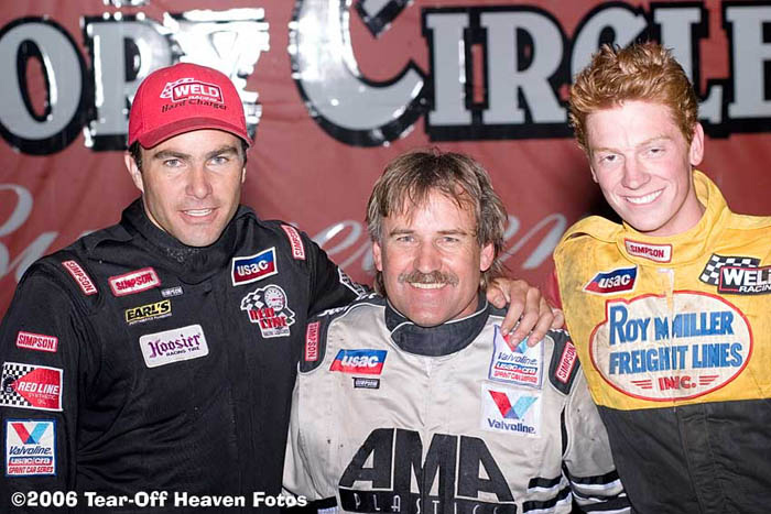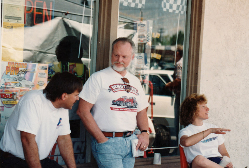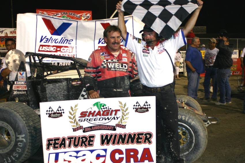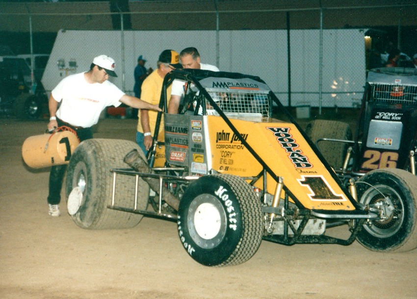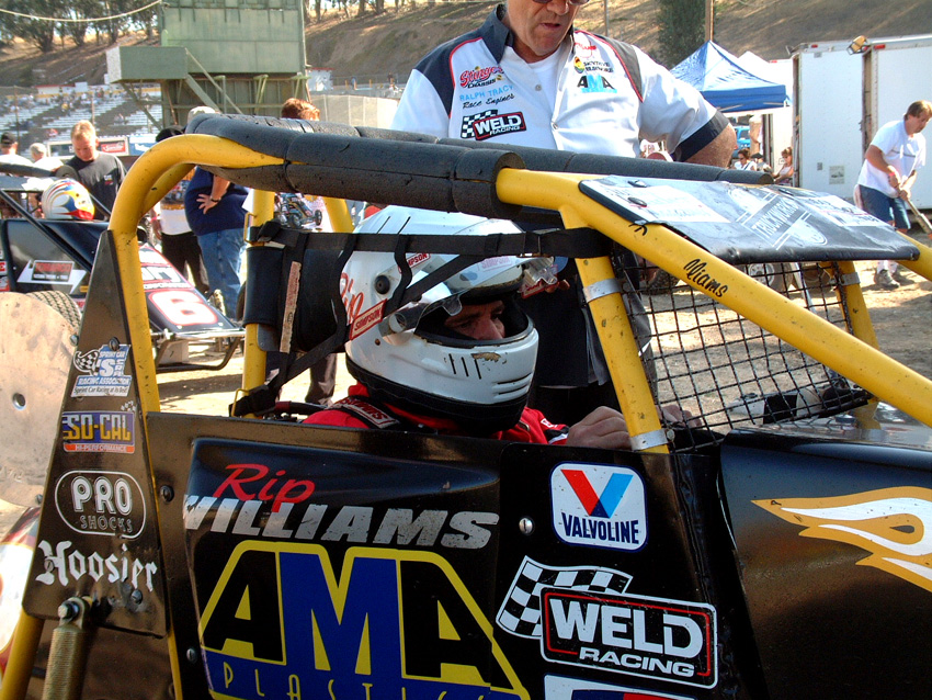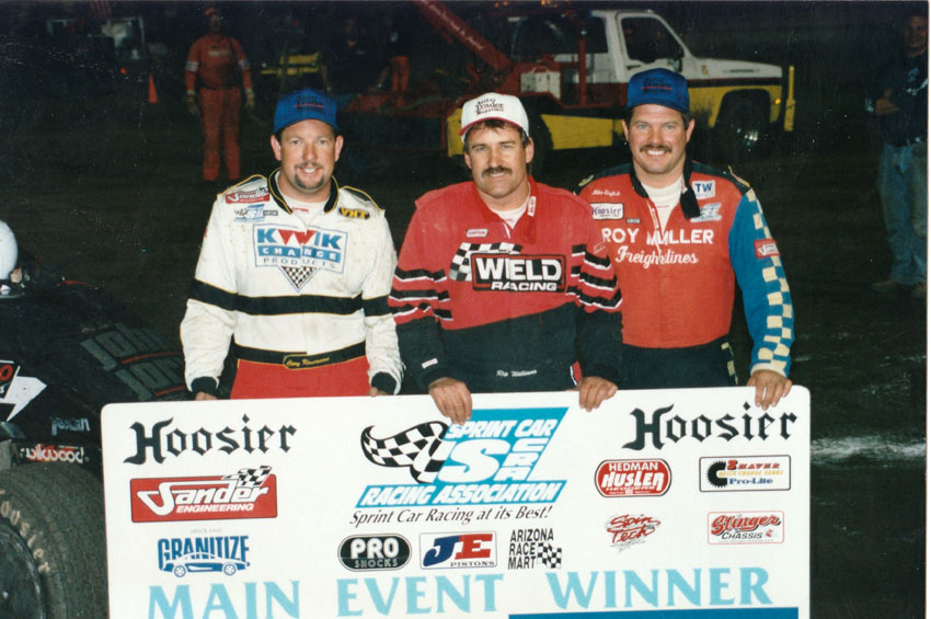 Rip is 2nd all time on the list of CRA wins only one behind Dean Thompson. With 104 it's hard to imagine how many more he could have won if the boys hadn't started racing sprints. He looks proud of the boys and their success and leads them forward. He won more races than Dean because in addition to 104 CRA wins, he also won a number of unsanctioned 410 events, but no one seems to have the data on that. He was the Wagtimes most popular driver in 2002. He is in the Sprint Car Hall of Fame and deservingly so! I respect him and his accomplishments more than most, because he never gave up and always drove his hardest. He was very consistant and determined to win. He had one appearance in the 1992 Wagsdash, but dropped out after leading when a muffler fell off the car.