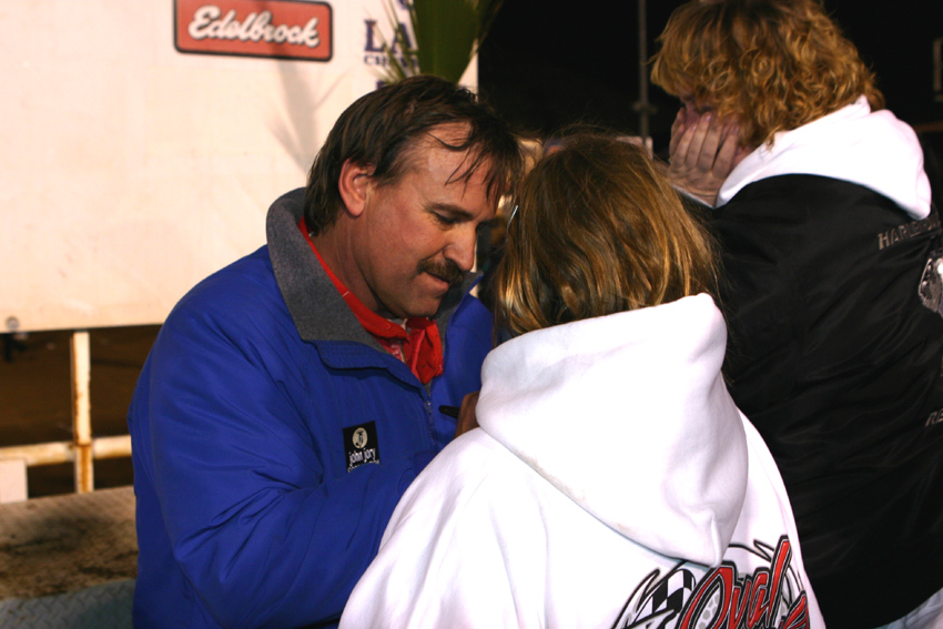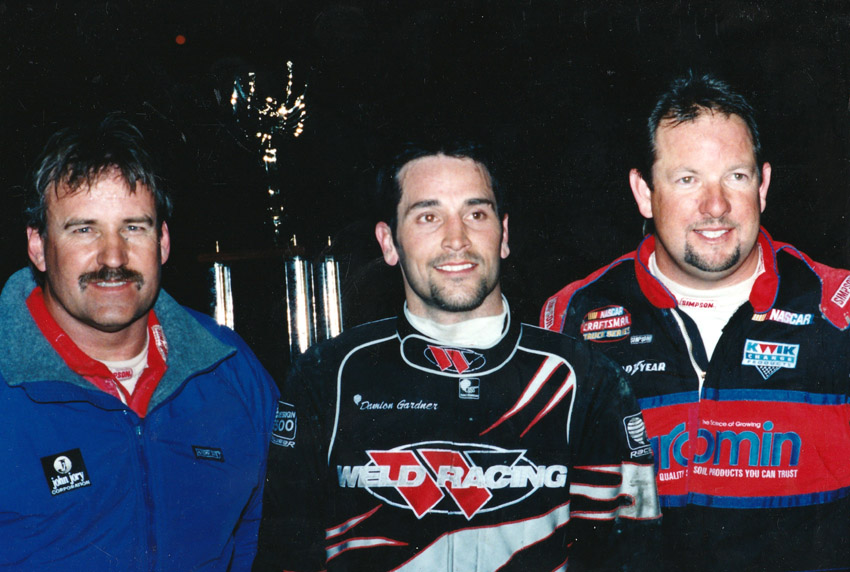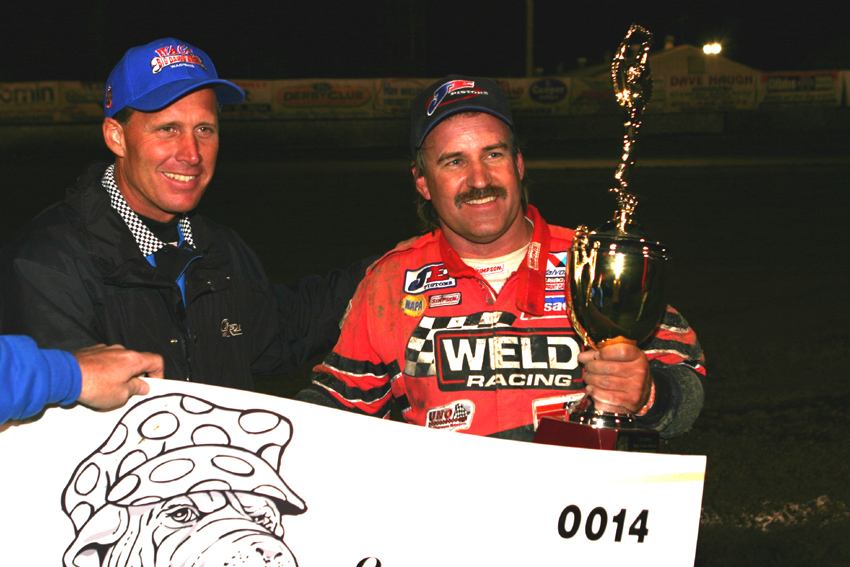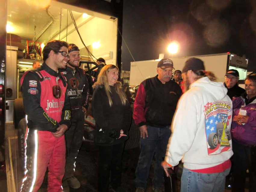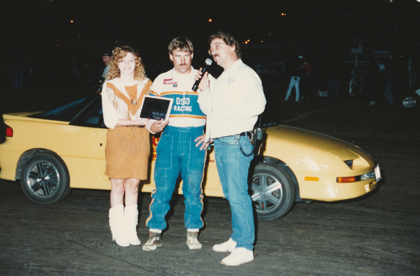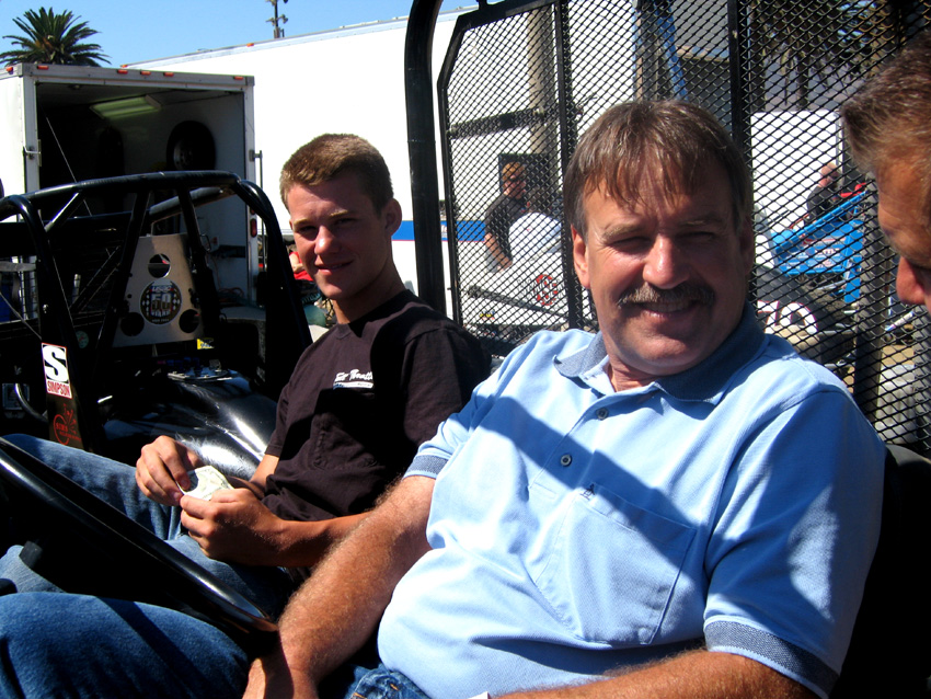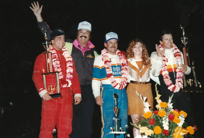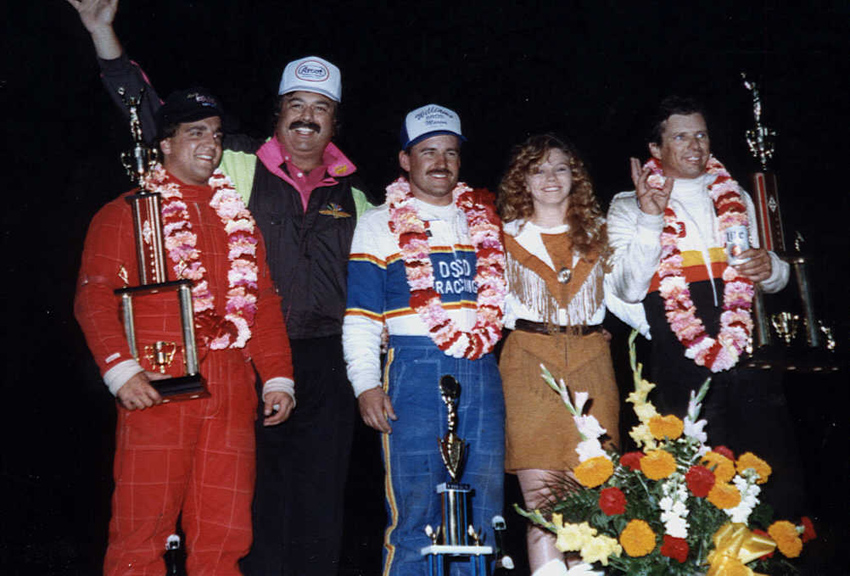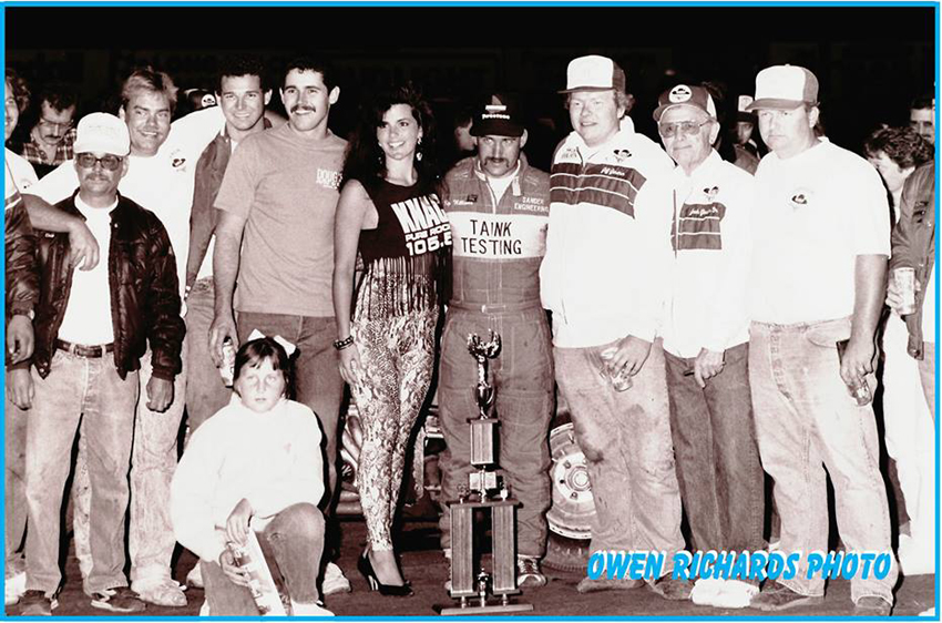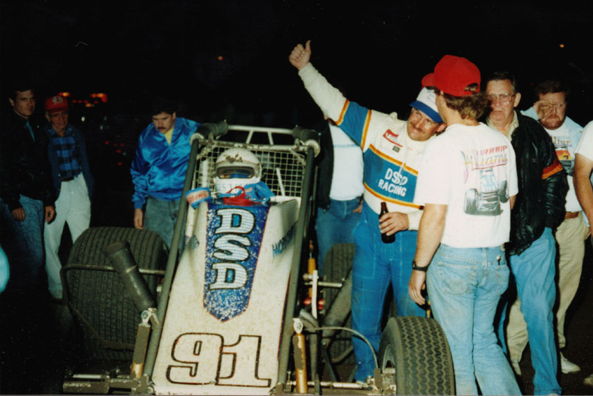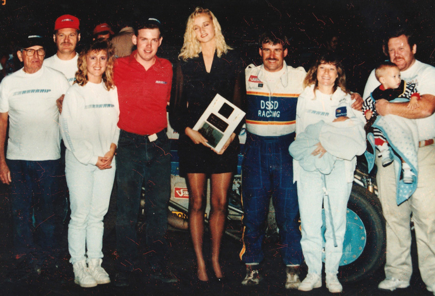 Rip after a win in the DSD car. Car owner Frank Lewis is behind him in the black jacket